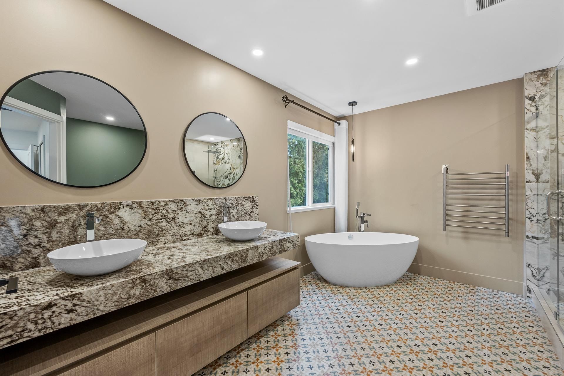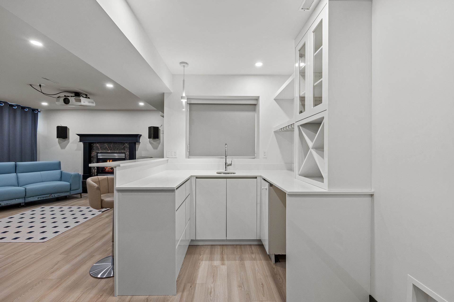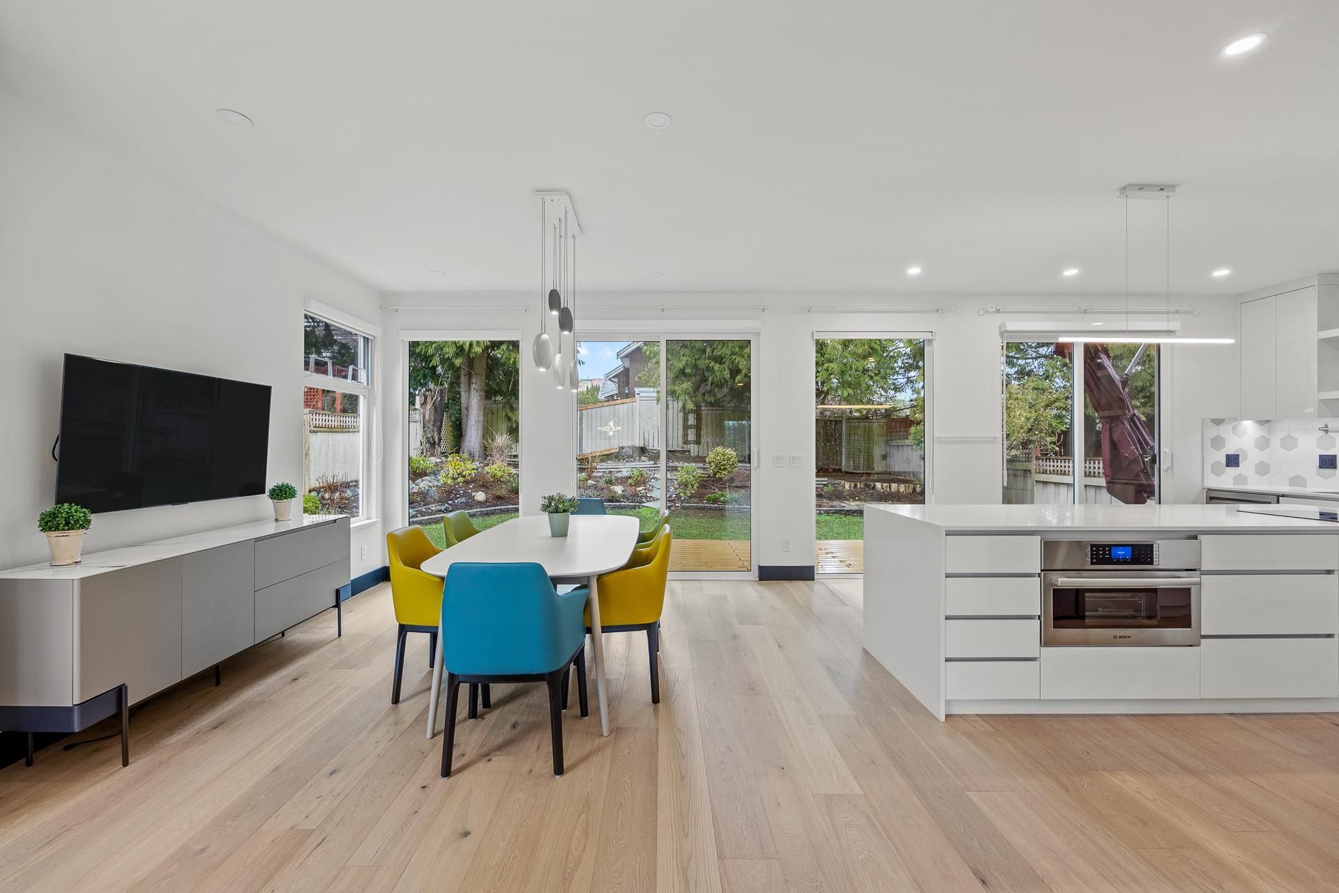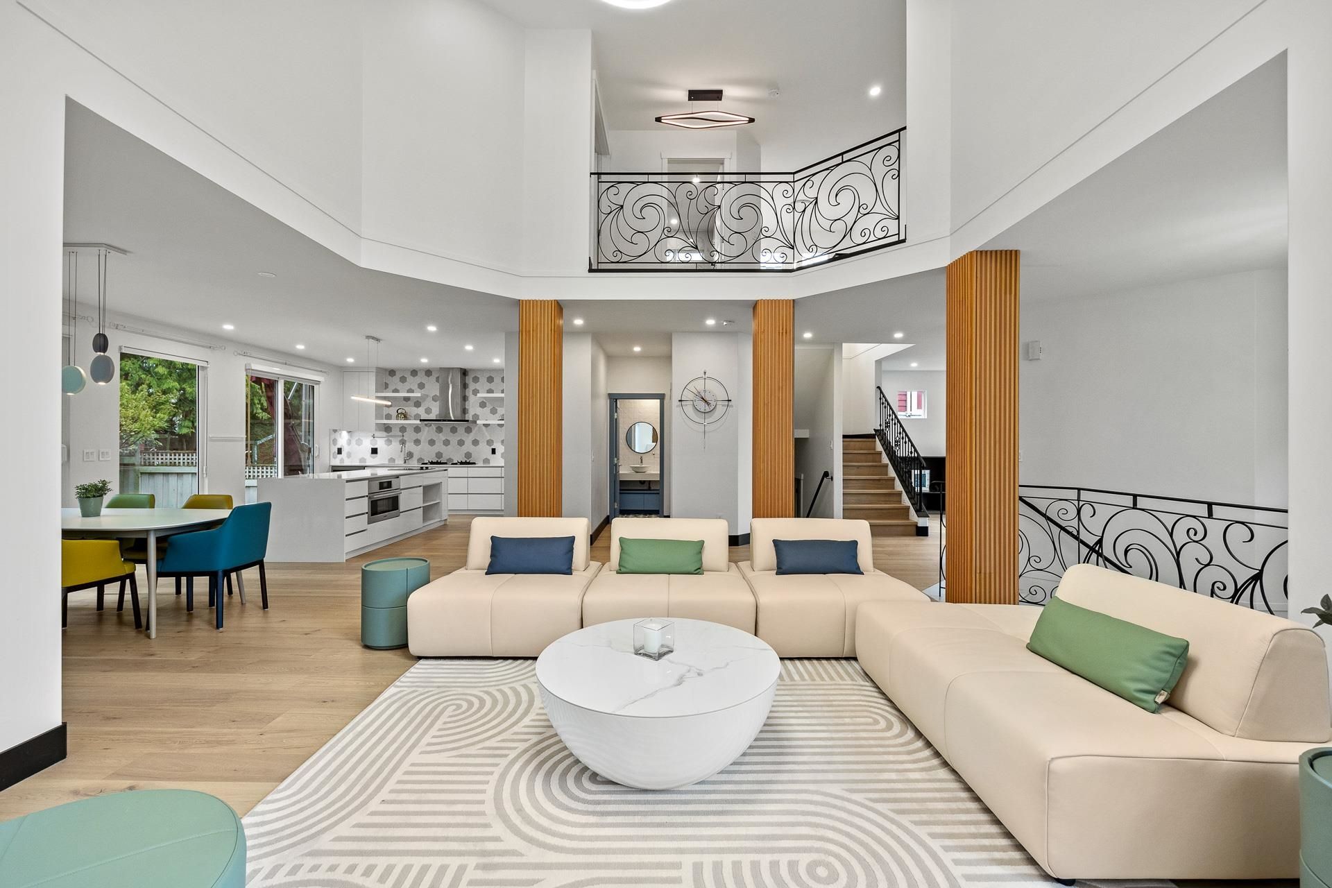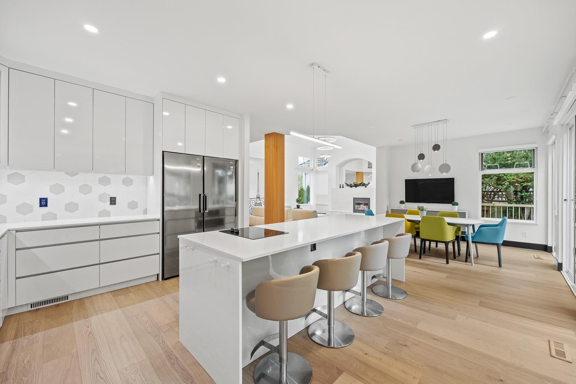 PRICED TO SELL!! Completely renovated interior with a modern, spacious design, this 4-bed, 4-bath home sits on a 6,039 SF lot in Morgan Creek. Custom kitchen features quality appliances and finishes with double sliding doors/windows opening to a private backyard. The impressive open living/dining area is perfect for entertaining, plus a convenient home office space. Enjoy vaulted ceilings, engineered hardwood, and custom details throughout. The upper level has three bedrooms, including a lovely primary suite. The lower level offers a family room with wet bar, bedroom, custom bath, laundry, storage and may easily be converted to a suite. Additional upgrades include high-efficiency furnace, Navien hot water. Walk to schools, parks, golf, and shops! You will love this neighbourhood!