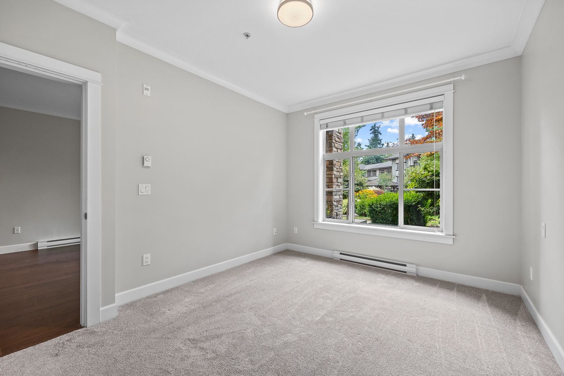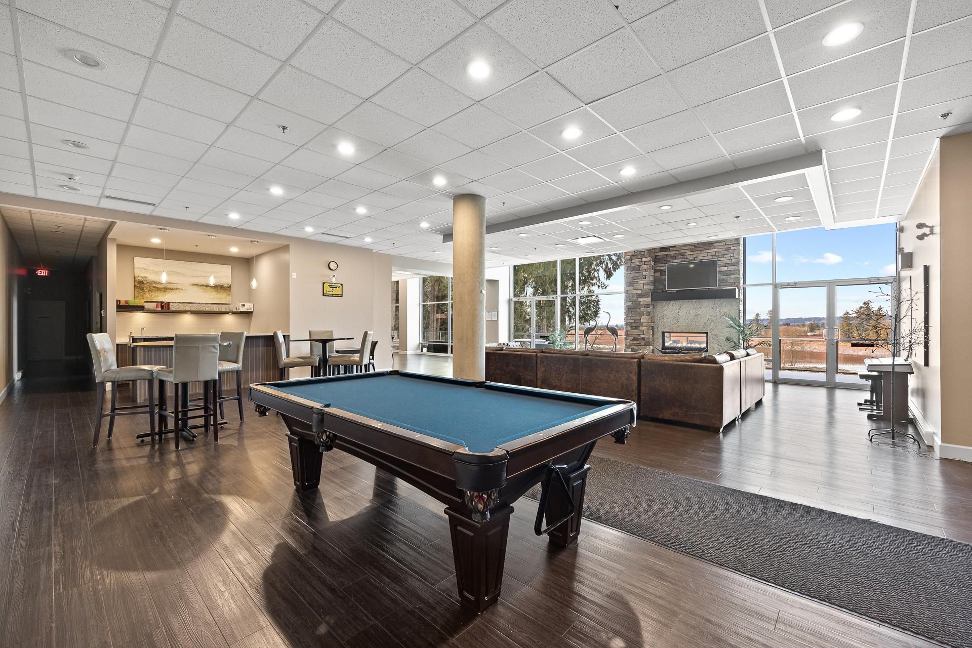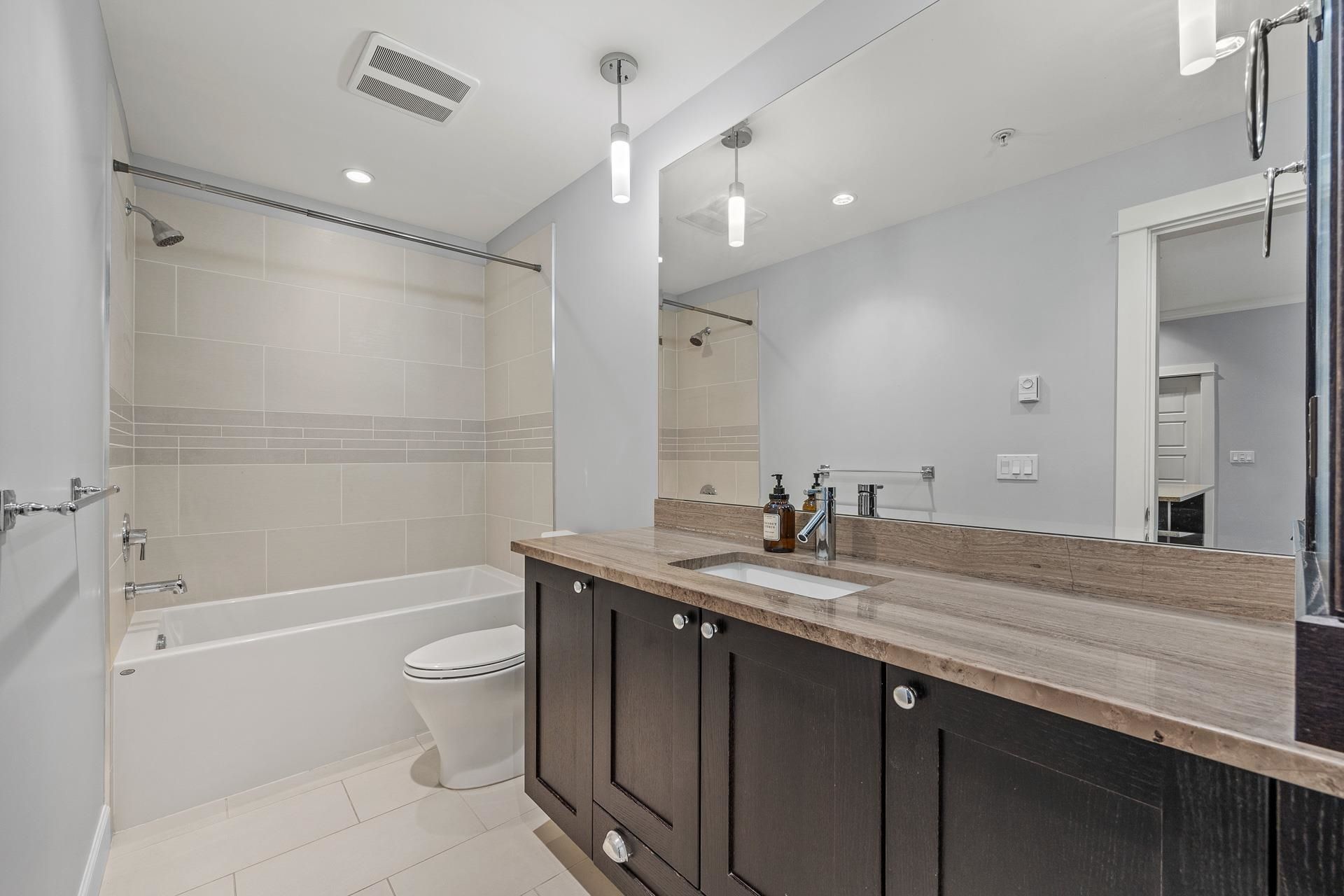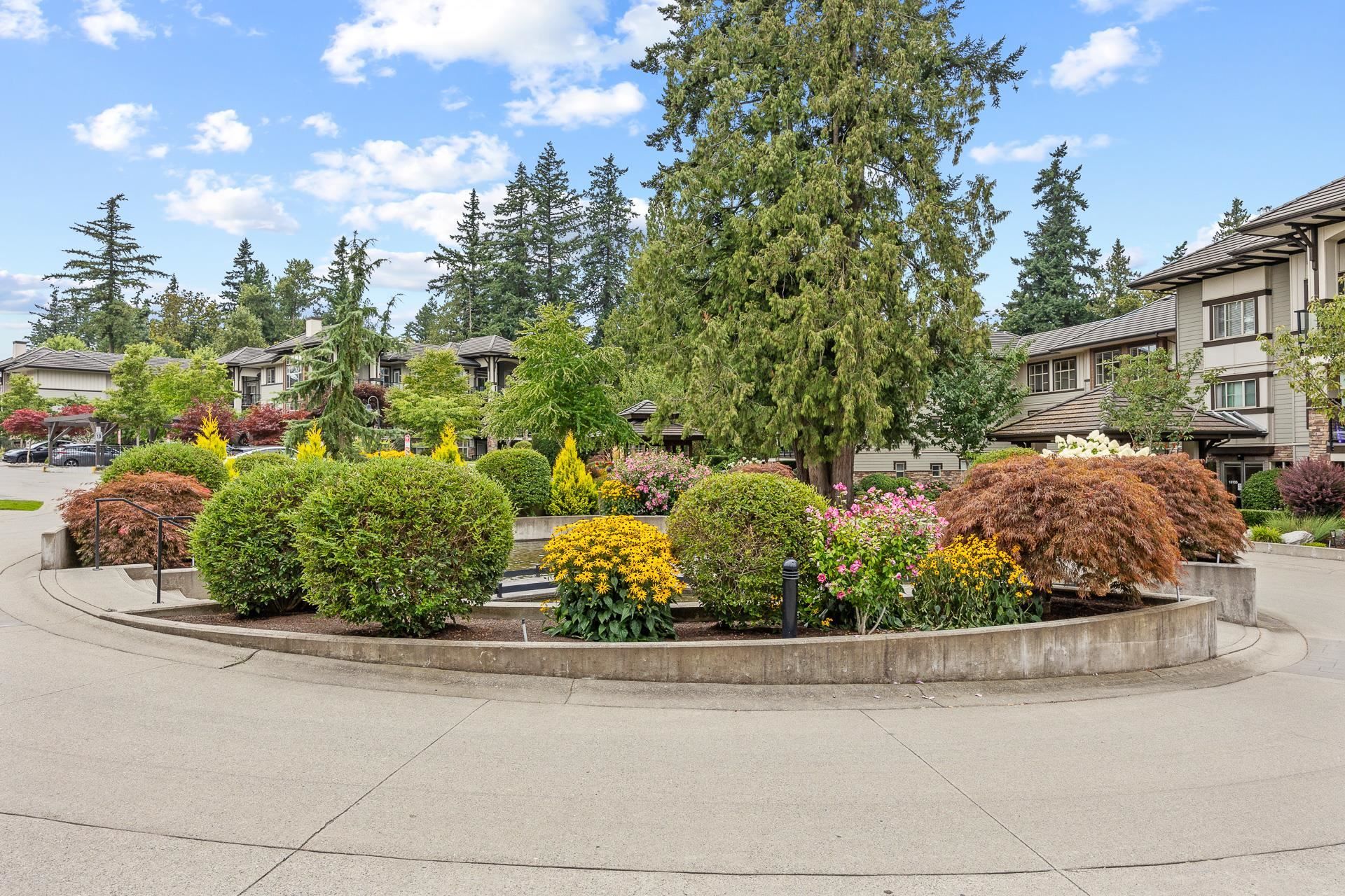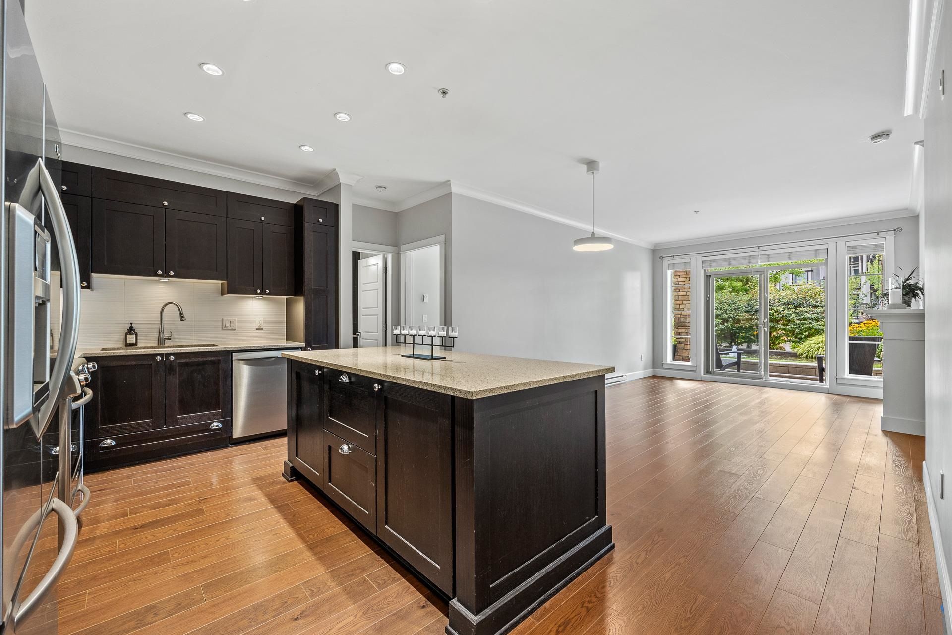Welcome to Edgewater! Beautiful west-facing 2 Bed/2 Bath ground floor condo offers a peaceful escape with your main living and patio overlooking water feature of inner courtyard. Thoughtful layout with spacious kitchen, dining, living areas and bedrooms on opposite sides for privacy. Luxurious primary suite boasts a walk-in closet and spa-like ensuite with heated floors. High-end features include quartz and marble countertops, extra built-in cabinetry, 9’ ceilings, an electric fireplace, and an oversized kitchen island. Recent upgrades include new paint throughout, new washer/dryer, dishwasher, microwave. Resort living with pool/hot tub, gym, yoga, media & stunning entertainment lounge with breathtaking views, guest suite and gated walking paths. Includes 2 parking spaces! Move in ready!