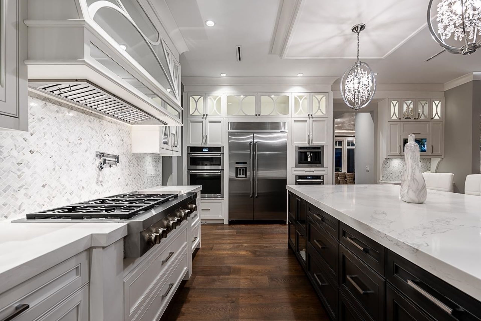 Luxurious Morgan Morgan Creek mansion situated on a beautiful and private street with every modern amenity desirable. Almost 9100 ft.² of living space on three spacious levels, this transitionally designed home is perfect for your family’s needs. Grand Foyer with cross-hall formal living in dining rooms, flows into the great room. Designer inspired kitchen with a wok kitchen and walk in pantry, and convenient wet bar for entertaining. One primary suite tucked away on the main floor, and a secondary primary suite above with 3 additional guest bedrooms. Lower level is finished with a guest wing, gym with sauna & steam, theatre, bar, and games room. Bonus detached studio, 4 car garage, in-ground pool, with a hot tub and so much more. Situated on a full half acre with mountain and farm views.