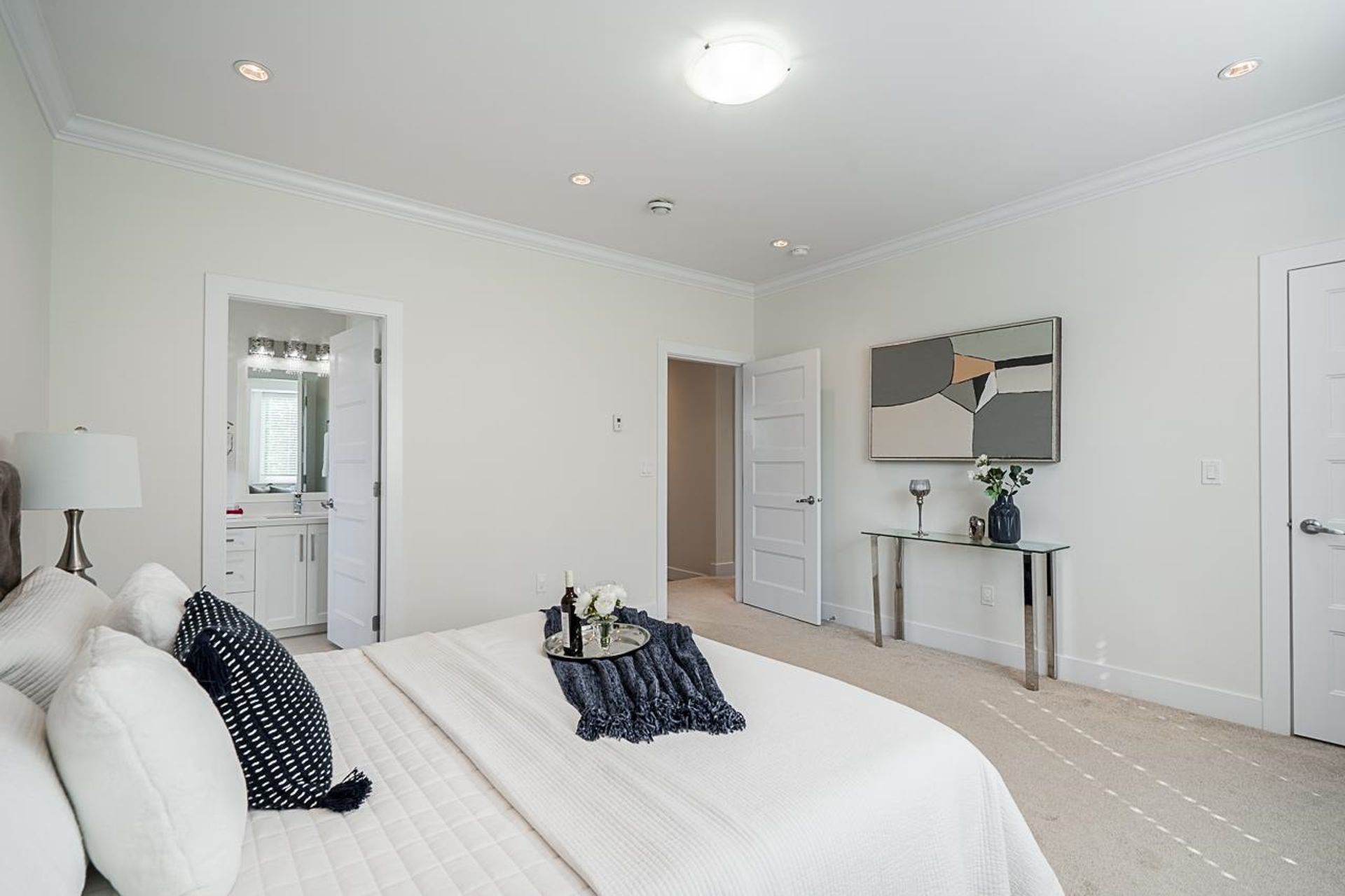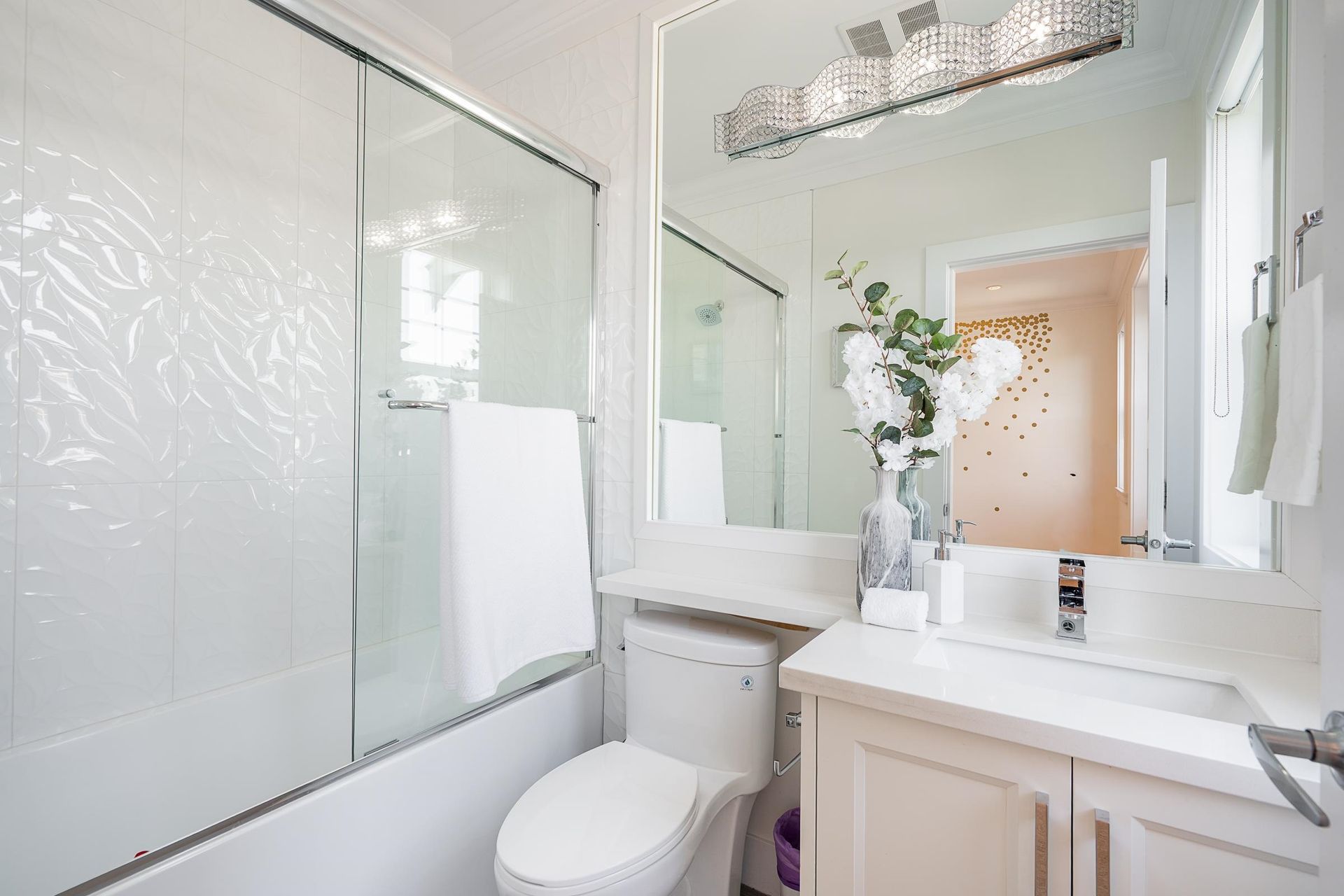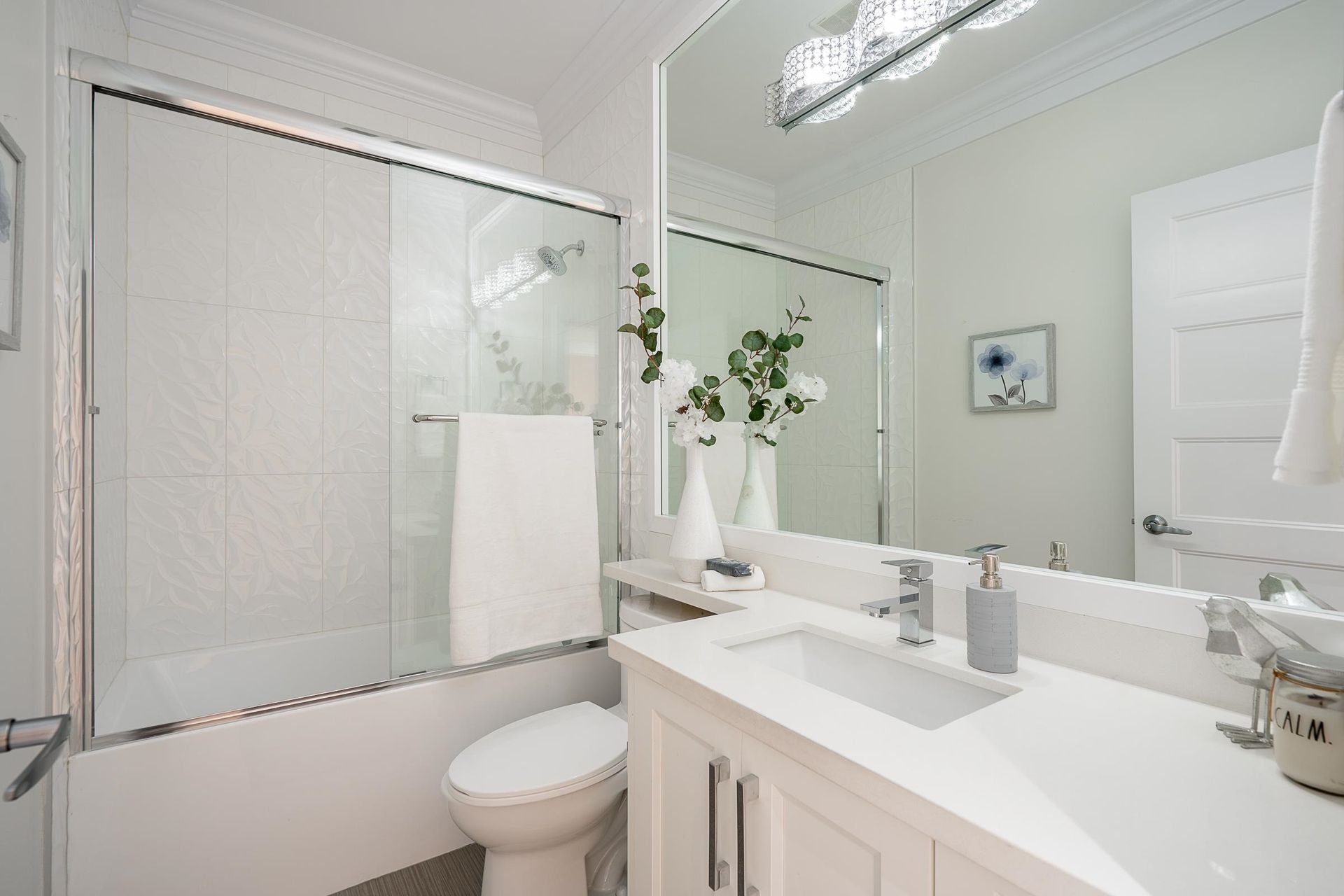 Welcome to Sullivan Station! This bright custom 2-storey home offers an open floor plan with tall vaulted ceilings & windows to allow in natural light. This home has 4 spacious bedrooms, 5 bathrooms, & a legal bachelor suite on a nearly 3,500 sq. ft. lot in a family-oriented neighbourhood. Upstairs includes 2 primar bedrooms with walk-in closets. The main floor features a gourmet kitchen with oversized island, formal living/dining, powder room, & a garage converted into a massive family room. High-end finishing throughout with modern touches and plenty of natural light. Fenced backyard surrounded by trees! Centrally located near shopping, Hwy 10 & 99, schools, parks, & transit within walking distance. The legal suite is currently rented for $1,000/month, offering excellent mortgage help.