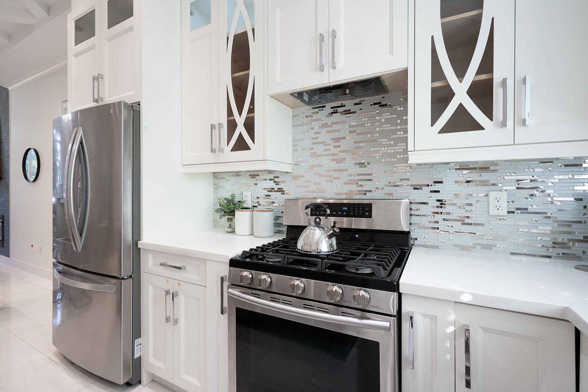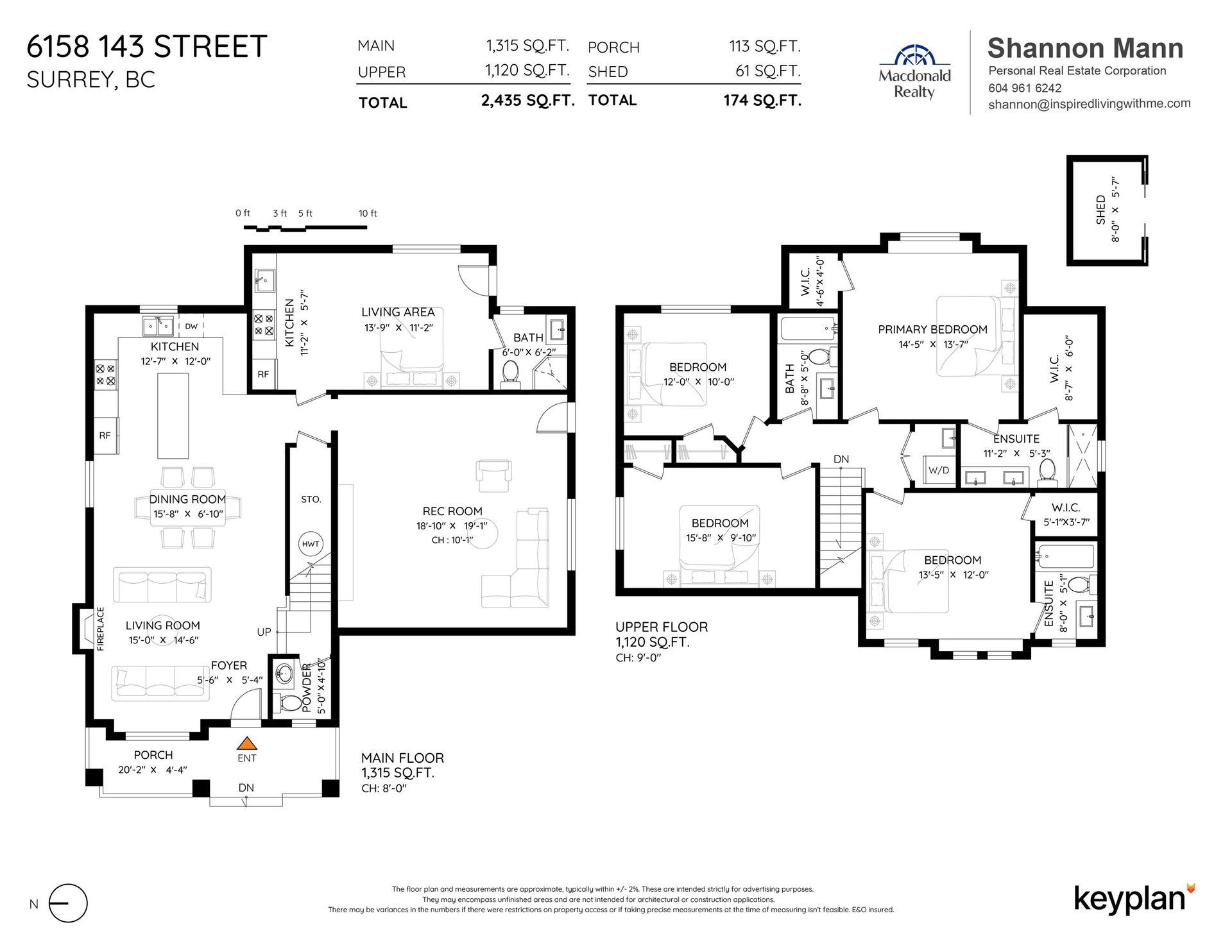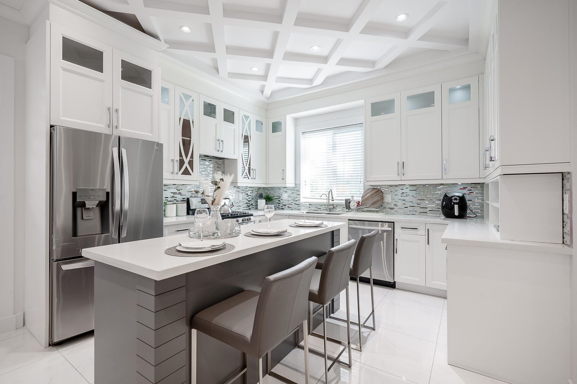 Welcome to Sullivan Station! This bright custom 2-storey home offers an open floor plan with tall vaulted ceilings & windows to allow in natural light. This home has 4 spacious bedrooms, 5 bathrooms, & a legal bachelor suite on a nearly 3,500 sq. ft. lot in a family-oriented neighbourhood. Upstairs includes 2 primar bedrooms with walk-in closets. The main floor features a gourmet kitchen with oversized island, formal living/dining, powder room, & a garage converted into a massive family room. High-end finishing throughout with modern touches and plenty of natural light. Fenced backyard surrounded by trees! Centrally located near shopping, Hwy 10 & 99, schools, parks, & transit within walking distance. The legal suite is currently rented for $1,000/month, offering excellent mortgage help.