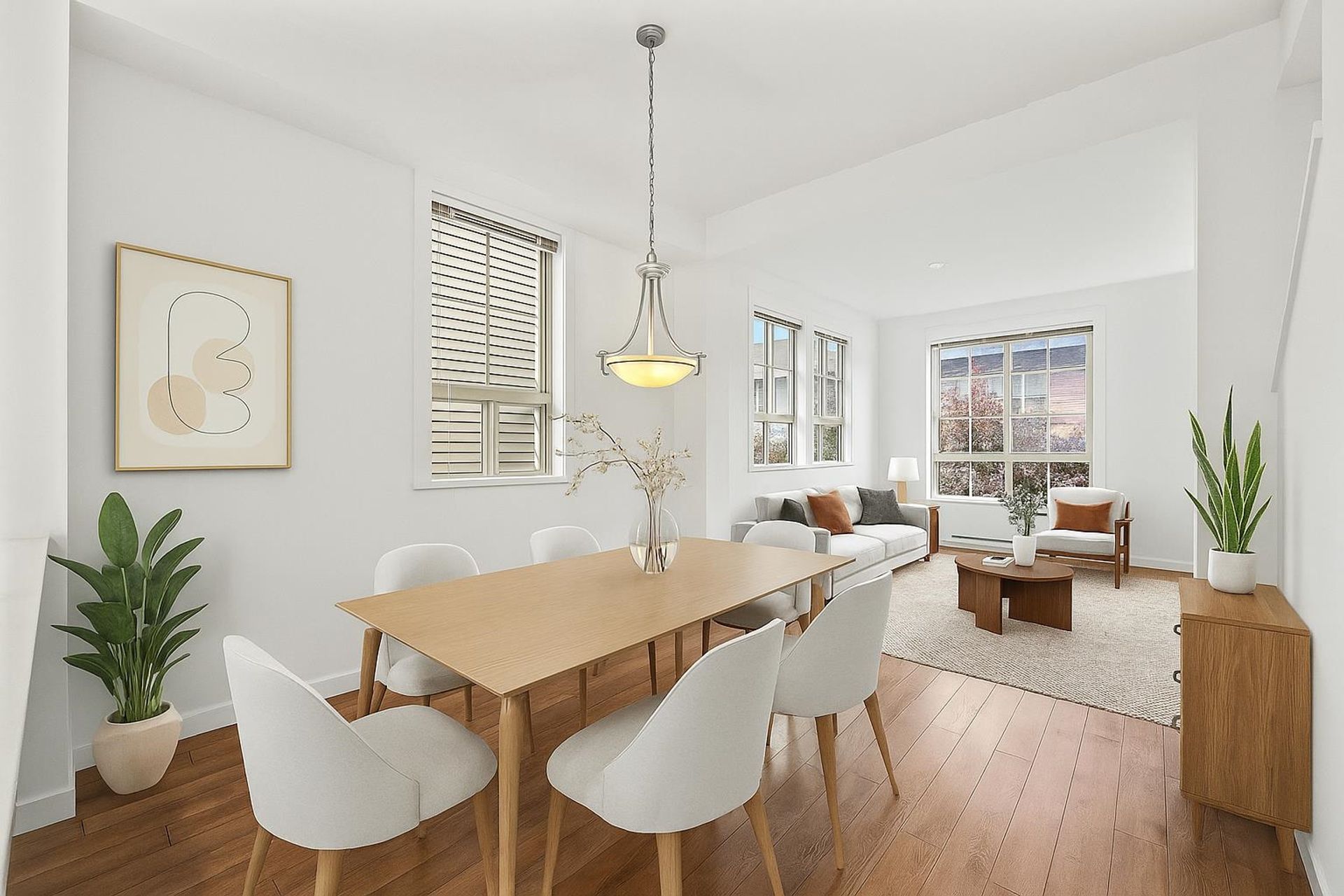 THE MORGAN - A classic Georgian-style townhome developed by the prestigious Mosaic. This bright and spacious 3-bedroom, 2.5-bath 1,314 sqft corner townhome feels like a detached home. Featuring high ceilings and an open-concept layout with large windows, it’s filled with natural light and offers plenty of space for family living. The modern kitchen flows seamlessly into the dining and living areas, perfect for entertaining. Upstairs, you’ll find 3 bedrooms including a relaxing primary suite with ensuite bath. Enjoy your patio off the kitchen for outdoor relaxation. Located in a highly sought-after area surrounded by parks, great schools, and the everyday amenities of Morgan Crossing. this home offers comfort, style, and convenience in one exceptional package.
