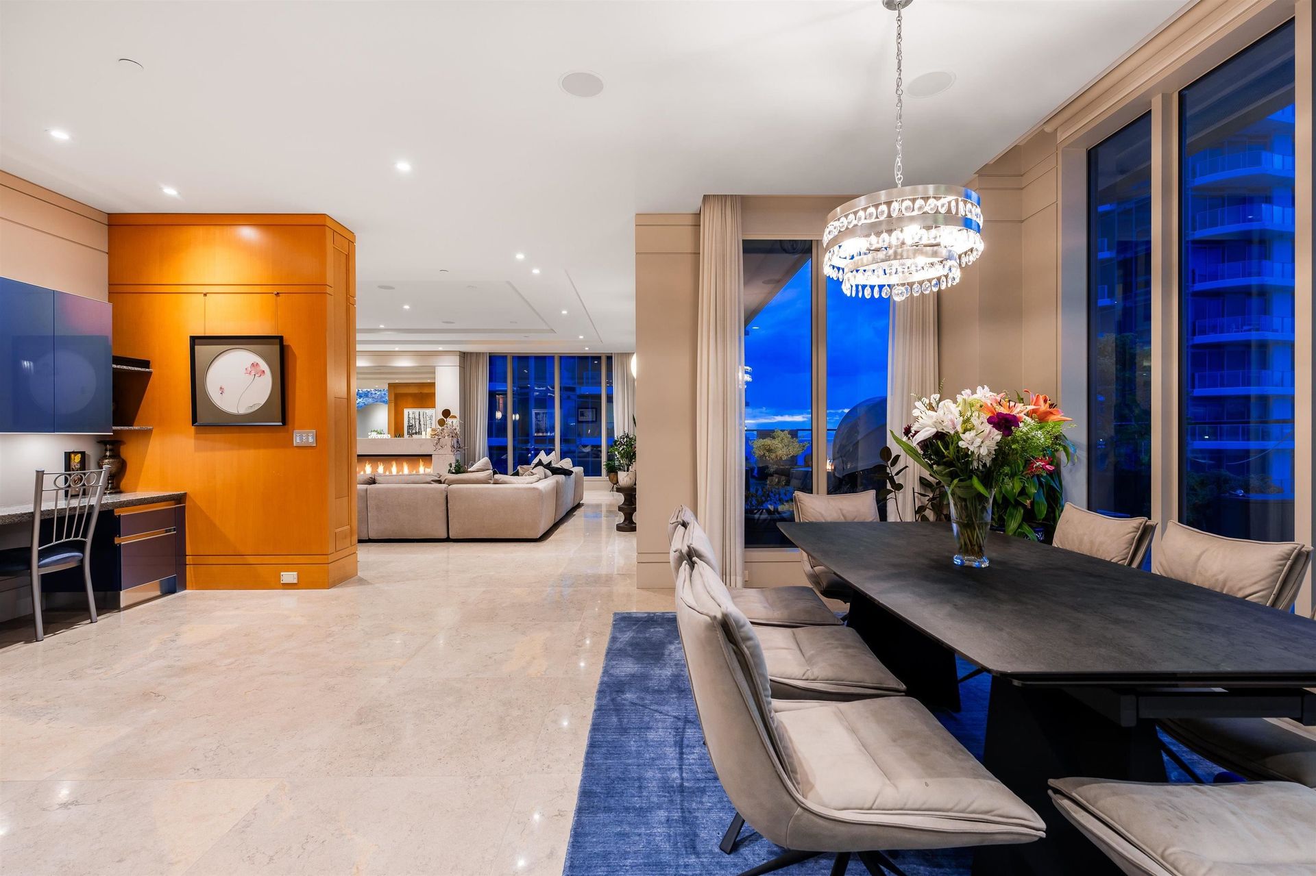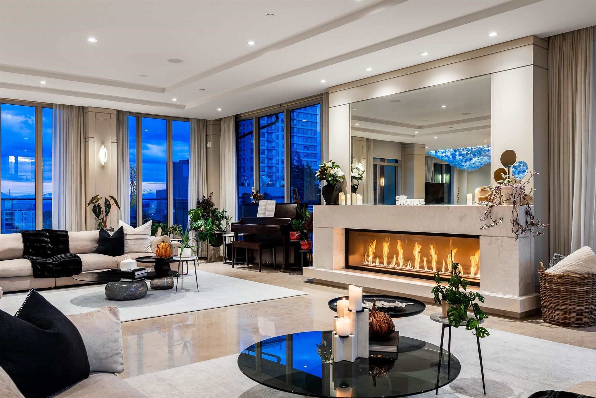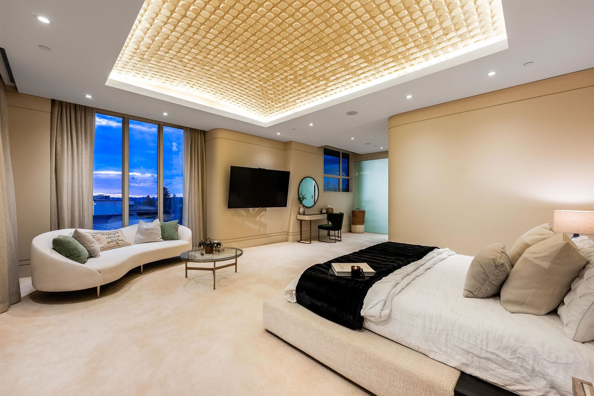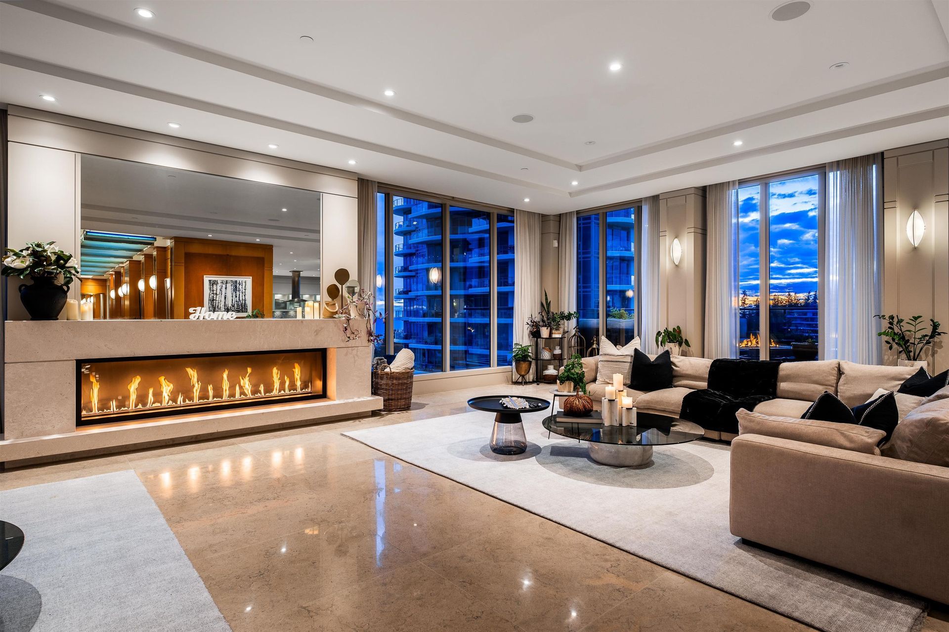 LUXURIOUS PENTHOUSE LIVING - exquisite 5,191sq ft single level residence boasts opulence and grandeur. Completely customized by Richard Salter Interiors with 11' ceilings, marble floors, African maple millwork, one-of-a-kind light fixtures, and Control-4 automation. Ritz-inspired foyer leads to the expansive Great Room with captivating ocean and mountain views. Gourmet Kitchen with Miele & Subzero appliances with adjacent Dining Room and patio access. Private Primary Bedroom wing complete with 2 dressing areas and a lavish ensuite. 2 additional guest bedroom suites, and an office tucked away for functionality. Over 1,400sqft of outdoor living space with Eastern & Western exposure, 4 parking stalls and much more. Undoubtable the finest penthouse offering in the Fraser Valley; MUST SEE!