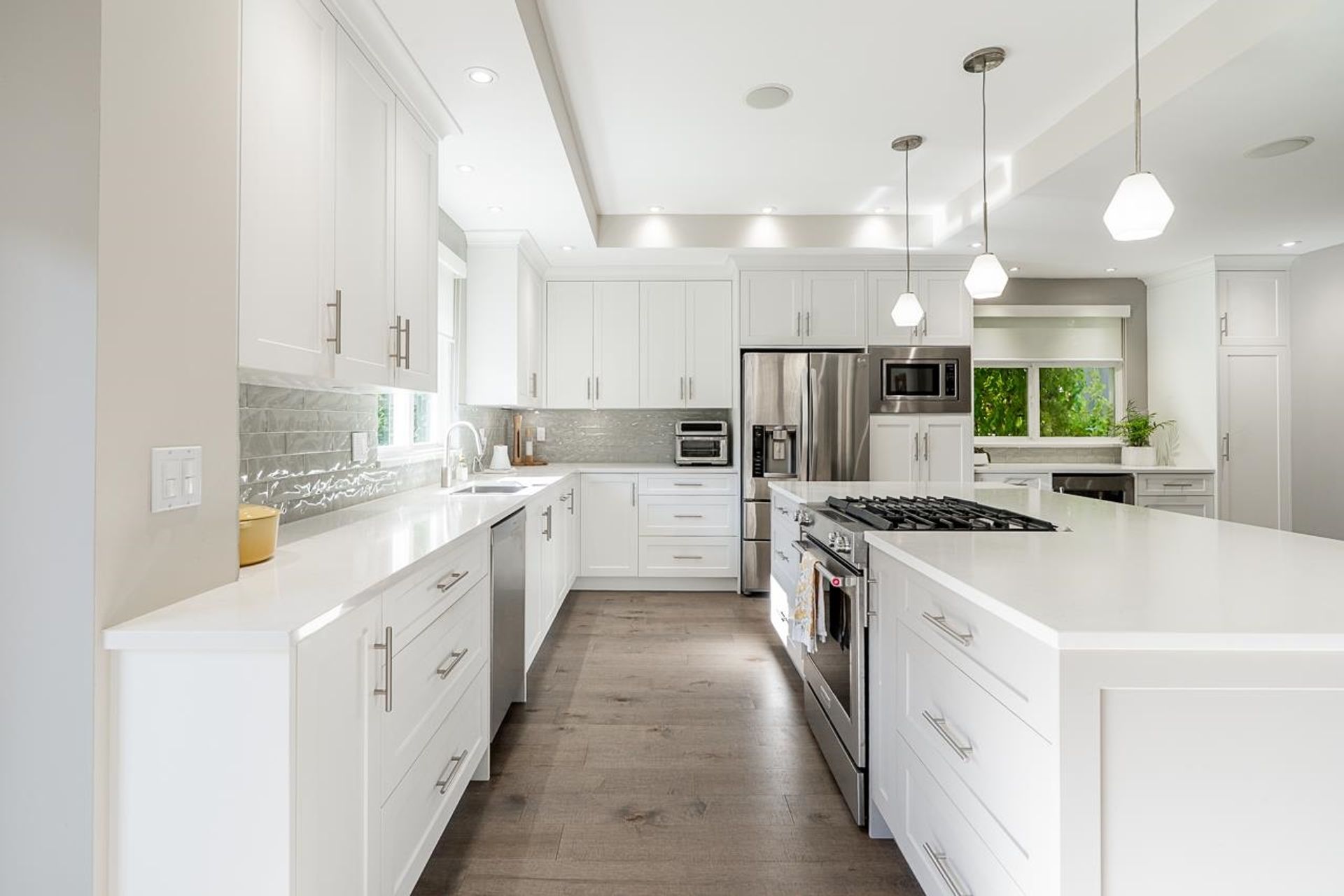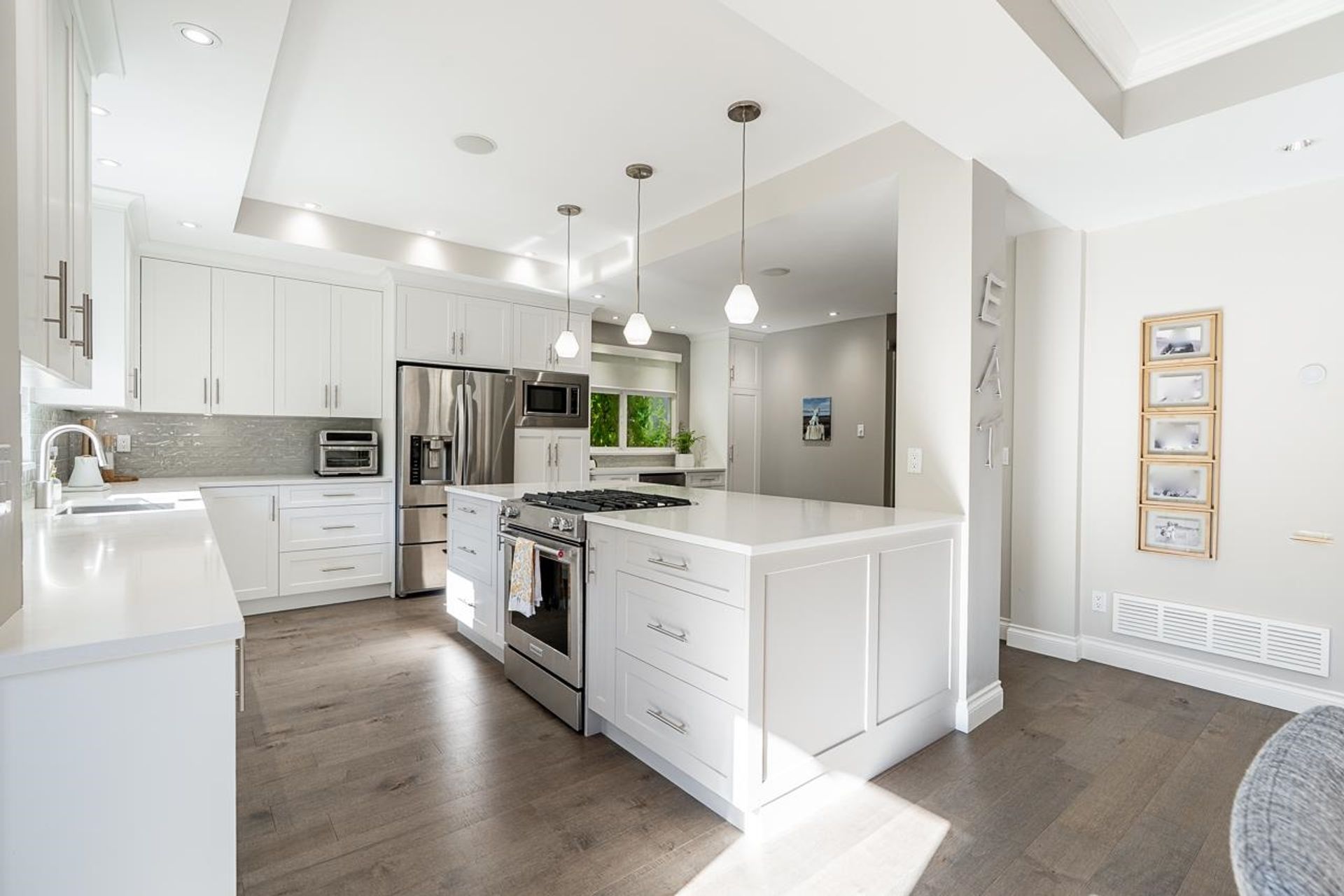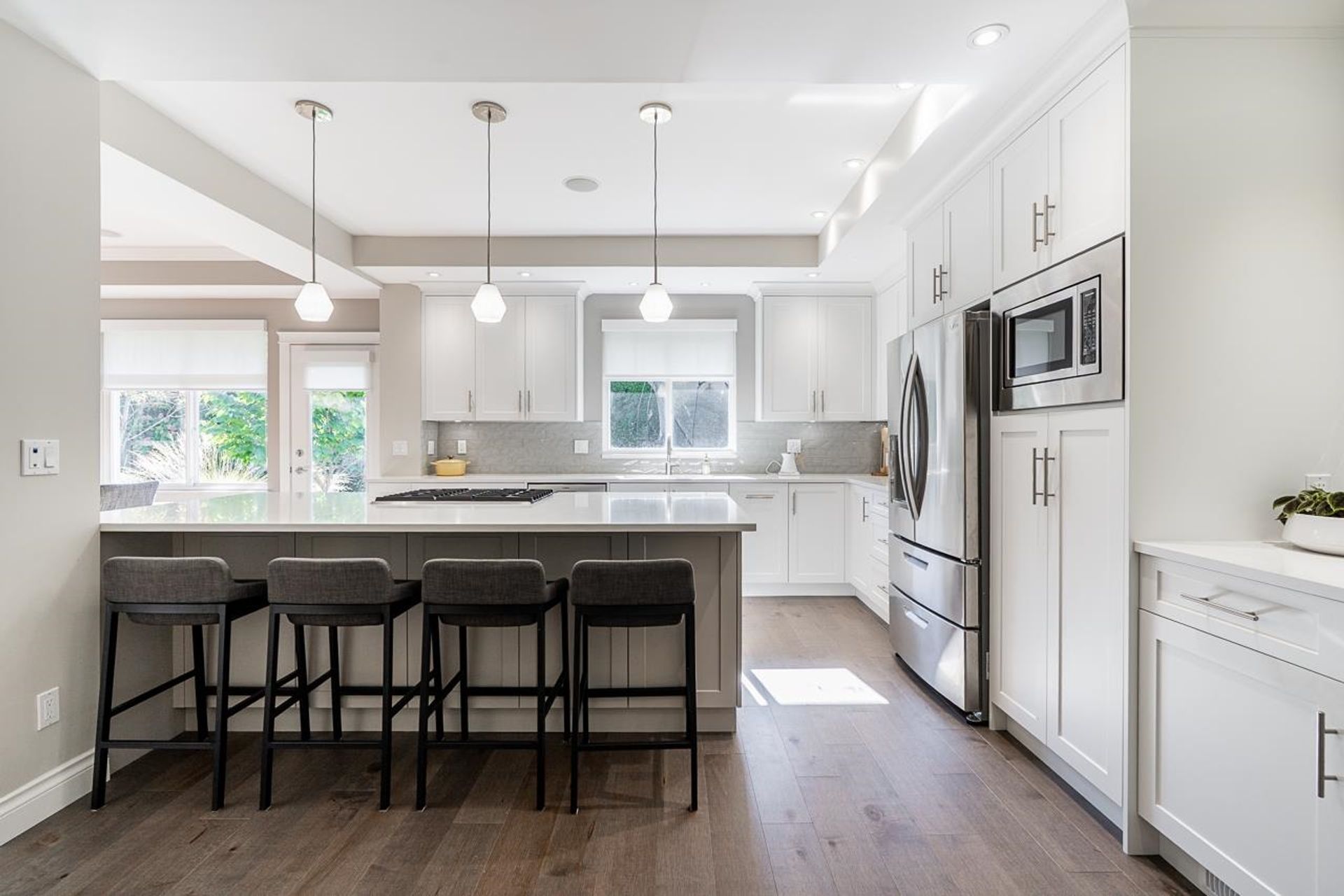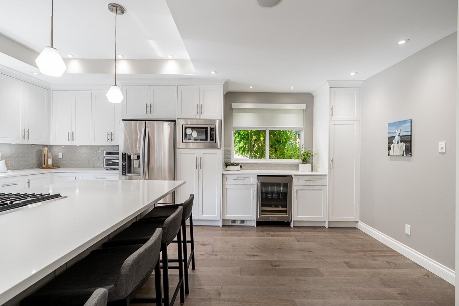 Located in the heart of Morgan Creek, this beautifully updated 3,613 sqft home sits on a quiet cul-de-sac and offers an exceptional lifestyle. The professionally renovated main floor is complemented by updates throughout, including new flooring, new blinds, air conditioning, and ample storage. Upstairs features 3 bedrooms and 2 baths, highlighted by a spacious and elegant primary suite. The lower level includes recreation and fitness areas, a guest bedroom & luxurious full bath with an infrared sauna. Enjoy a south-facing backyard with garden water features, a covered patio with outdoor fireplace. Close to the golf course, pickleball/tennis, parks, local restaurants and coveted schools: Morgan Elementary, Grandview Secondary and Southridge. A perfect blend of comfort, style, and location!