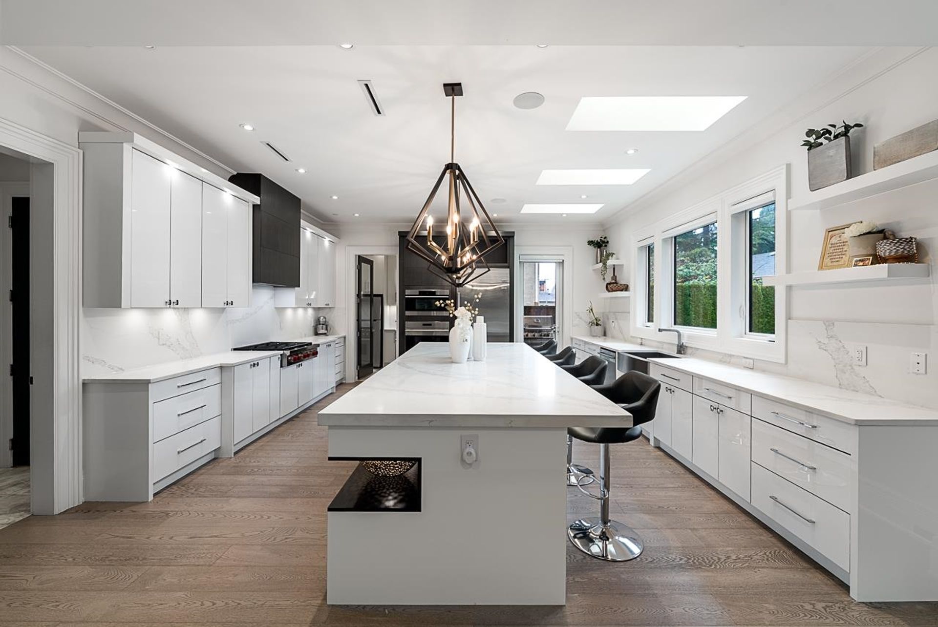 Modern luxury in West White Rock! This beautiful 5000sqft Smart-Home offers grandeur and functionality. Open concept main floor with soaring ceilings, rich millwork and designer influences. Gourmet Kitchen complete with Wolf & Subzero appliances, plus bonus Wok Kitchen. Temperature controlled wine cellar in the dining room for entertaining. 4 spacious bedrooms above including the luxurious primary suite with a walk-in closet & spa bath. Lower level boasts a media room, bar, guest bedroom plus a LEGAL 1-bedroom suite. Walk to Bayridge Elementary, Semiahmoo Secondary School, close to Semiahmoo Mall and White Rock Beach.