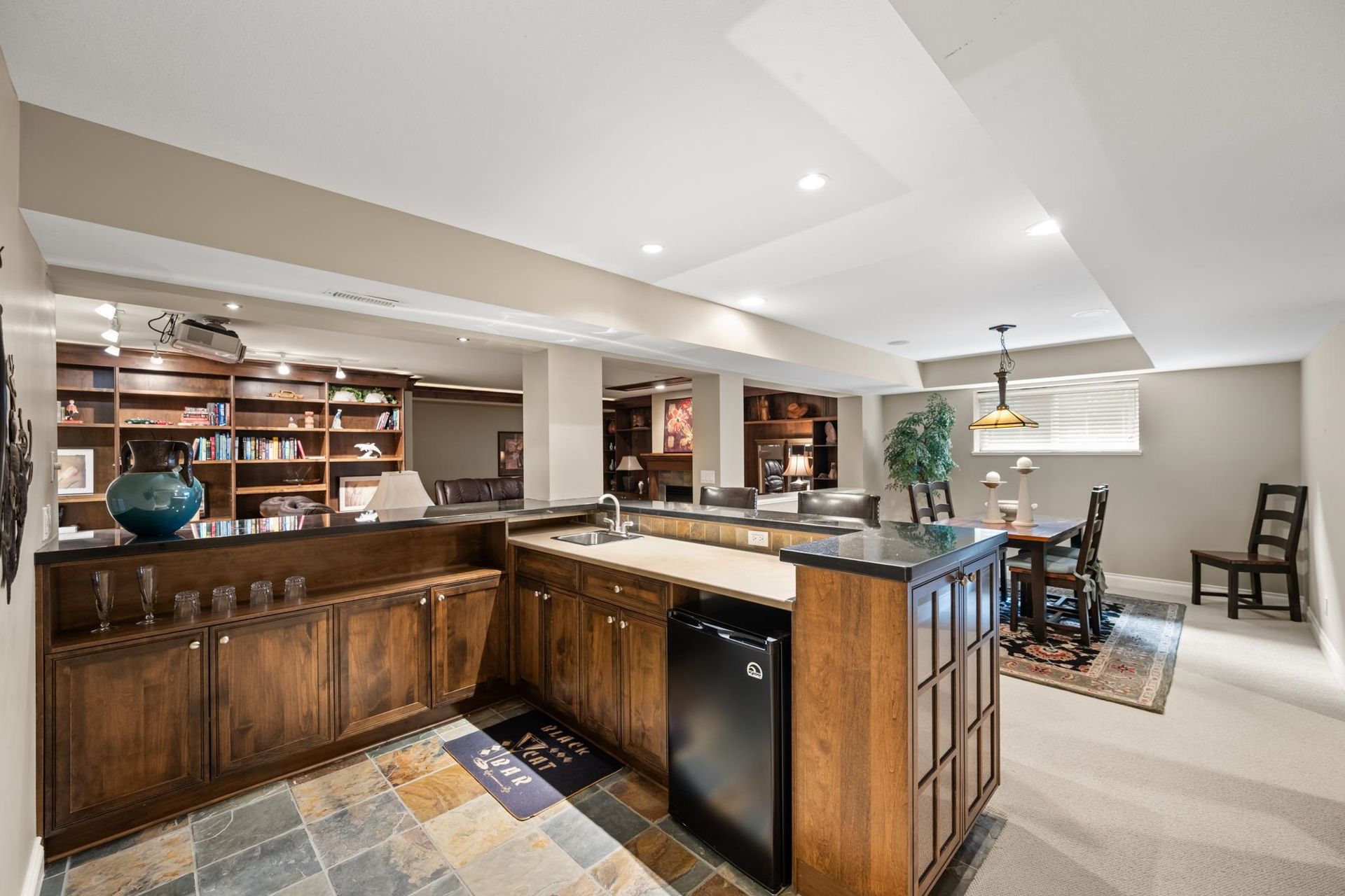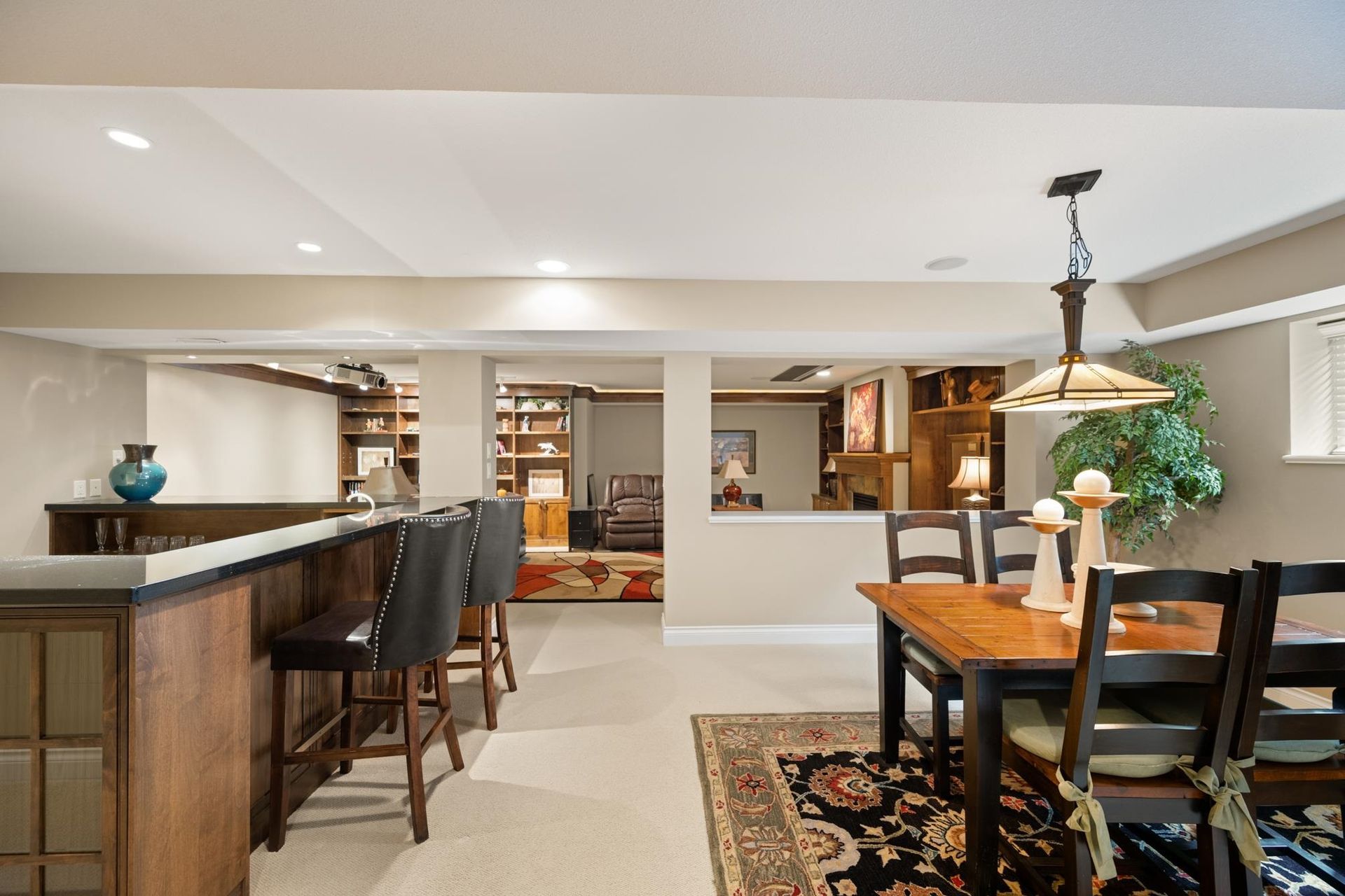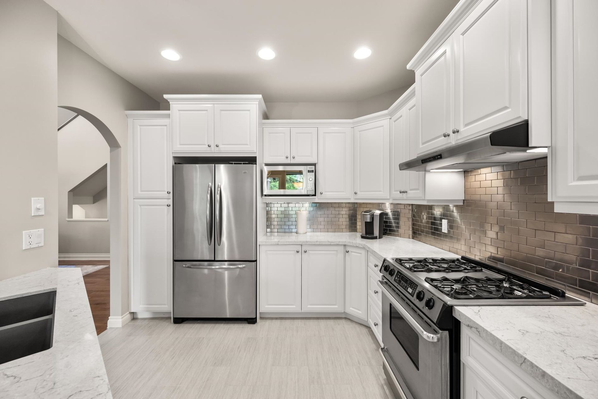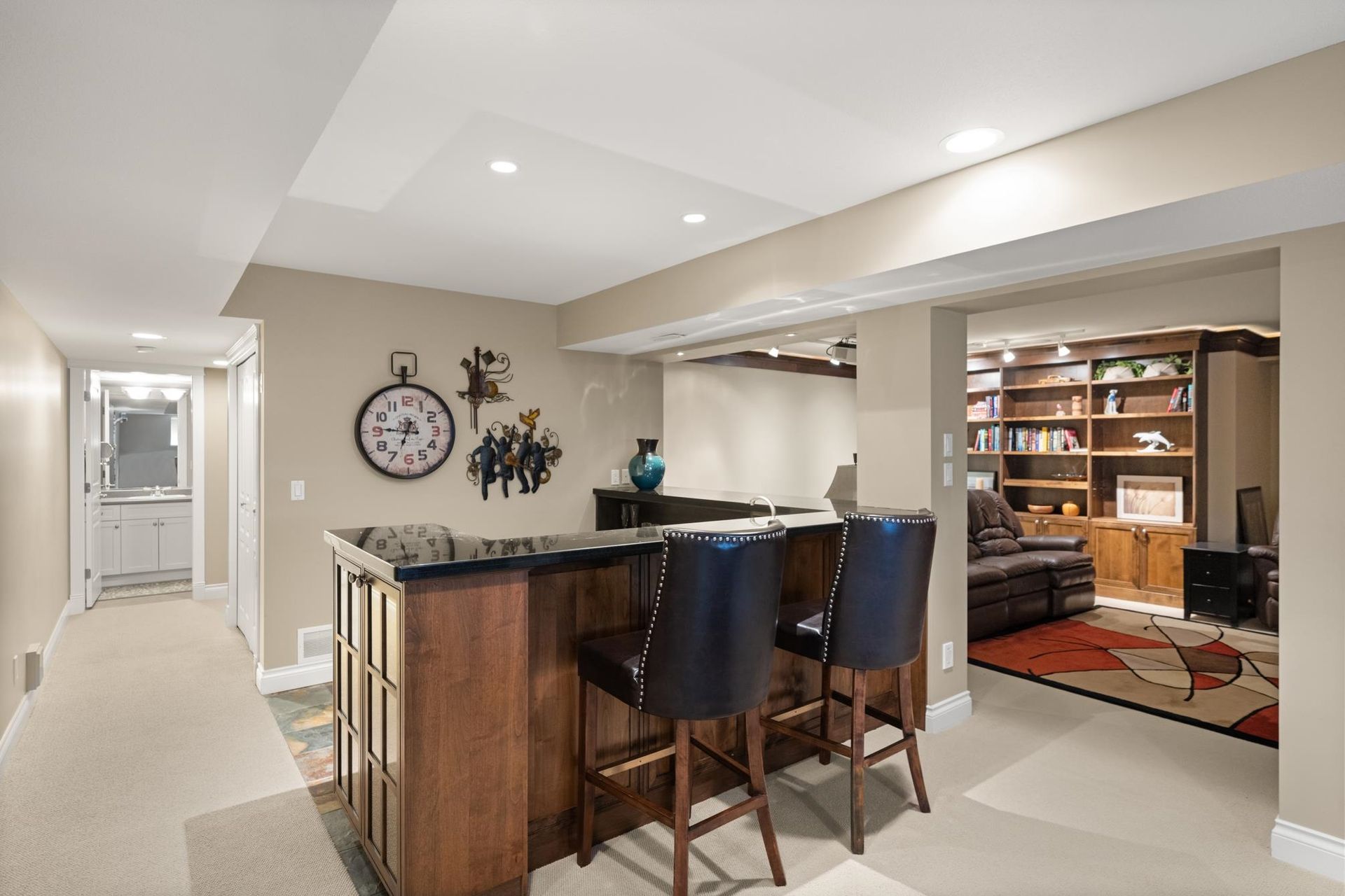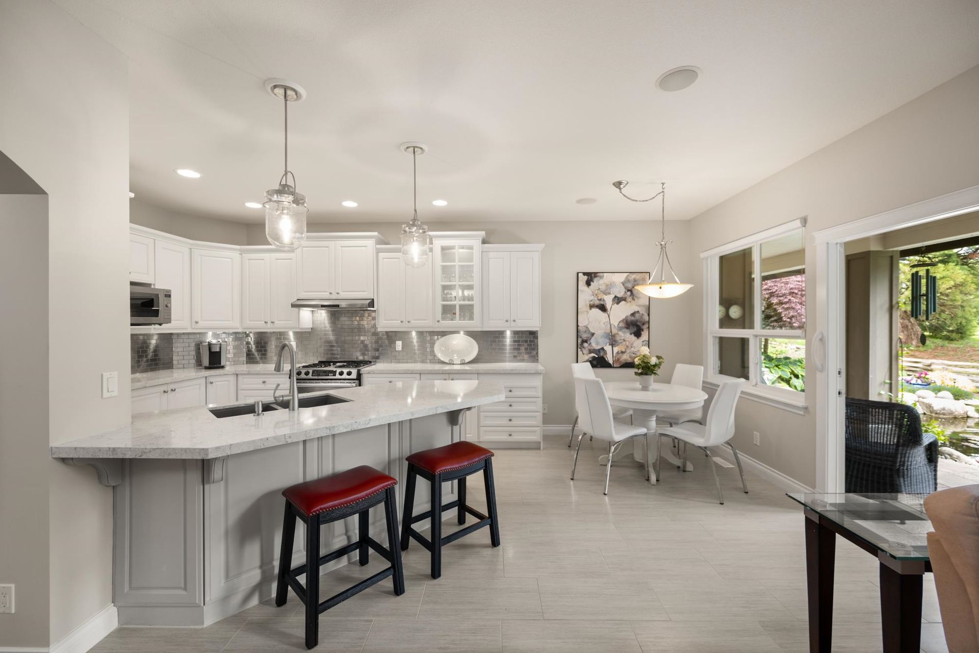 Welcome to Carriage Green in Morgan Creek! This stunning Genex-built golf course 4,088 SF home backs onto the 11th green and showcases quality craftsmanship throughout. Featuring 4 beds/3.5 baths with the primary on the main, it offers vaulted ceilings, a dedicated office, formal dining/great room and an updated kitchen that opens to a covered patio with fireplace, tranquil water feature, and gorgeous golf course views. Upstairs are 2 spacious beds and a full bath. The lower level impresses with a custom bar, wine room, gym, rec room, and guest suite. Enjoy year-round comfort with A/C, new high-efficiency furnace and heat pump. Walk to Morgan Creek Golf Club, local dining, parks and top schools: Morgan Elementary, Grandview Heights, and Southridge. The perfect blend of home and lifestyle!
