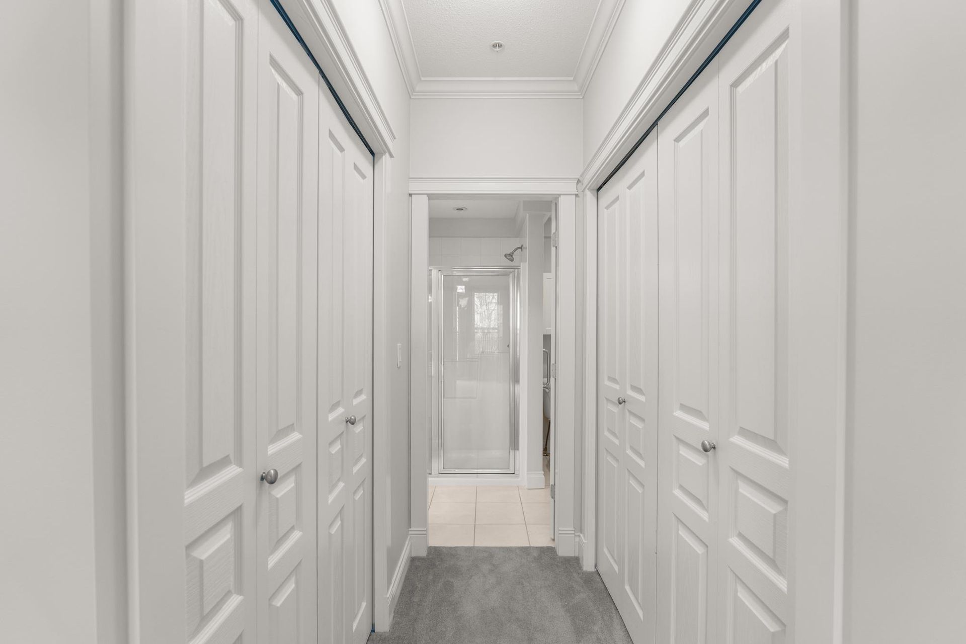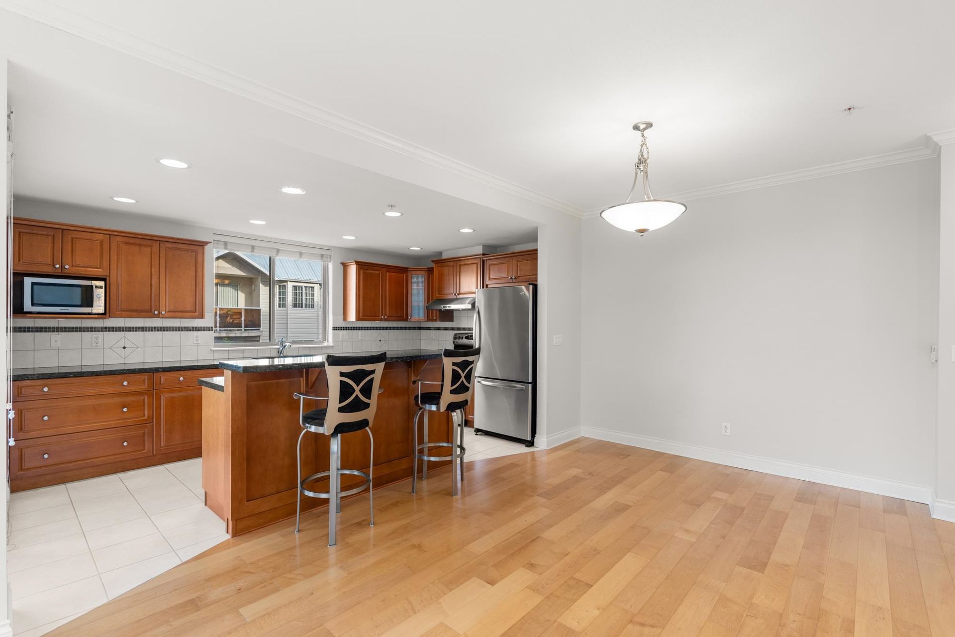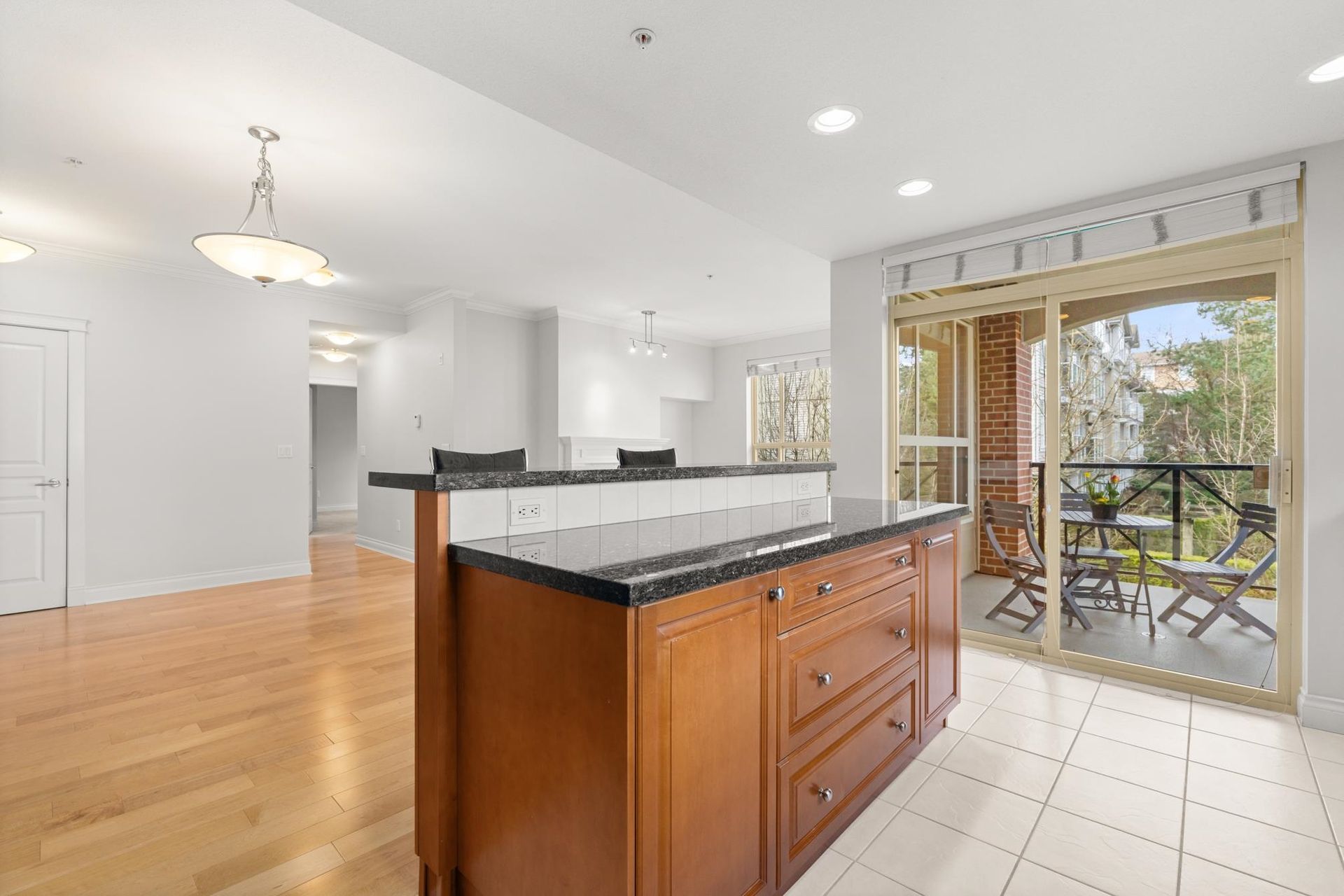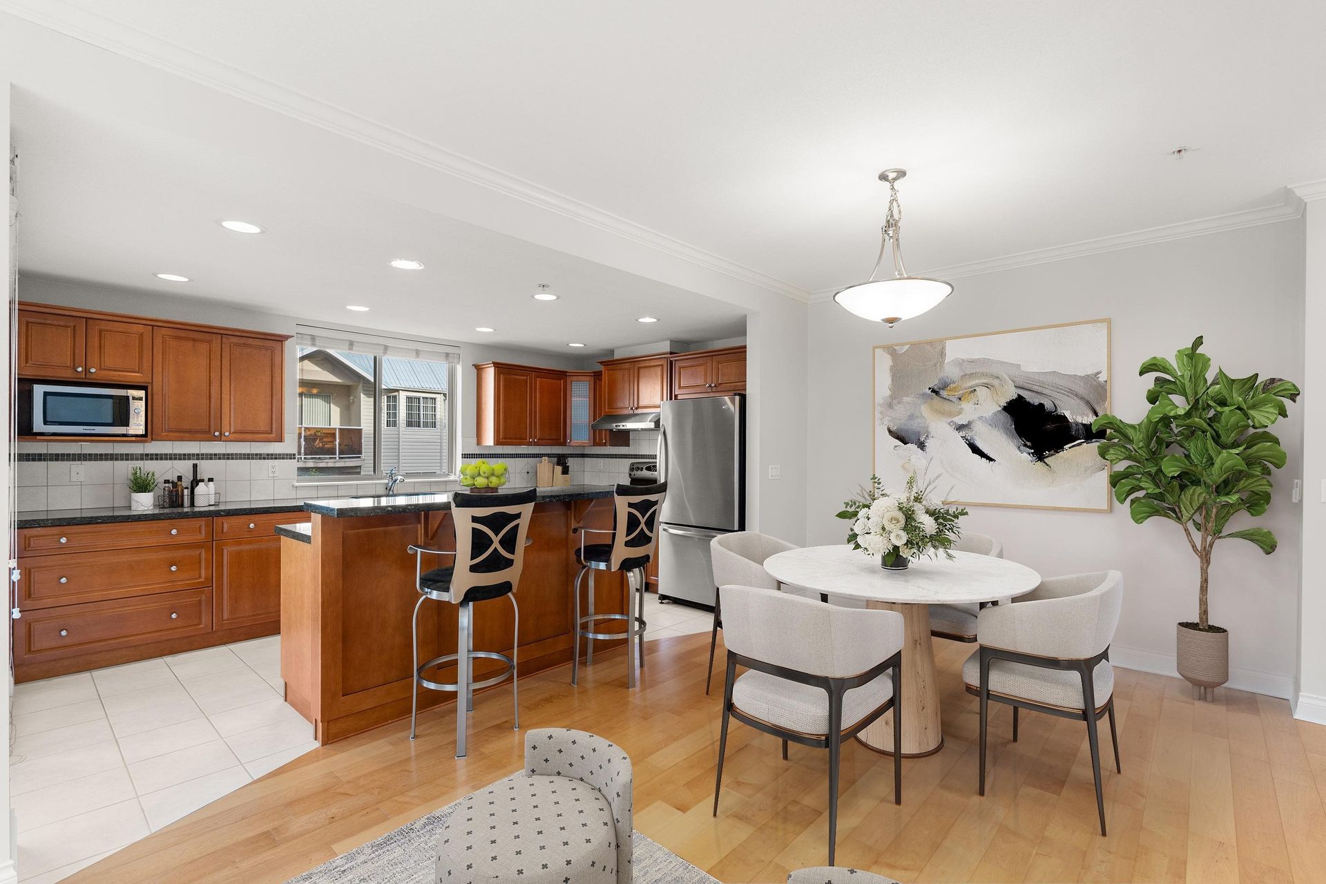Welcome to the Madison, built by local, award-winning Genex! Beautiful, bright 1,067 SF, 2-bed/2-bath corner unit has been immaculately maintained by one owner. Ideal floor plan features a home-sized kitchen with granite countertops and a sink with a window, dedicated dining area and cozy living room with gas fireplace and hardwood flooring. The generous primary bedroom offers a spacious ensuite and the second bedroom/full bath is ideal for guests or a home office. Enjoy two private balconies overlooking peaceful greenery—perfect for relaxing or gardening. Updated with fresh paint, new washer/dryer. Storage, bike room, one parking space included. Amenities feature a beautiful lounge, gym and workshop. Walk to Bakerview Park, local shops and restaurants for a truly great lifestyle!