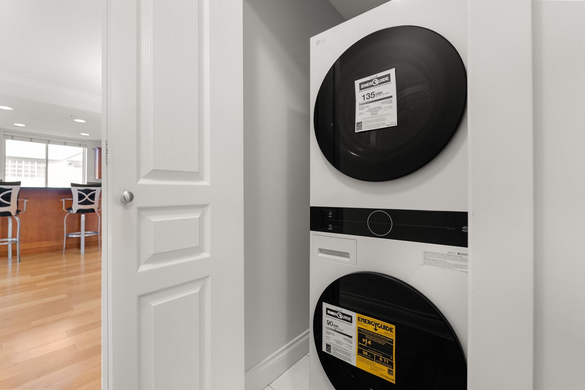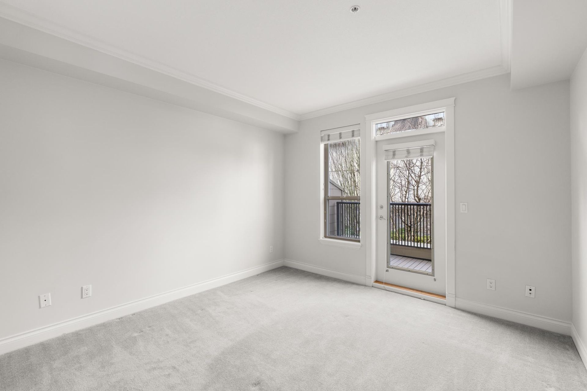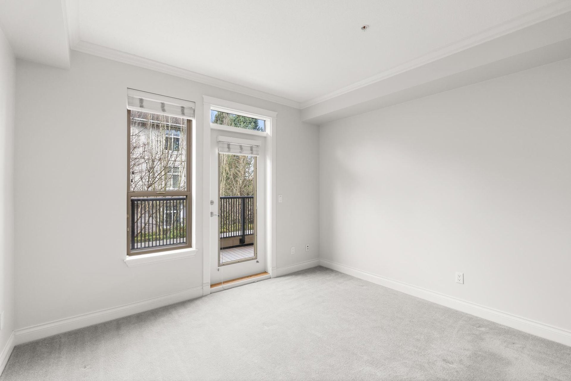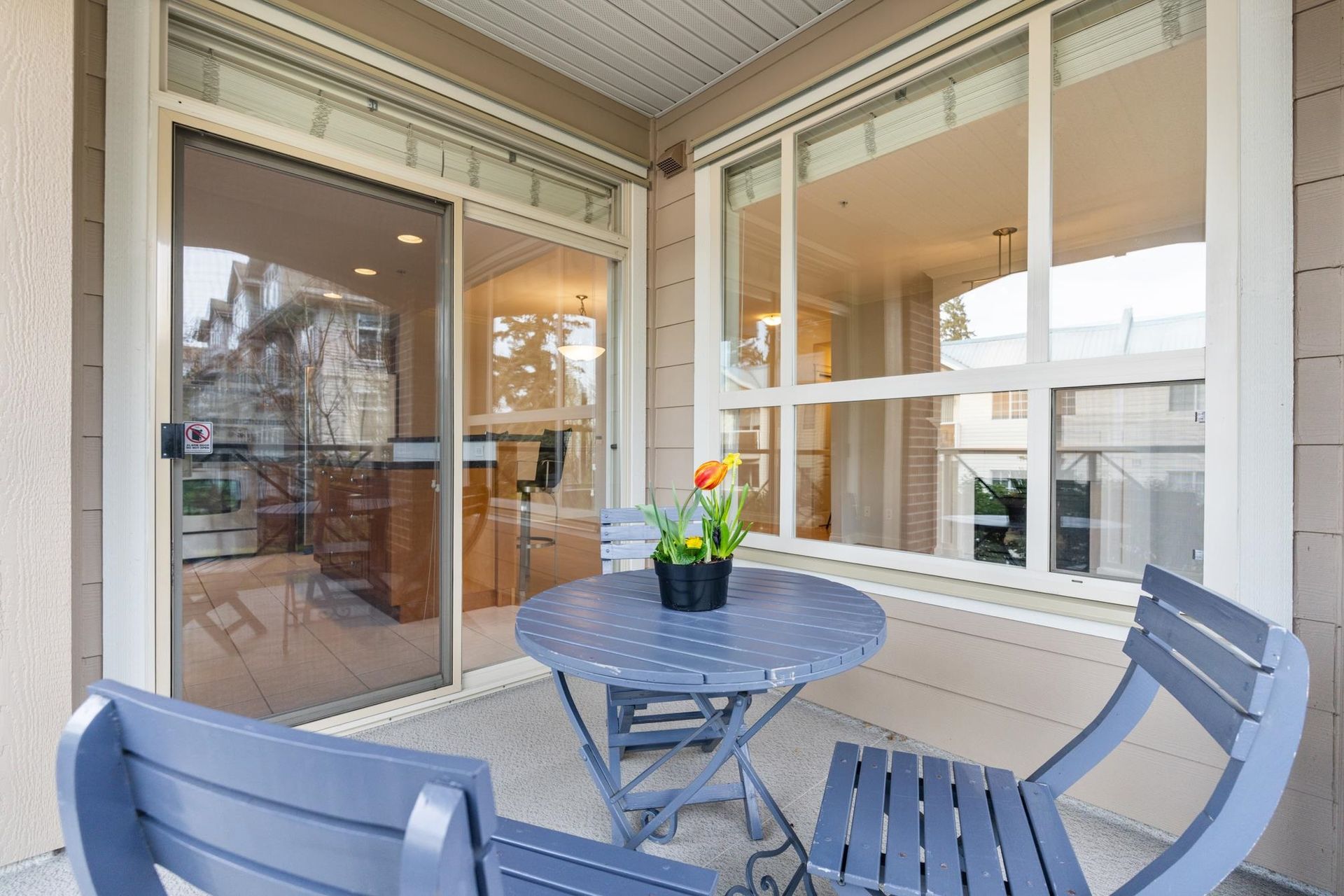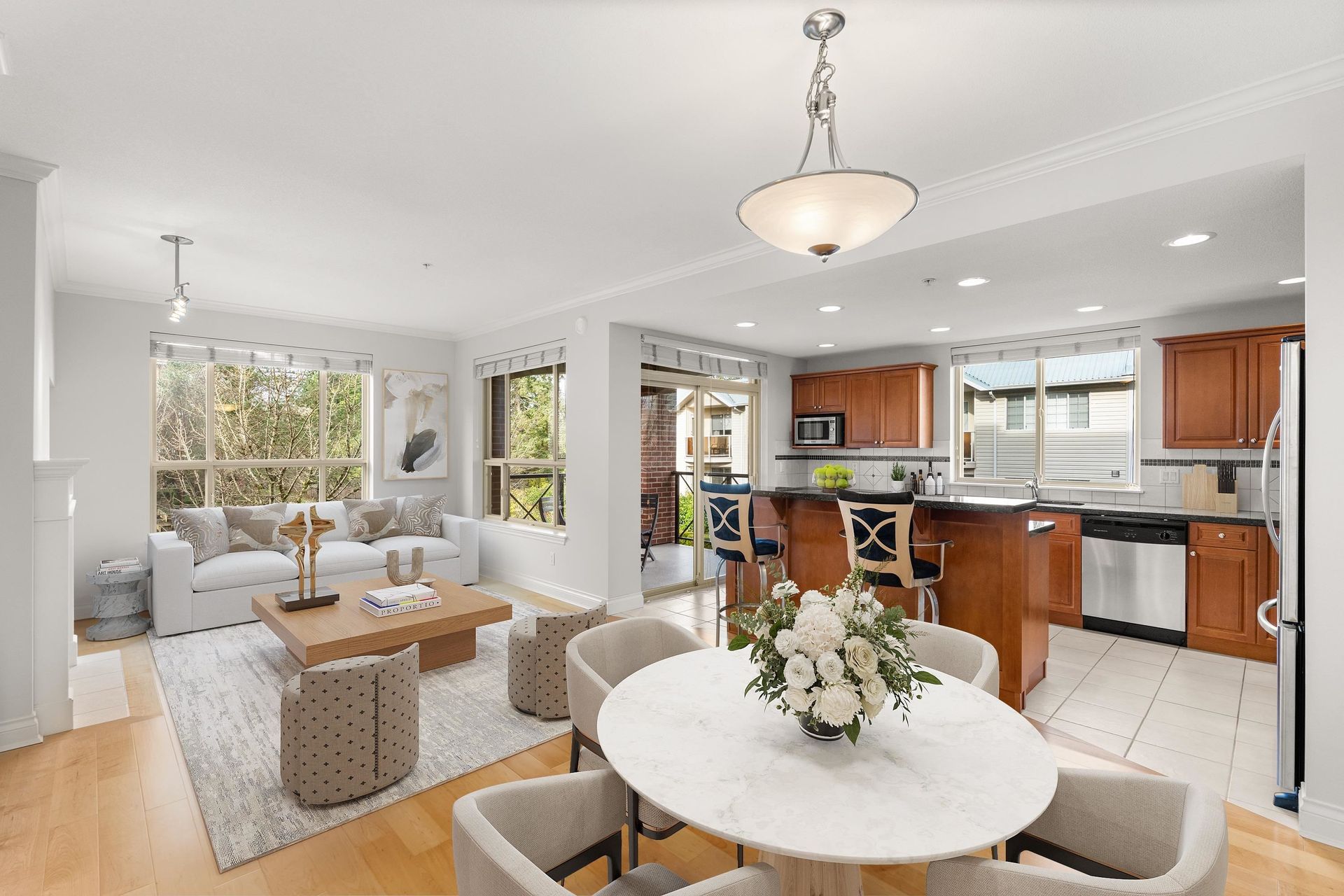 Welcome to the Madison, built by local, award-winning Genex! Beautiful, bright 1,067 SF, 2-bed/2-bath corner unit has been immaculately maintained by one owner. Ideal floor plan features a home-sized kitchen with granite countertops and a sink with a window, dedicated dining area and cozy living room with gas fireplace and hardwood flooring. The generous primary bedroom offers a spacious ensuite and the second bedroom/full bath is ideal for guests or a home office. Enjoy two private balconies overlooking peaceful greenery—perfect for relaxing or gardening. Updated with fresh paint, new washer/dryer. Storage, bike room, one parking space included. Amenities feature a beautiful lounge, gym and workshop. Walk to Bakerview Park, local shops and restaurants for a truly great lifestyle!