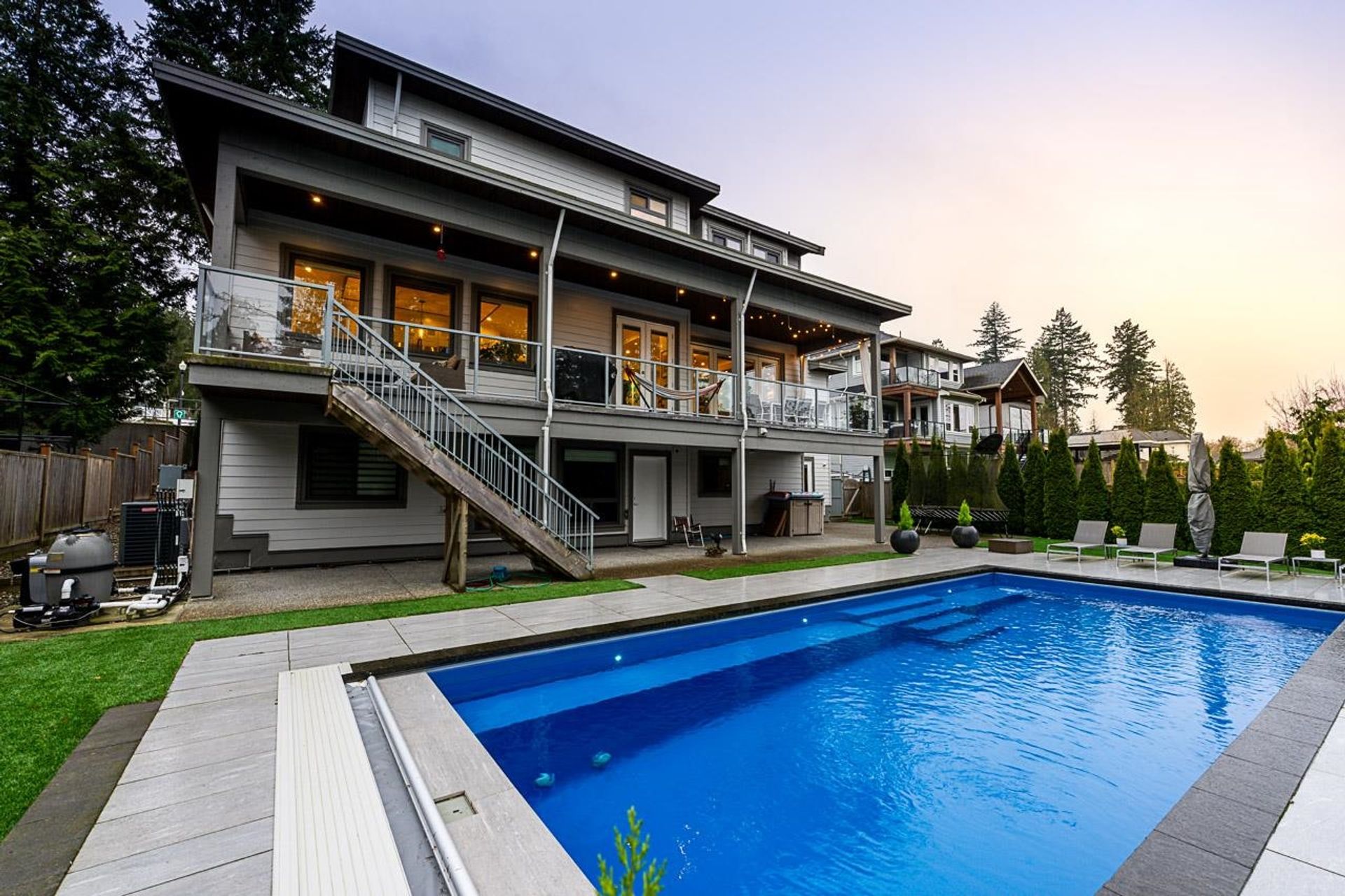 Luxurious April Creek home with over 6,300sqft of open concept living space. Spacious living & dining room flow into the great room perfect for entertaining with a Chef‘s Kitchen and bonus Wok Kitchen. Upper level is complete with 4 ensuited bedrooms, including the beautiful primary suite and an additional guest room tucked away on the main. Lower level features a bar, rec room, theatre room, gym, sauna, and 2-Bedroom Suite. Situated on a private and manicured 12,055sqft property with a sensational resort-style backyard features an in-ground pool perfect for west coast summers. Close to Pacific Heights elementary, Grandview Heights secondary, Morgan creek golf course and local shops and restaurants.