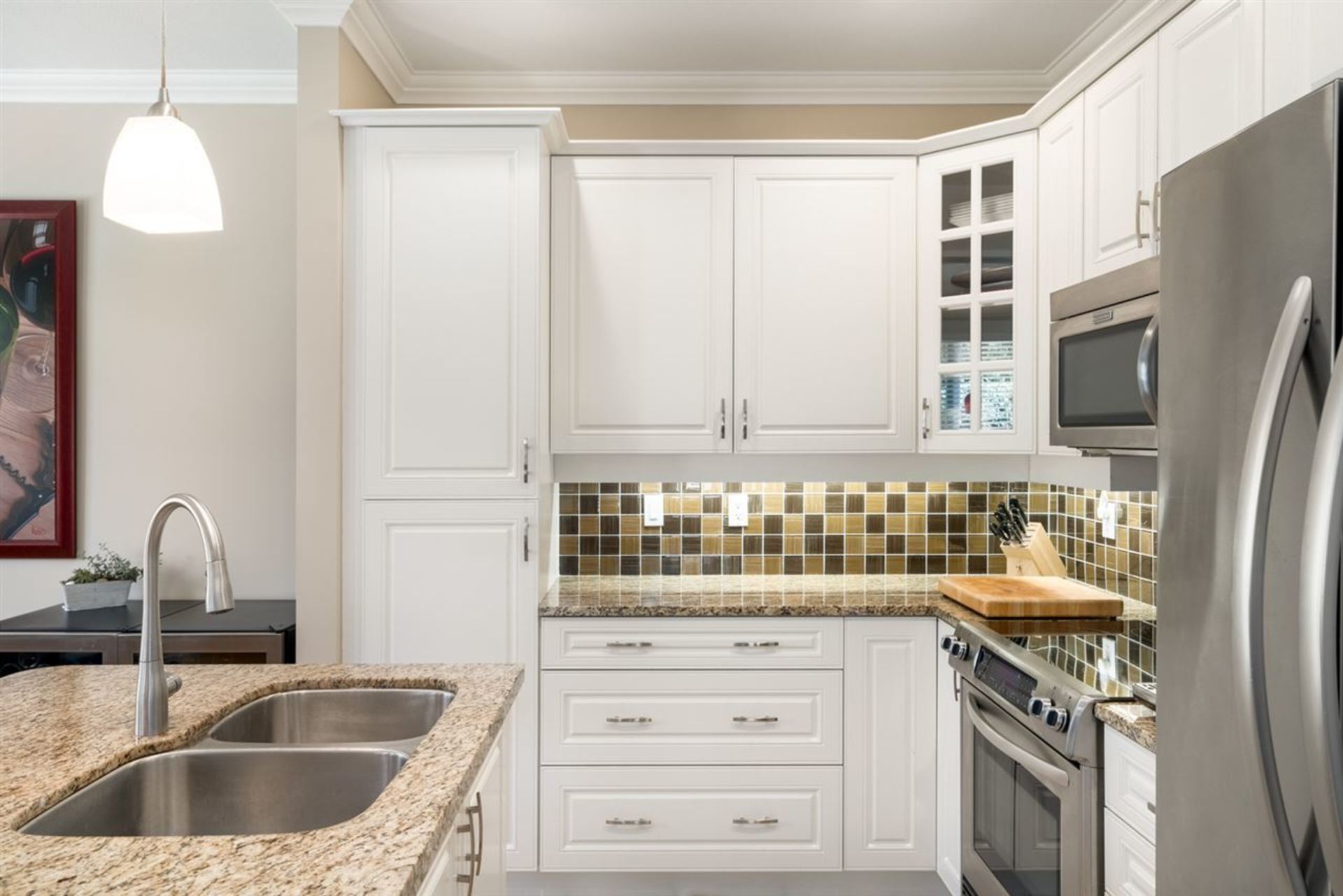 Beautifully and tastefully updates residence in the highly coveted Highgrove complex. This 1,426sqft Corner Unit boasts and excellent layout ideal for entertaining and family living. Open-concept main floor complete with a well-sized Great Room, adjacent Renovated Kitchen with s/s appliances and a large center-island and excellent flow into a dining area. Easy access to the bright & private WEST Facing backyard. The upstairs includes an open space/den with skylight with oversized master, large walk-in closet and ensuite. A second bedroom plus LAUNDRY UP! A large two car garage and ample guest parking. A great location; close walk to many amenities and only a 5 minute drive to WHITE ROCK BEACH. A close walk to Semiahmoo Secondary school & Semiahmoo Mall, pets are allowed.