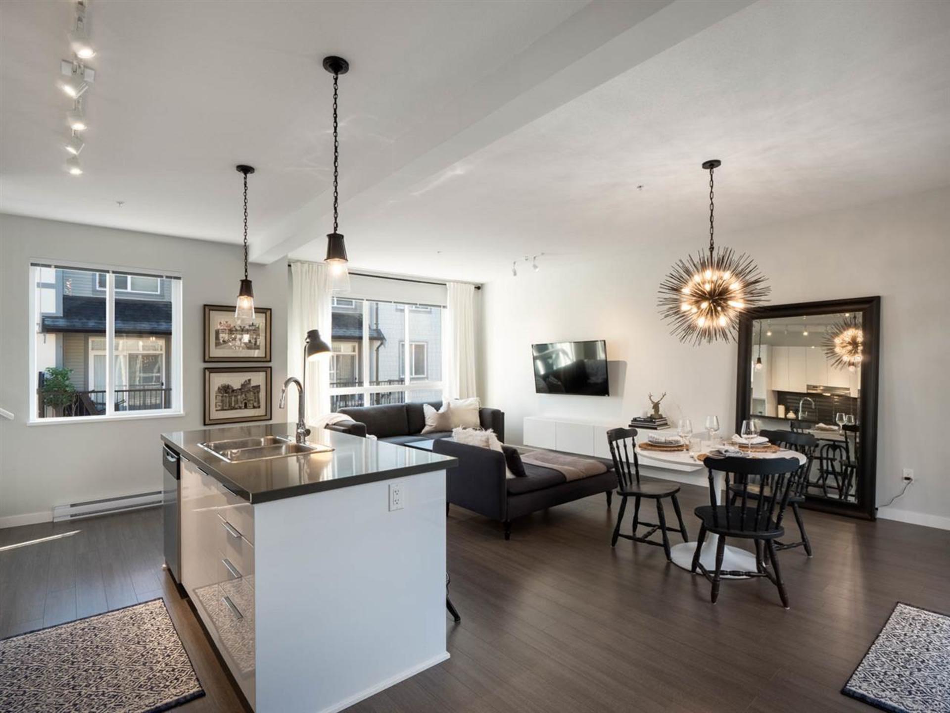 This exceptional two bedroom home is fresh and elegant. This open-concept living space will inspire any chef with a large island that is perfect for entertaining. Wide-plank floors, modern kitchen with loads of storage, quartz surfacing. Lighting is custom throughout to top off the designers home.Up stairs is a luxurious master and luxe master bath with an upgraded laundry room and storage. Walkout to your bright South facing yard from the main living area. Vacation at home as this complex has a pool, gym, indoor playground plus 2 guest suites…a must see!