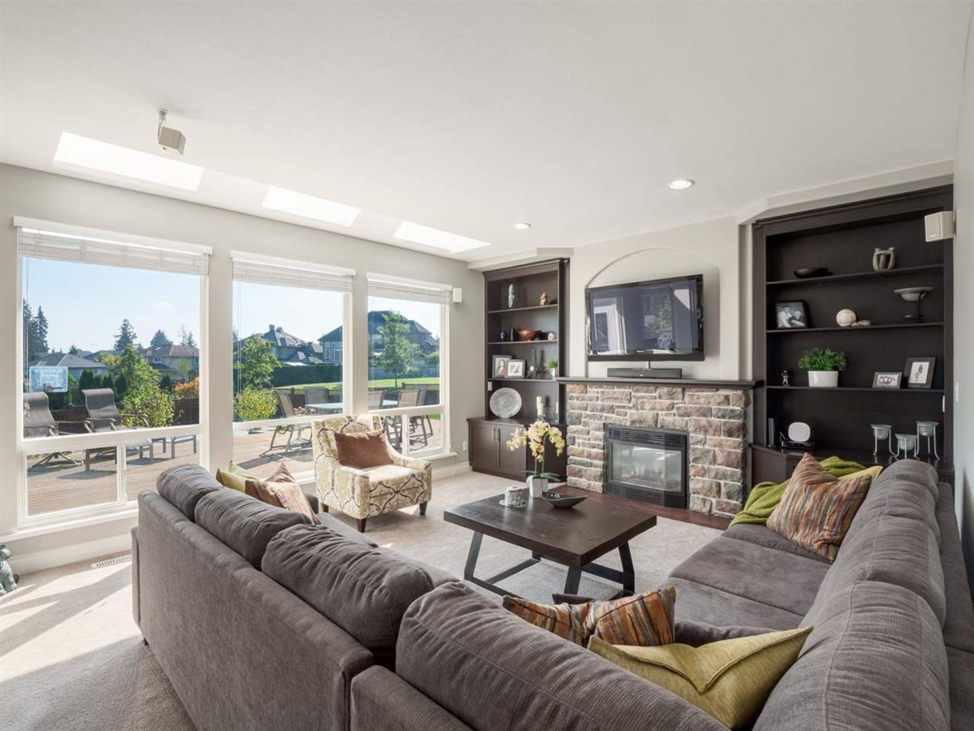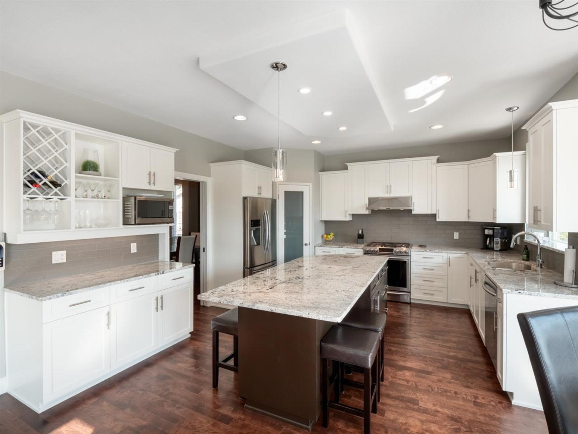 Gorgeous family residence located in an executive neighbourhood of multimillion dollar estate homes! Beautifully maintained & extensively renovated with DESIGNER INFLUENCES, this 5 Bedroom/4 Bathroom home boasts an open-concept layout over 3 well-appointed levels. Grand foyer sets the tone of sophistication & flows into a Classic Living Room and adjacent Dining Room. The airy Great Room combines a Chef's Dream Kitchen complete with professional appliances, large centre island and eating area.Hotel-Inspired MASTER Suite is sure to please w/ 2 walk-in closets & spa-like ensuite. One-of-a-kind lower level finished with a Bar area, Recreation Room & Gym! An exquisite 14,142sqft property boasting privacy and SOUTHERN Exposure, complete with a large deck and sports court ideal for entertaining!