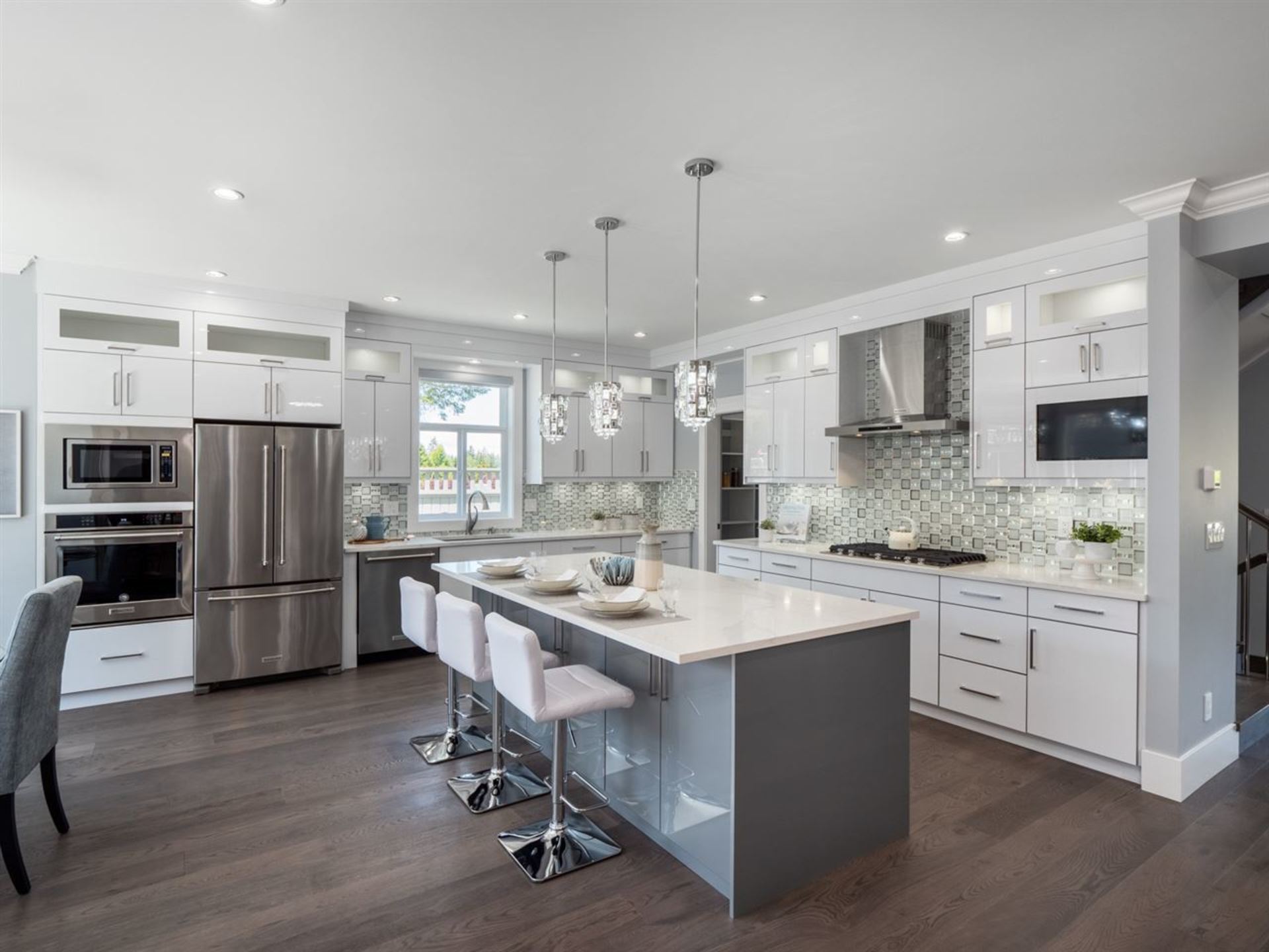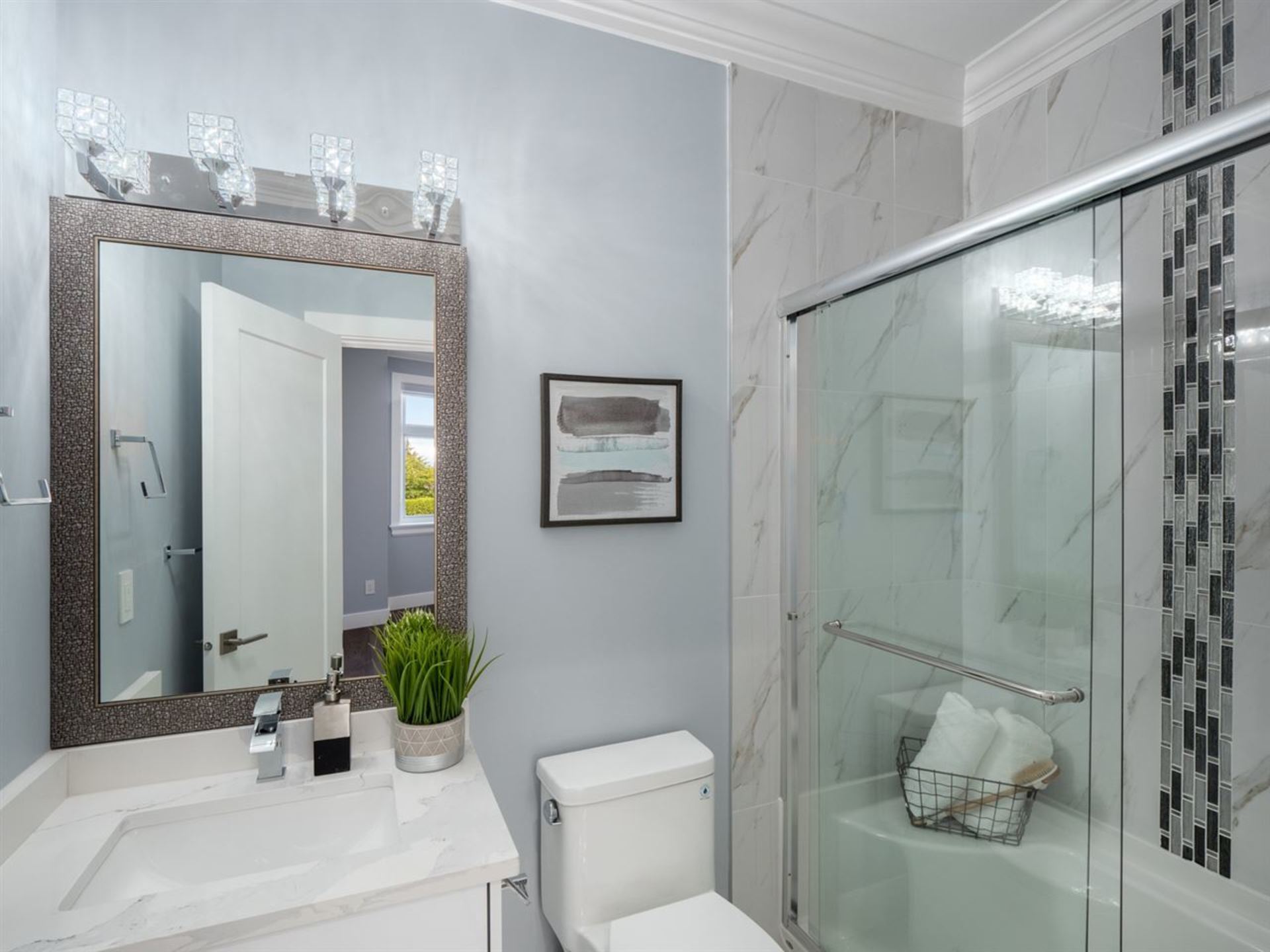 RARE OPPORTUNITY! This executive and custom-build residence is an expansive DUPLEX offering 3870 SQFT of luxurious living space on 3 levels. The beautiful tudor-style facade gives the appearance of a grand-scale single family home. MODERN Interior Design and 5 Beds/6 baths with potential for a SUITE on the lower level. Main floor boasts an open concept with a living room, adjacent dining room and spacious Great Room with access to a covered deck. Kitchen features a large center island, quality cabinetry & appliances, and walk-in pantry. 4 large bedrooms above including the South Facing MASTER SUITE! Lower level provides excellent flexibility with a Rec Room & potential mortgage helper...Situated on a Bright 5,209sqft property with excellent sunlight and garden space. Excellent location.