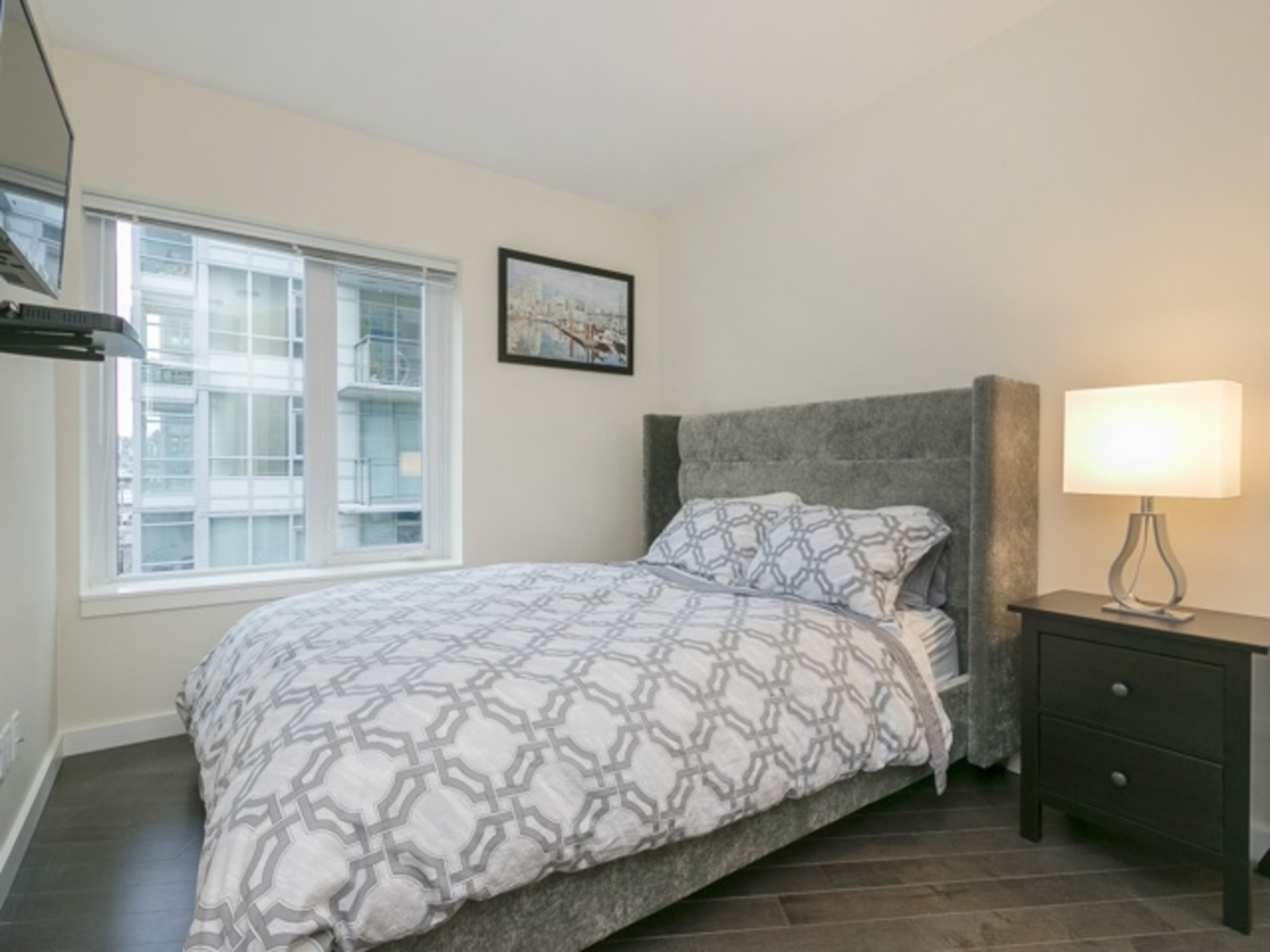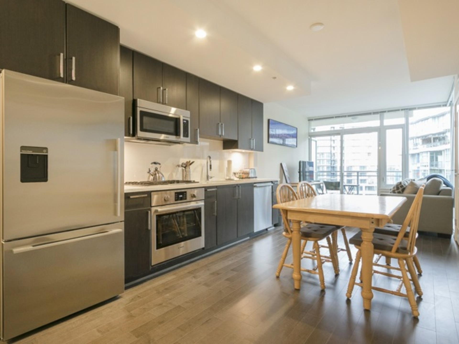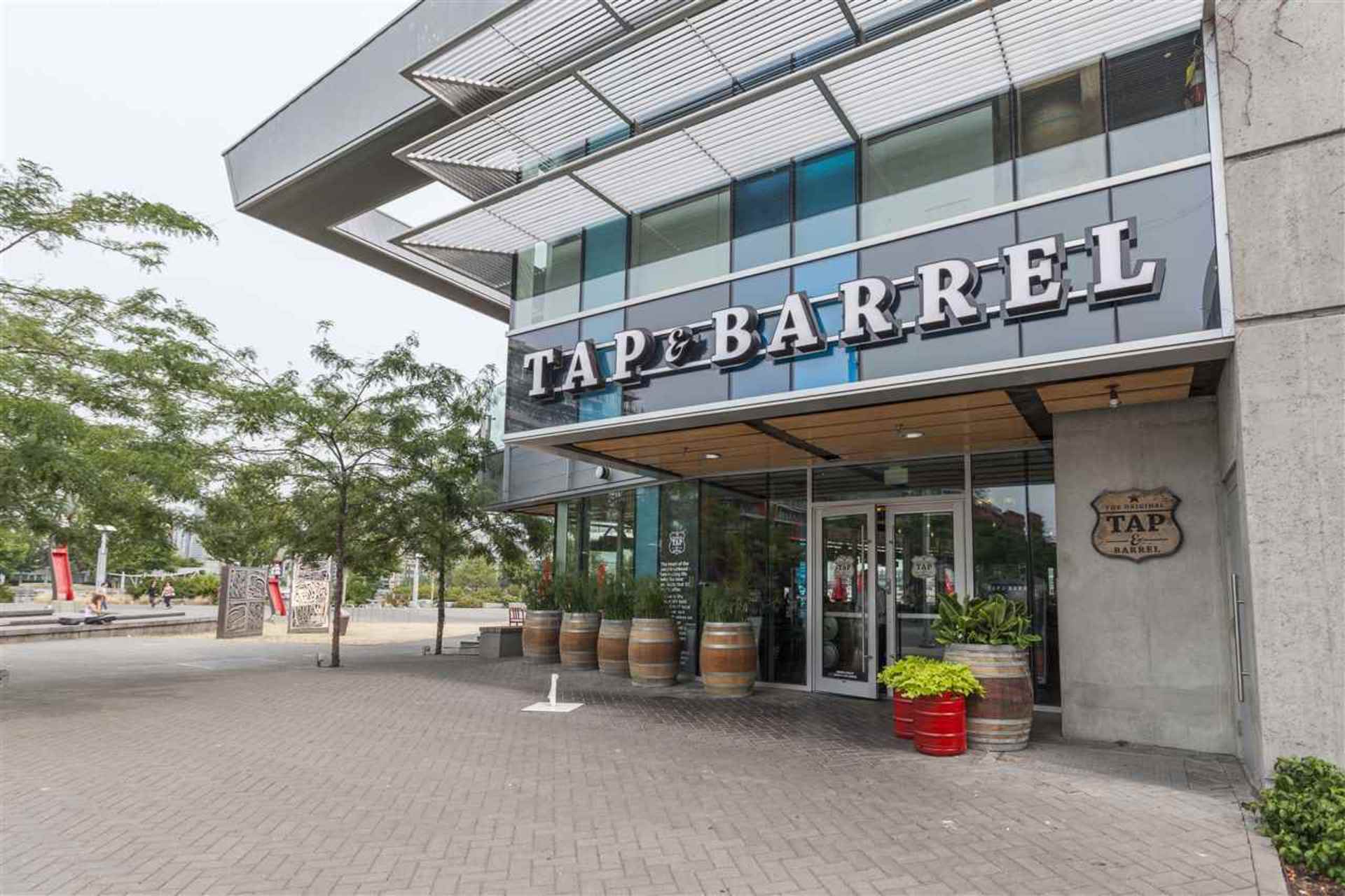 Welcome to The One. Urban living (with AC!) in the heart of Olympic Village, steps from the Seawall in a newer building with an amazing outdoor pool! This bright SE facing one bedroom+ den corner unit features an open plan with hardwood floors, white quartz counters, stainless steel Bosch appliances, gas cook top, A/C, and in suite laundry. Amenities include an exercise centre, party room and an outdoor infinity pool and hot tub with panoramic views. Just steps to Tap & Barrel, Craft, Skytrains, Terra Breads and the Seawall. Rentals & pets permitted. SNEAK PEEK: Thurs Jan 16 - 5:30 - 6:30 Open House: Sat Jan 18 & Sun Jan 19 - 2-4pm