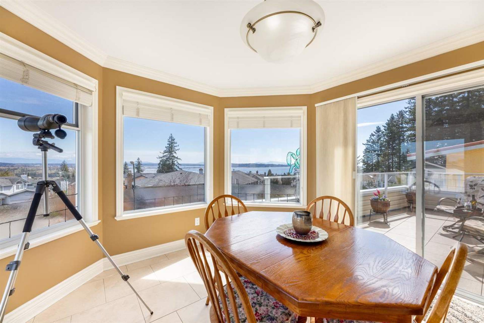 Perched high on a prized Southern exposed property offering Gorgeous OCEAN & MOUNT BAKER VIEWS! This beautifully maintained & updated family home features over 2,800sqft of living space on 2 well-appointed levels. Reverse plan to take advantage of the 180 degree Ocean Views. Top floor features large picture windows to fill the Great Room with natural light. Eat-in Kitchen features a large center island, adjacent eating area with heated floors & access to a large deck to enjoy the indoor/outdoor lifestyle this home offers. Private Dining Room and Living Room for formal entertaining. 2 spacious bedrooms above, with updated Ensuites, including the Master Bedroom! Lower level complete with Rec Room, flex space & Guest bedroom (Potential to turn into a SUITE!).