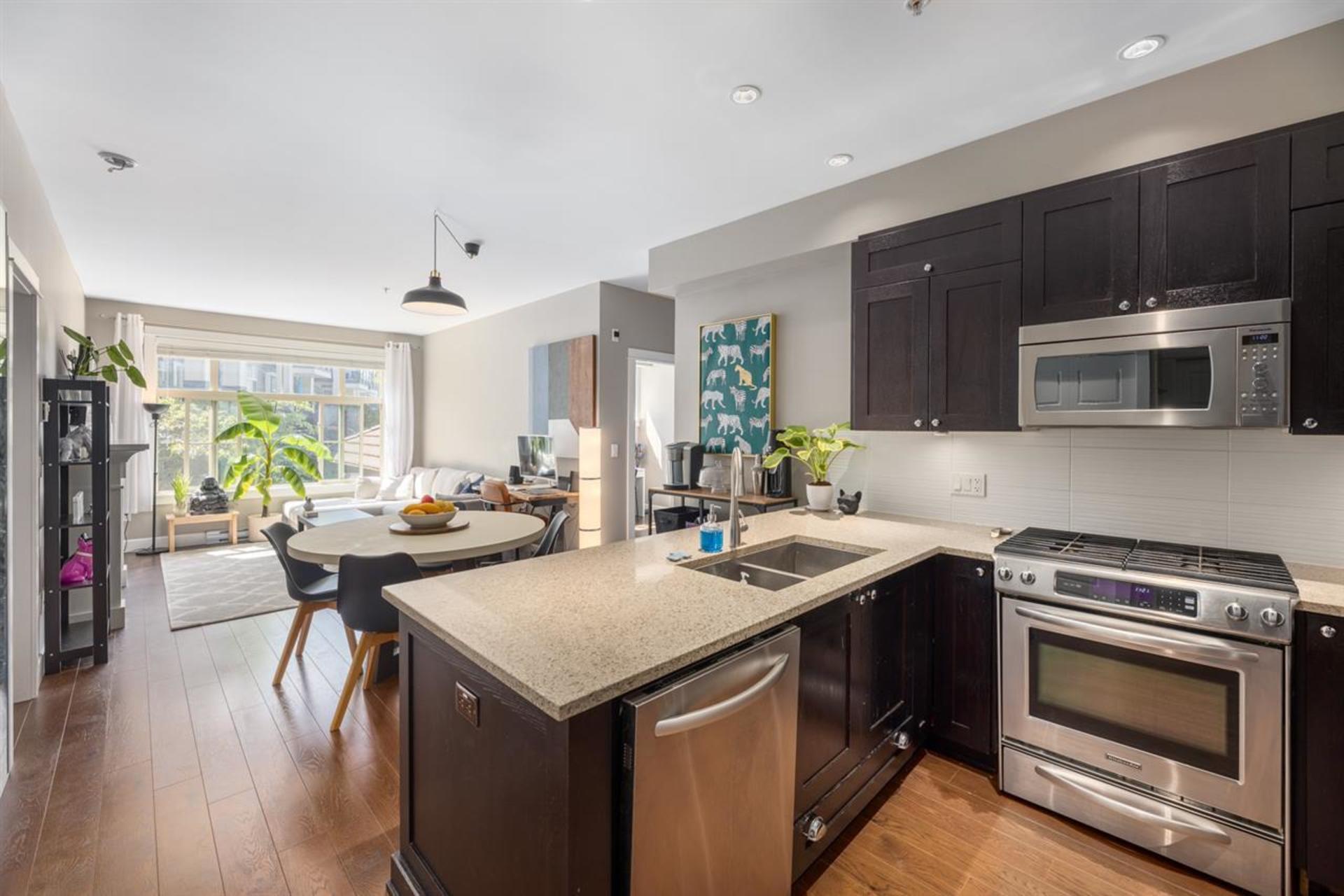 An absolute masterpiece situated in the highly coveted EDGEWATER Development. Beautiful 2 bed/2 bath residence boasts designer influences throughout. Located in a prime location with Southern Exposure & steps away from the amenities room. Open-concept layout, ideal for entertaining and family living! Gourmet Kitchen complete with rich cabinetry, stone counters, Kitchen Aid appliances and a large island flows into the adjacent dining area and Living Room. A spacious deck creates a desirable indoor/outdoor living space off of the Great Room for year round enjoyment. The clubhouse features a rooftop pool, spa, sauna, fire pit, gym, yoga studio, theatre, board room & guest suite. **BONUS STORAGE ROOM the size of a double garage!**