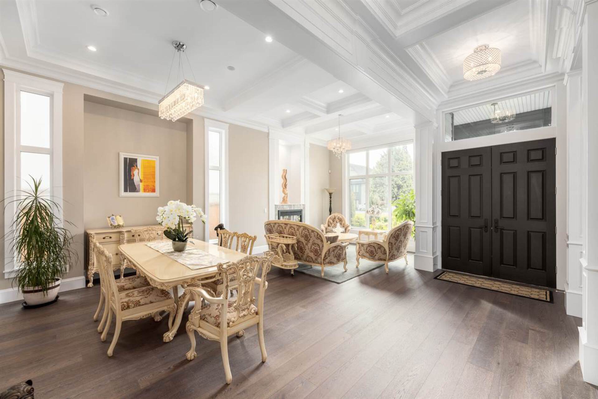 INCREDIBLE TRANSITIONAL style home in Ocean Park's most desirable locations. Soaring 12' ceilings, radiant in-floor heating, top of the cabinetry and appliances, and custom millwork fill this home with grandeur and class! Built around entertaining with functionality in mind, you are greeted into a formal living room with adjacent dining room. The Great Room is spread across the entire back of the home with views of the private and lush backyard. The Luxurious Kitchen is finished with Miele appliances and a bonus Wok Kitchen! 4 ensuited bedrooms above including the expansive Master Suite with a gorgeous Bathroom & walk-in closet. Bonus full bedroom & bathroom on the main floor. Located steps away from Ocean Park Village, local parks & restaurants. Ray Shepherd & Elgin Park School Catchment.