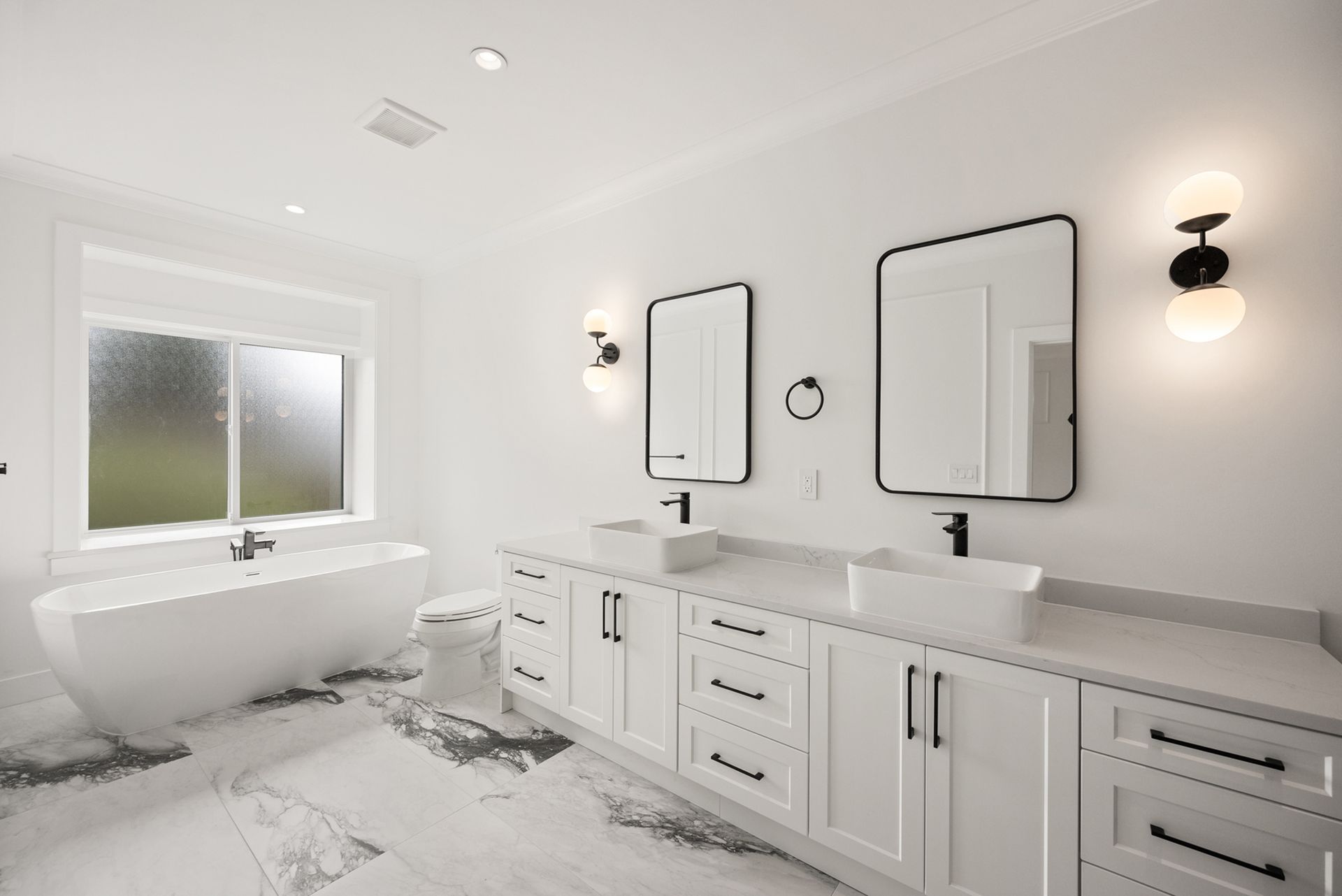 BRAND NEW Family Home boasting quality construction and beautiful design influences. Built by reputable Florus Homes, this SOUTHERN exposed 3,310sqft 5 bedroom and 5 bathroom home has been meticulously crafted for the most discerning buyer. Gorgeous stone facade with European influences on the exterior with lush landscaping lead to a Grand Foyer with soaring ceilings and a formal living room. Great Room along the back of the home with a GOURMET KITCHEN featuring Jenn Air appliances and a bonus Wok Kitchen. 4 Generous bedrooms above including the Master Suite with a private deck. Other features include a 1-Bedroom Legal Suite, Radiant Heating, AC, Custom Millwork and much more. New Home Warranty & Steps away from shops & restaurants, Jessie Lee Elementary & Earl Marriott Secondary Schools.