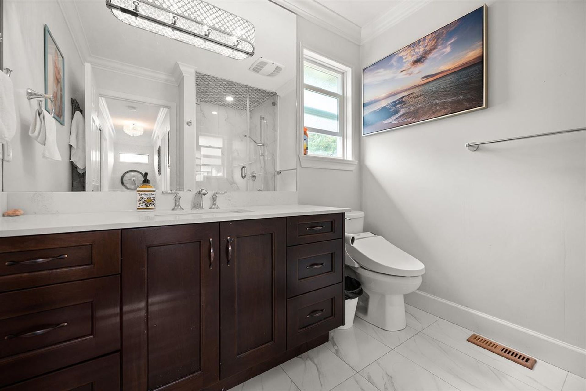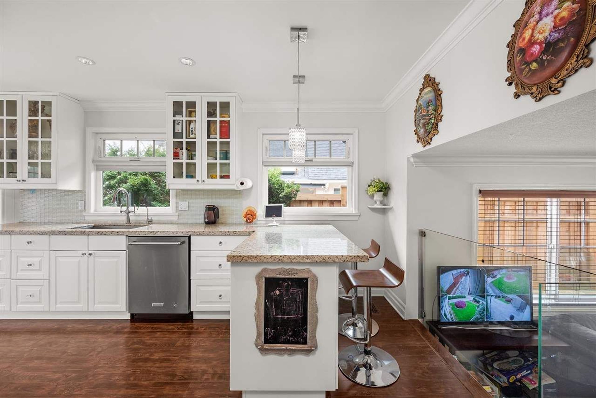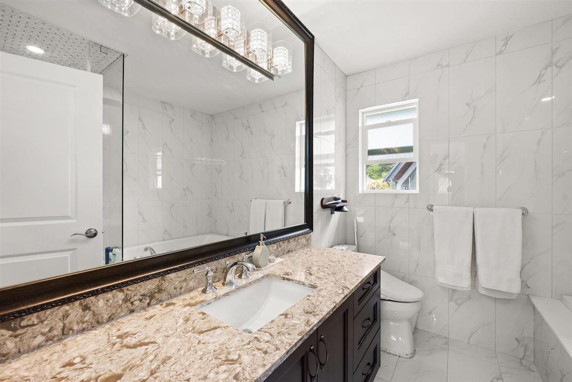 Beautiful family home in one of South Surrey's most desirable locations, The Glens. This pristine 2,131sqft home is situated on a sunny 8,096sqft property with excellent exposure and ample natural light. Charming home has extensive renovations and is move-in ready. A formal living and dining room flow into a bright and airy eat-in Kitchen. A sunken Family Room with french doors opens up to a new deck, perfect for outdoor entertaining. Convenient flex area on the main floor leads to a private bedroom. Upper level features 3 bedrooms and 2 bathrooms. Steps away from Sunnyside Park, South Surrey Rec. Center, Softball City, Semiahmoo Mall and so much more. BONUS: H.T. Thrift Elementary School and SEMIAHMOO Secondary School Catchment! Convenience at your doorstep!