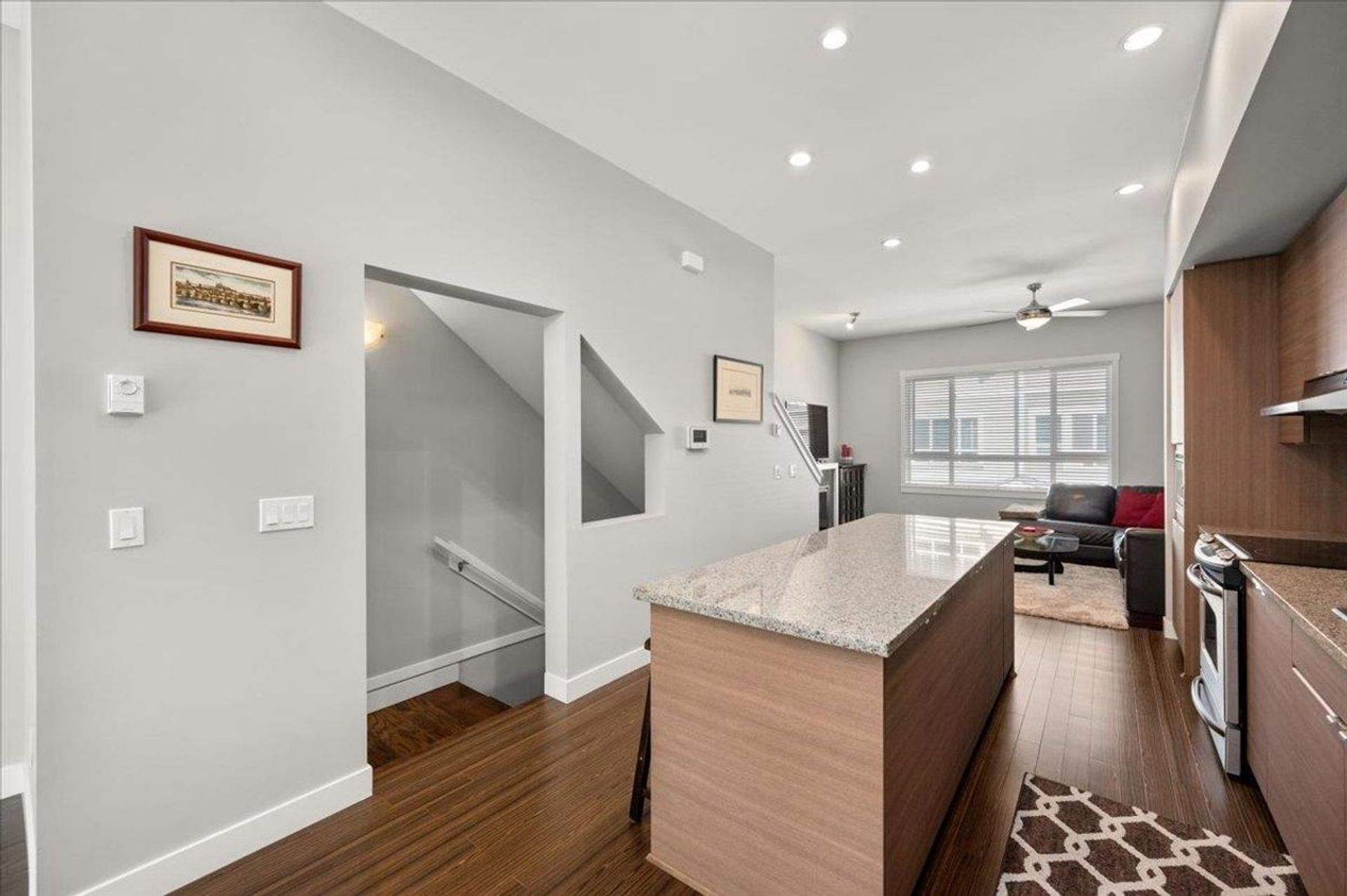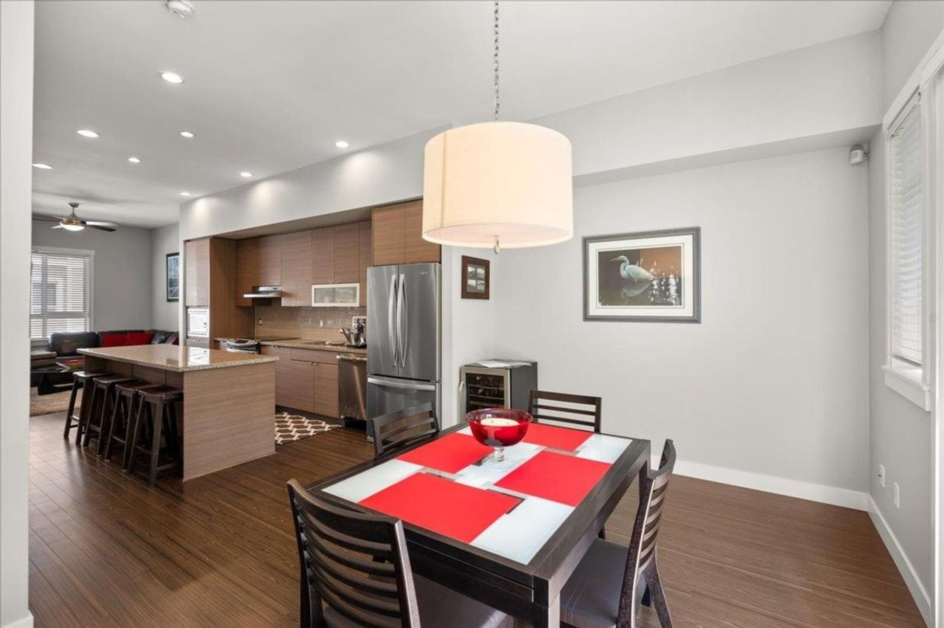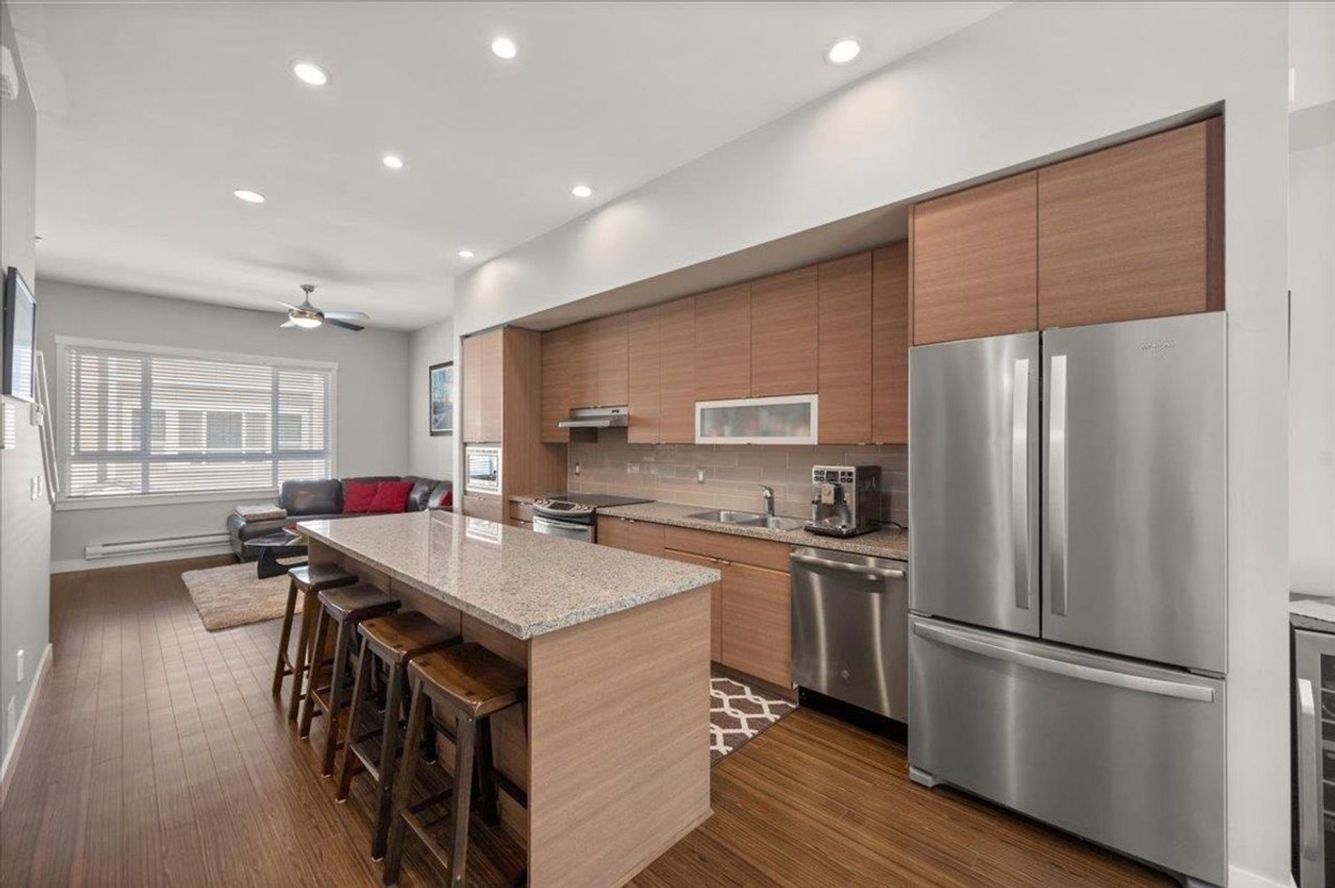 2bdr Town home in South Surrey. Shows like new - open concept floor plan on main with 10ft ceilings, S/S appliances , granite counter w/large island, designer kitchen, modern light fixtures, wide plank laminate flooring, built in Vac. Sunny and bright layout with access to the south facing private fenced yard off main floor - steps away to enjoy your sun soaked afternoons or evenings entertaining outdoors. Upstairs brand new carpeting - spacious master/ensuite and second bedroom/main bath. Oversized tandom garage, lots of storage. Close walk to shops at Morgan Crossing, walking distance to Sunnyside Elem/Southridge Schools. Beautiful to show...not to be missed!