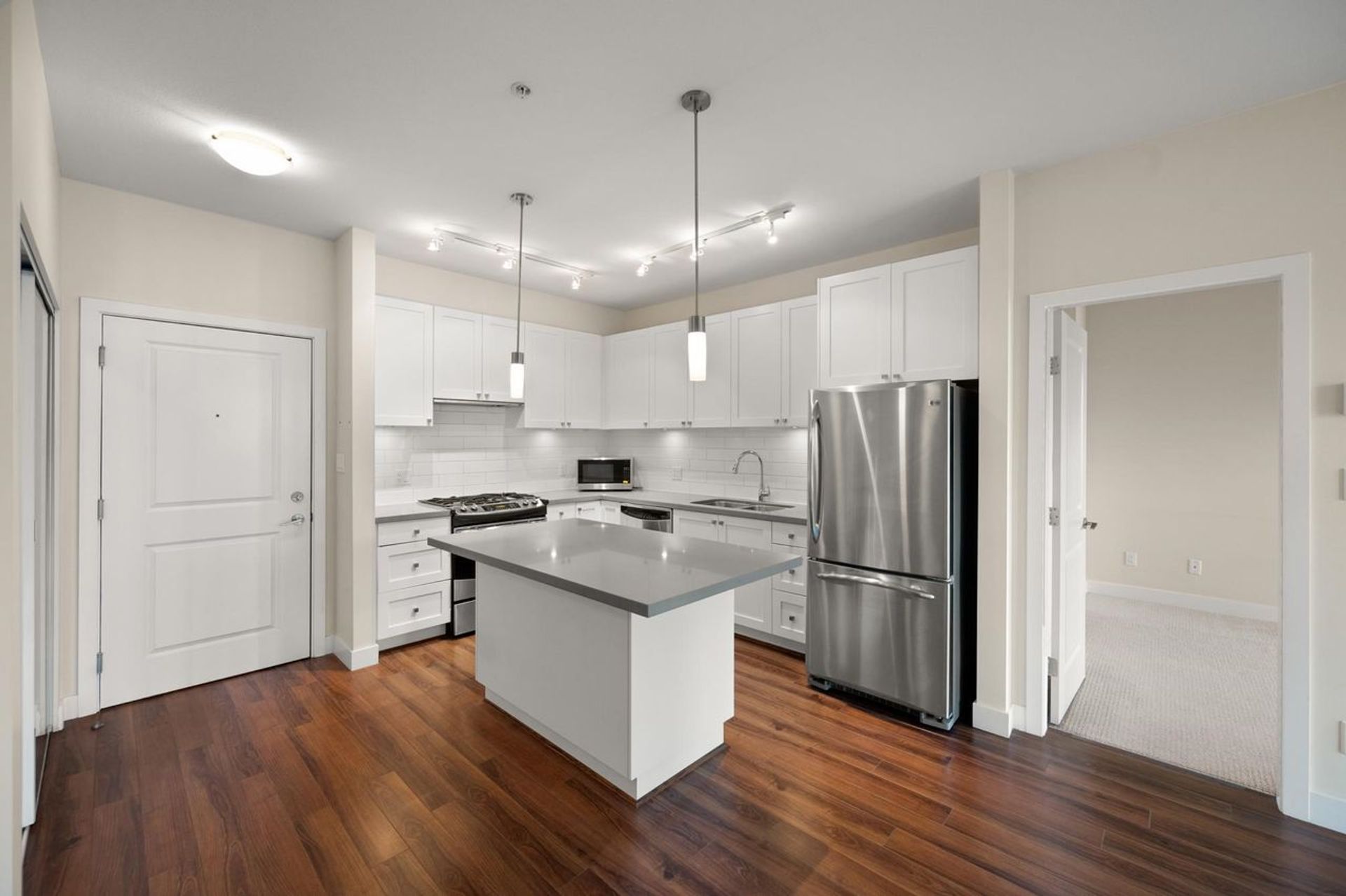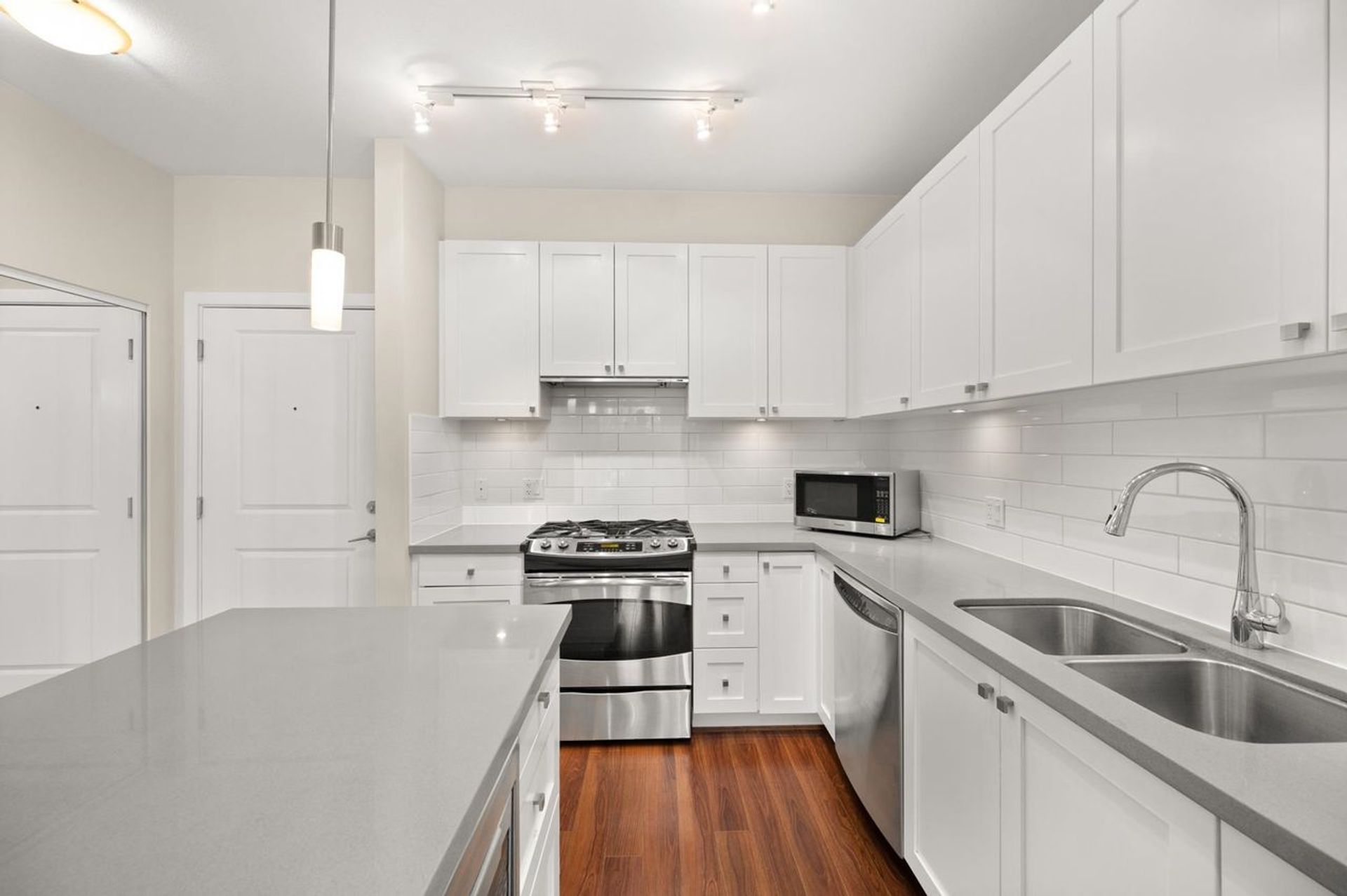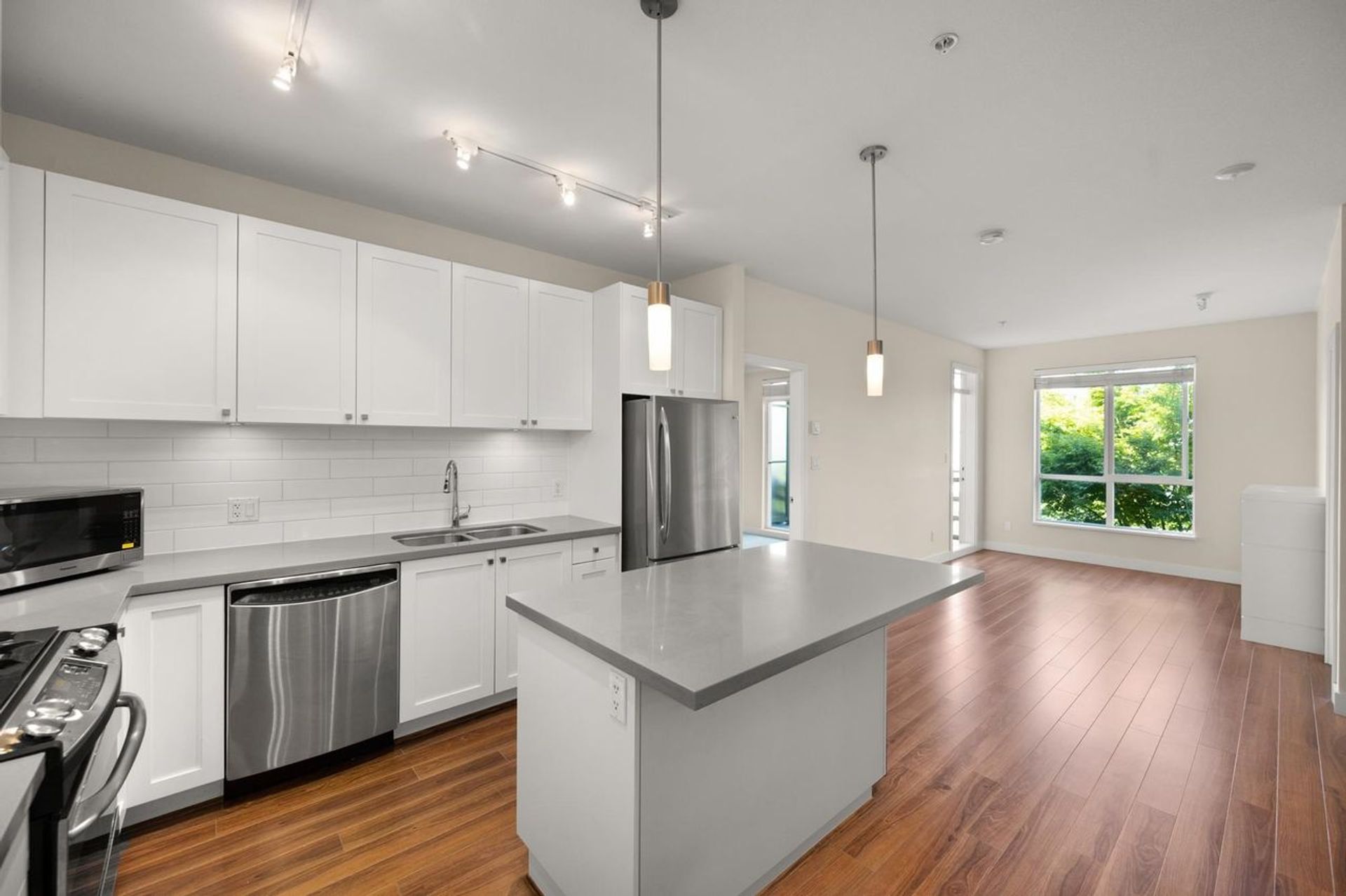 RESIDENCES at MORGAN CROSSING...2 bedrooms and 2bathrooms. Southern exposed condo...overlooking over an acre of community gardens/patio/bbq area. Open concept floorplan - kitchen - s/s appliances, large island...spacious and bright living room w/access to private patio. Large Main bedroom w/ensuite, 2nd bedroom and additional full bathroom. Enjoy the quiet but only steps away from all the shops at Morgan Crossing and Grandview Corners. Close to Southridge Private Academy, Sunnyside Elem.