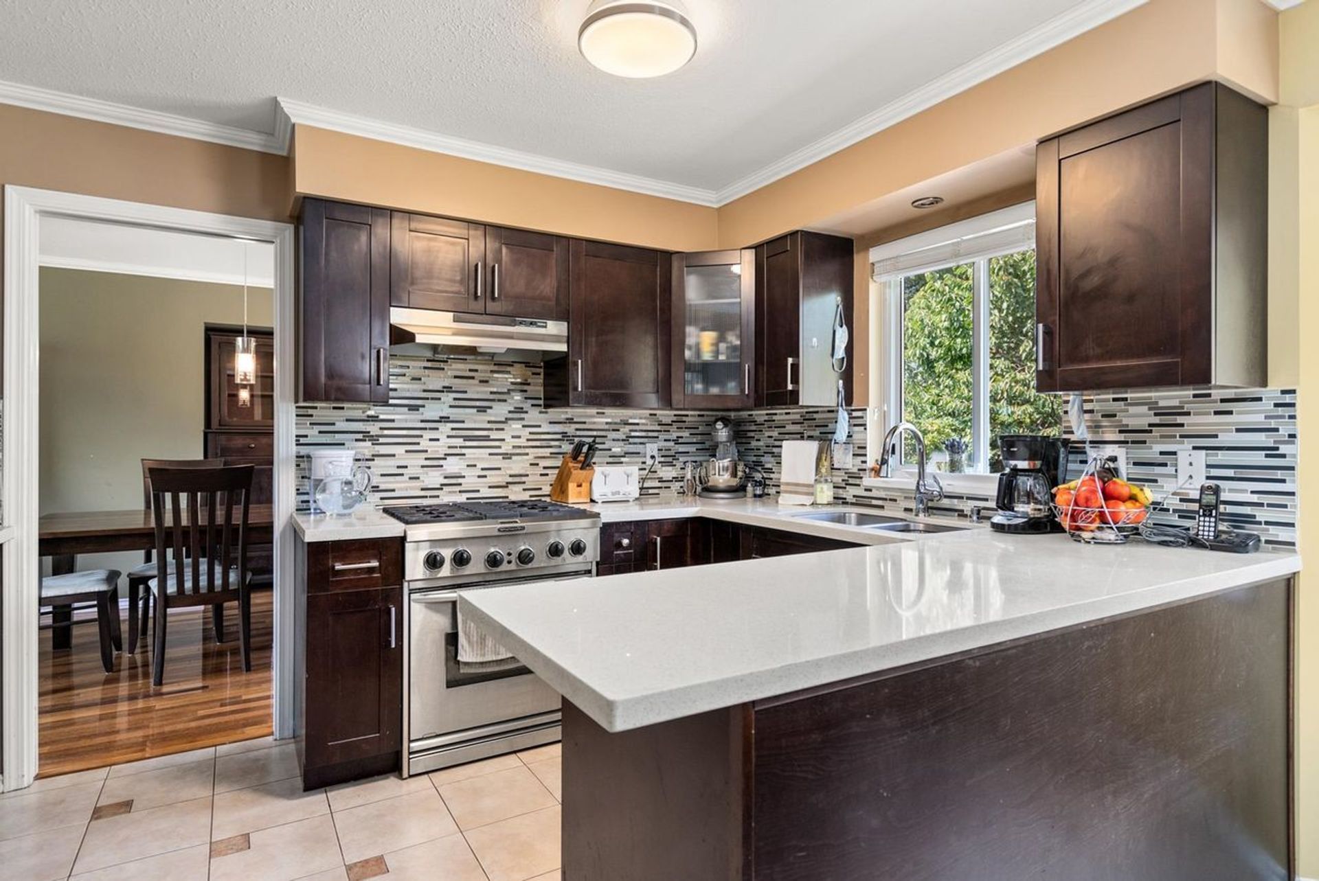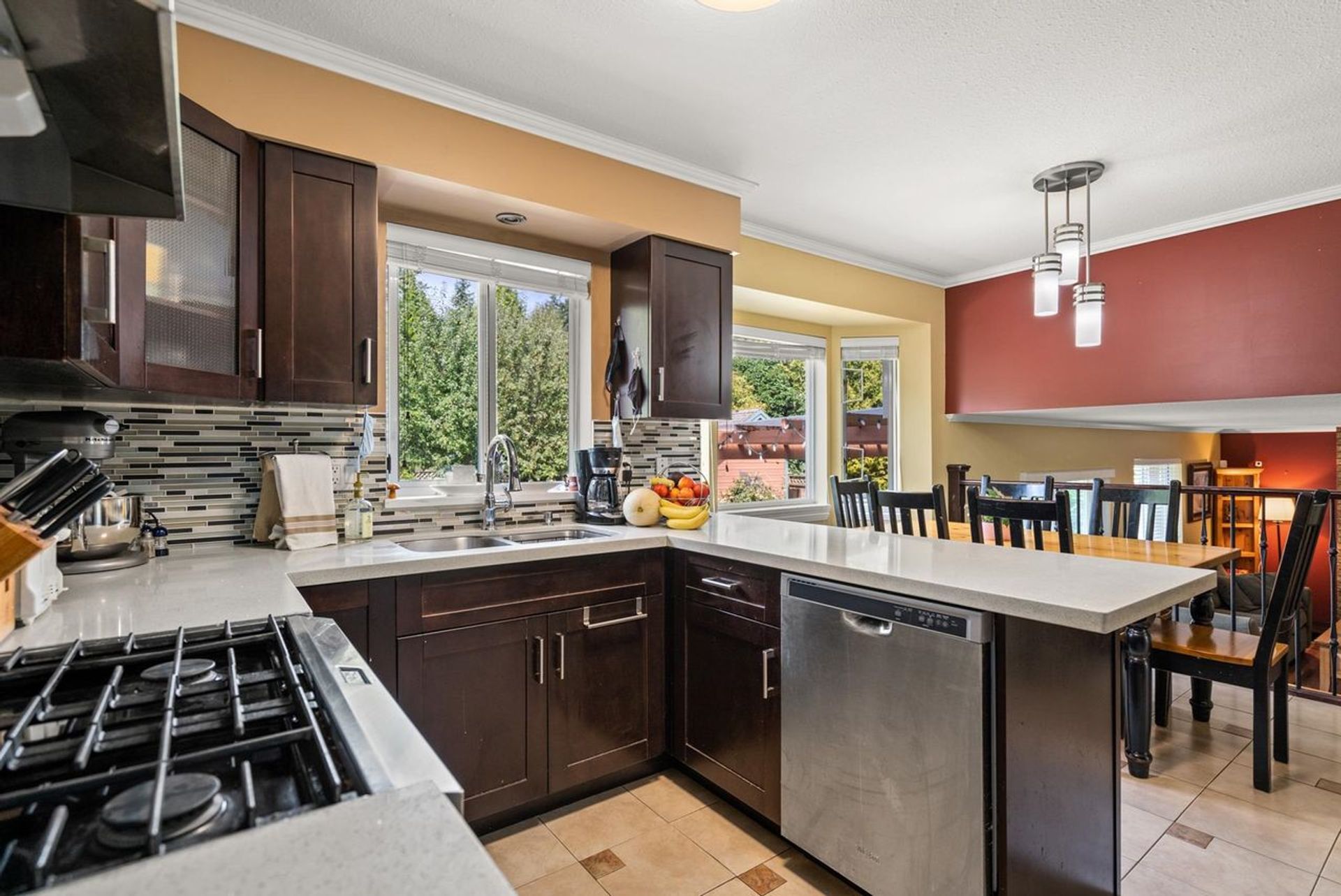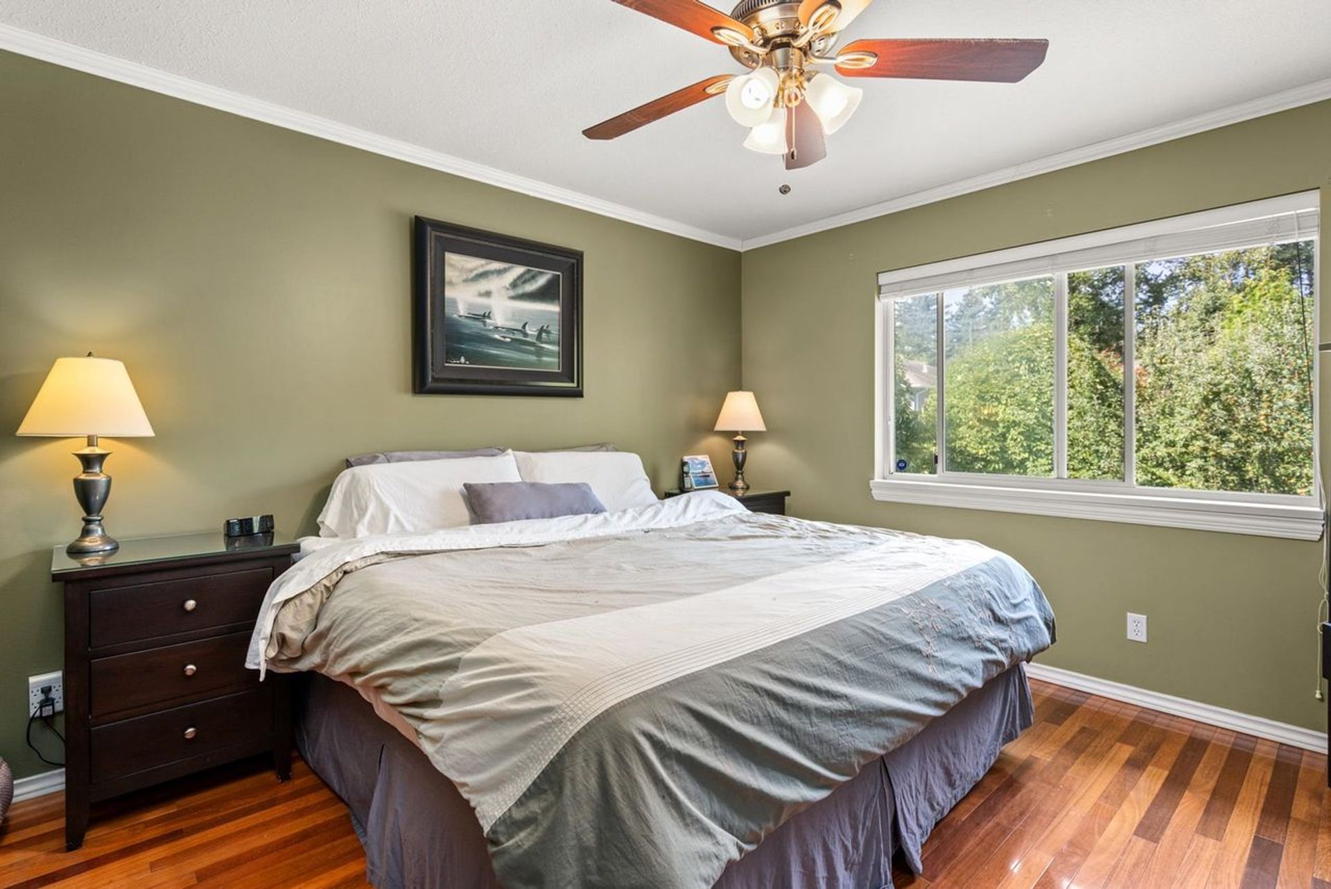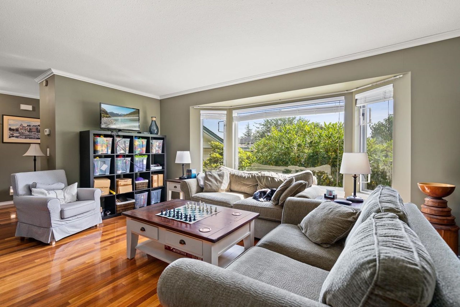 Well-maintained split-level 4 bed home on a great 8,184 sf lot in desirable Sunnyside/Elgin neighbourhood. Features skylights, hardwood throughout, updated kitchen and bathrooms, 2 fireplaces, beautifully landscaped backyard with fruit trees, patio, large sundeck and custom shed. Main floor living, dining, family room, eat-in kitchen, bed/home office and full bath, laundry. Three bedrooms upstairs with primary, ensuite and walk-in closet, one extra spacious bedroom and third bed/home office, full bath. Bonus rooms in the basement offer ample storage, possibilities for workshop/home gym. Nestled beside Sunnyside Acres parks and trails, walk to Rec Centre, Indoor Pool, Softball City, Bayridge Elementary, Semiahmoo Secondary (IB Program). You will love this location and lifestyle!