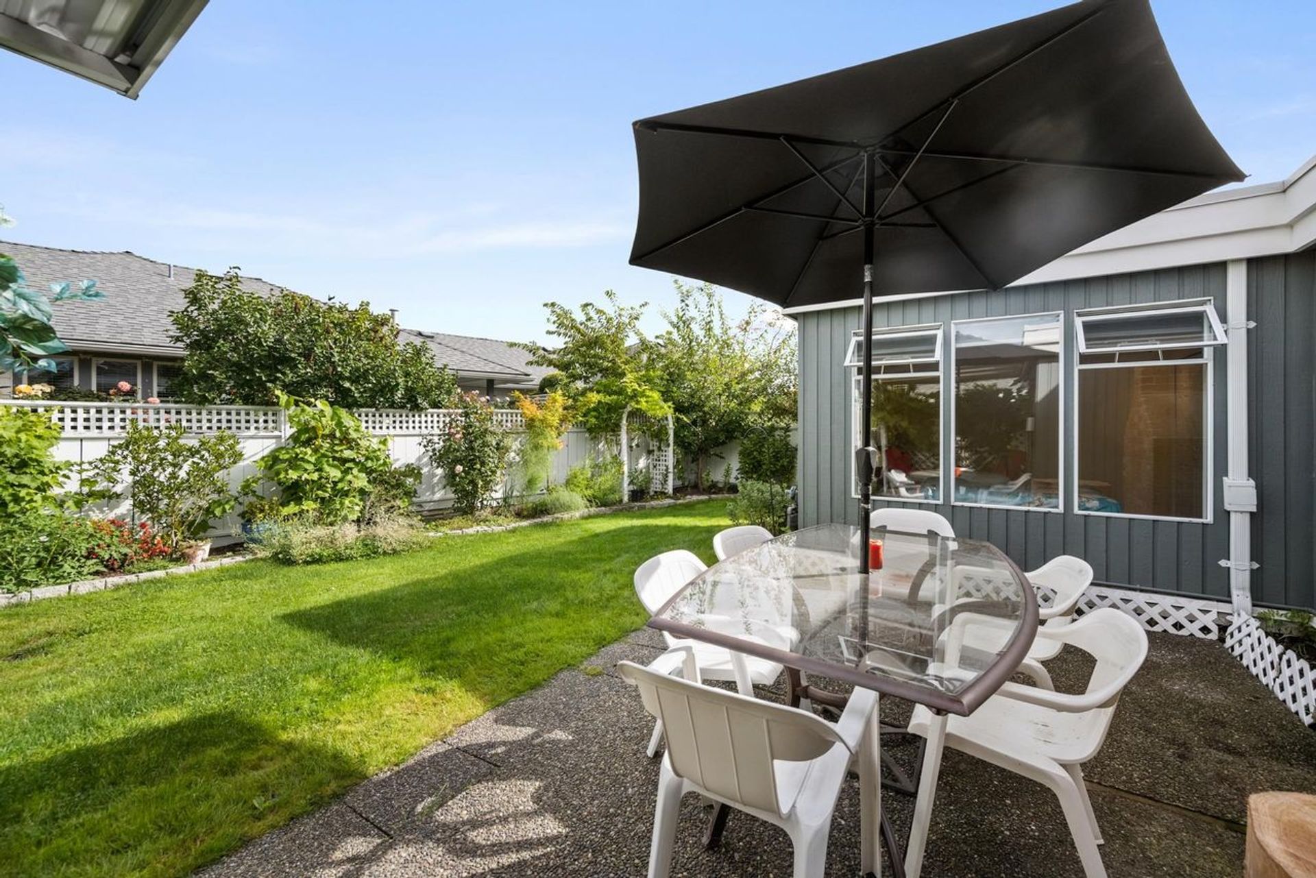 Beautifully maintained detached 2 bedroom & 2 bathroom RANCHER in the highly desirable and sought after OCEAN BLUFF COURT community. An excellent layout comprised of an inviting foyer leading to a tasteful Living Room with a focal fireplace and adjacent eat-in Kitchen. A formal Dining Room is perfect for gatherings and entertaining. The Principal Suite offers ample closet space and a spacious ensuite. The private backyard is an outdoor enthusiast's oasis! Large patio and plenty of backyard space and privacy from neighbours. Excellent location and steps to Bayridge Elementary & Bay Ridge Park, Semiahmoo Secondary School and the South Surrey Rec. Centre & Softball City. MOVE-IN Ready and ideal for a small family, someone downsizing and is pet-friendly.