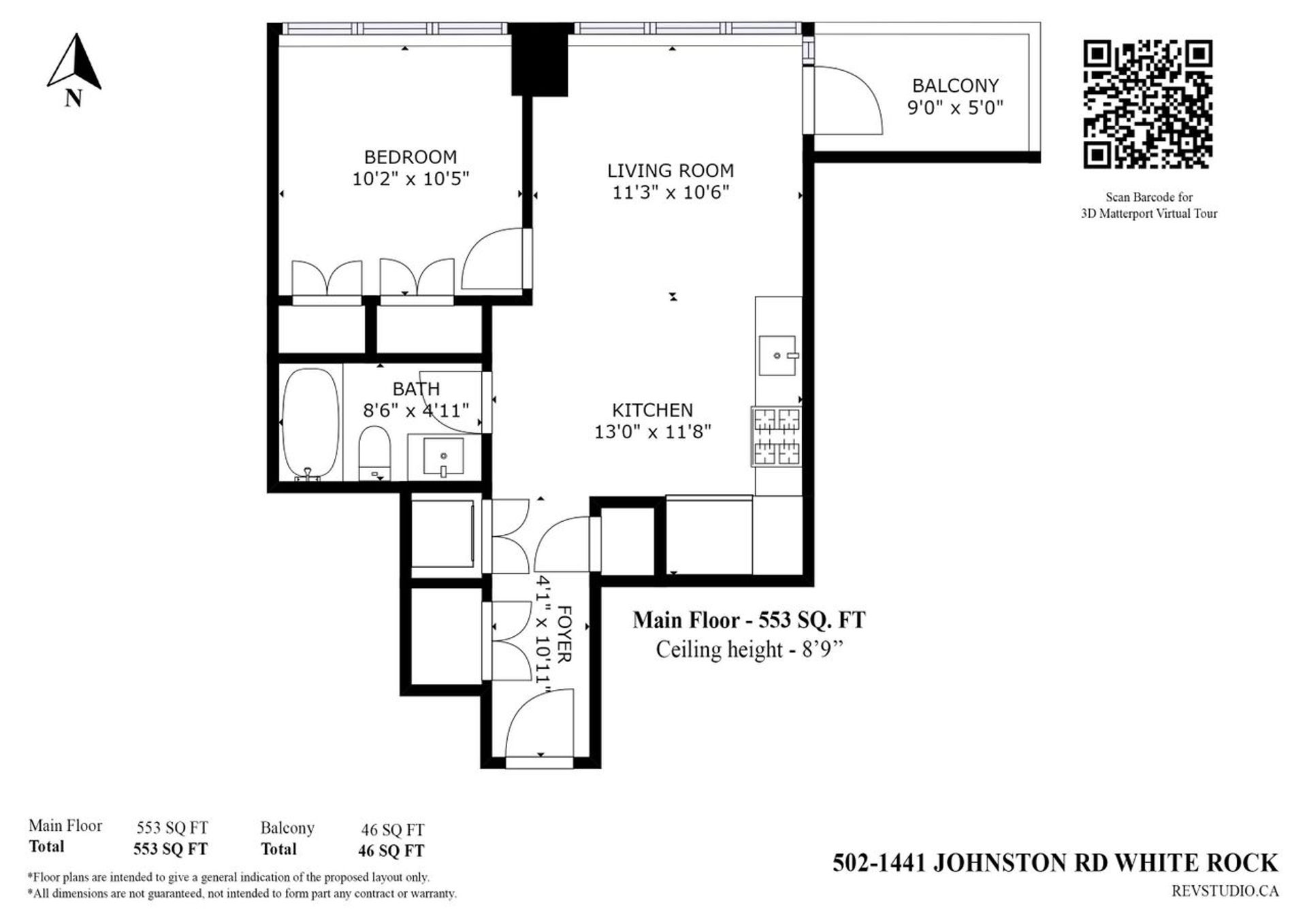 Living Area: 553 sqft