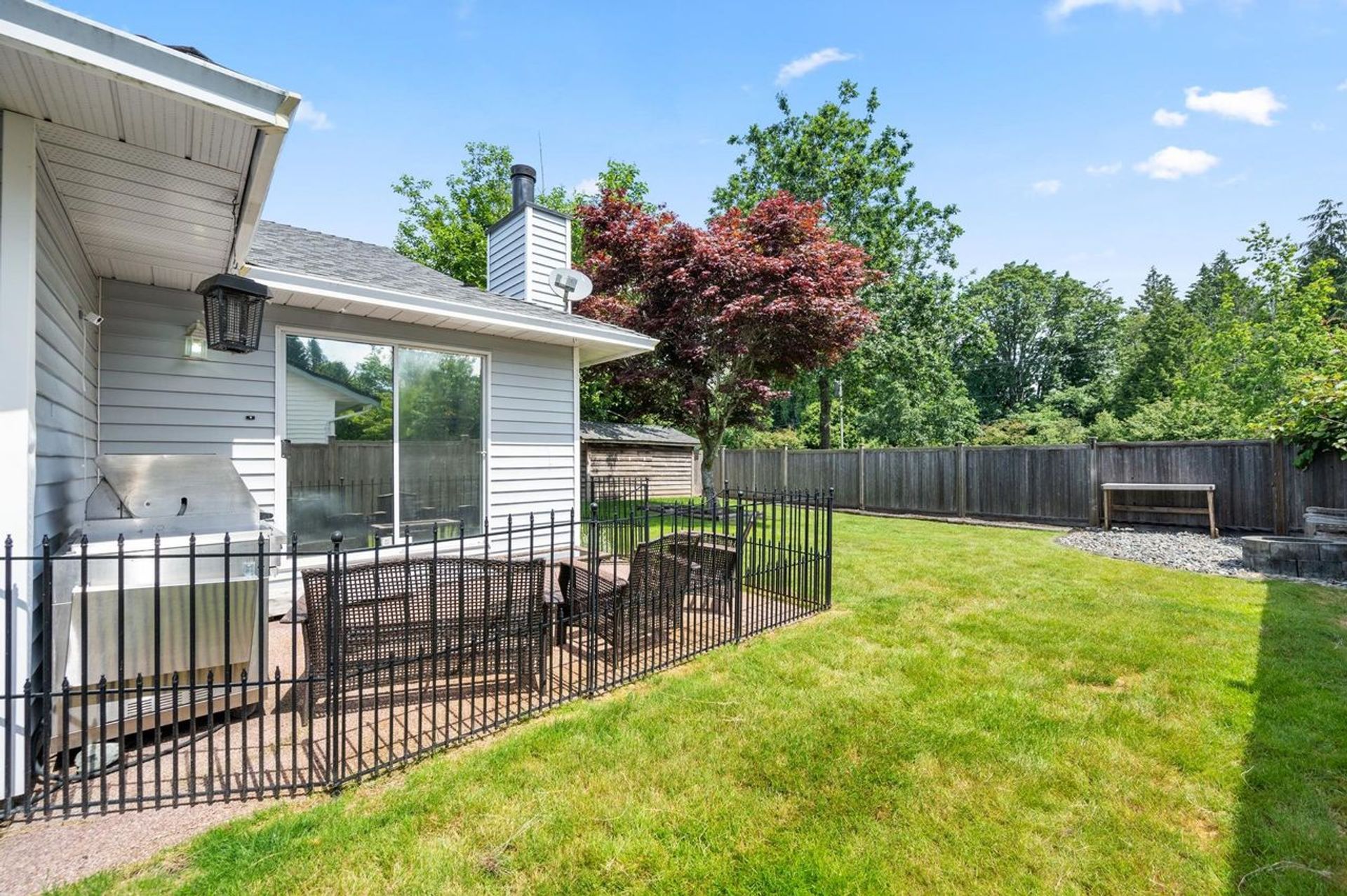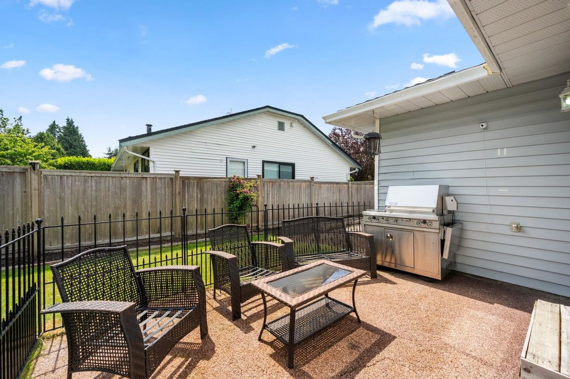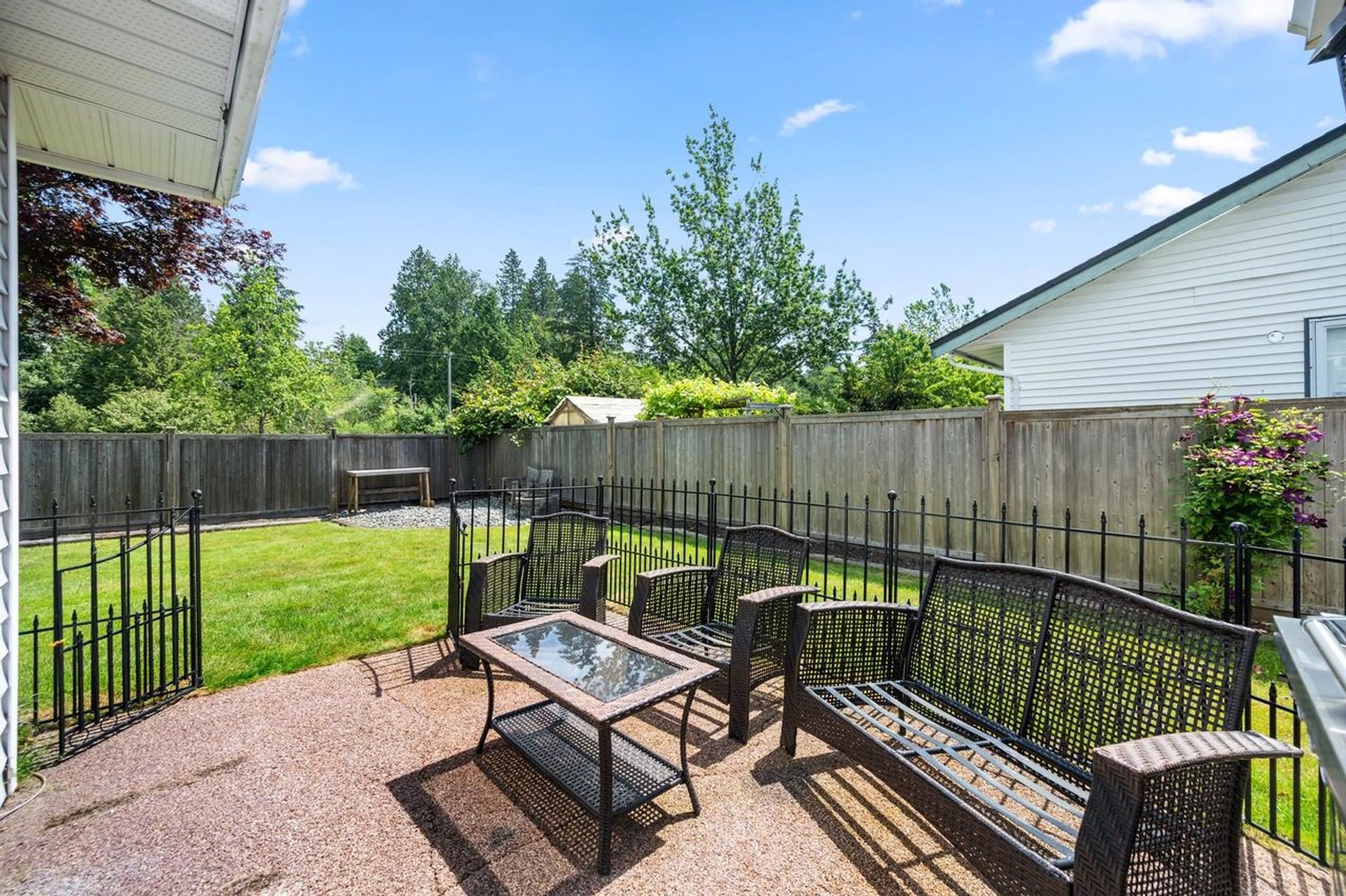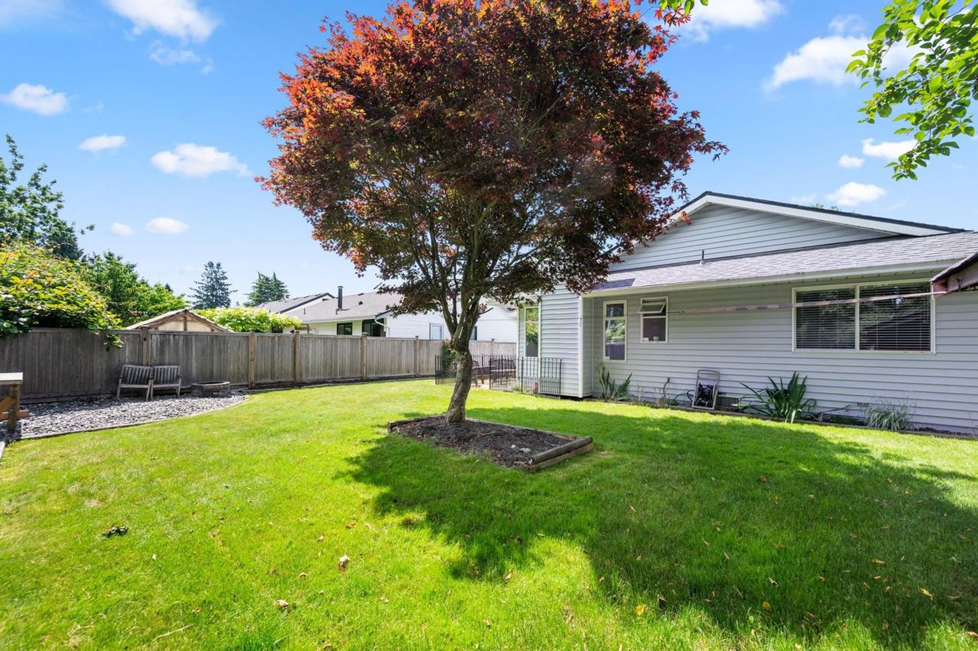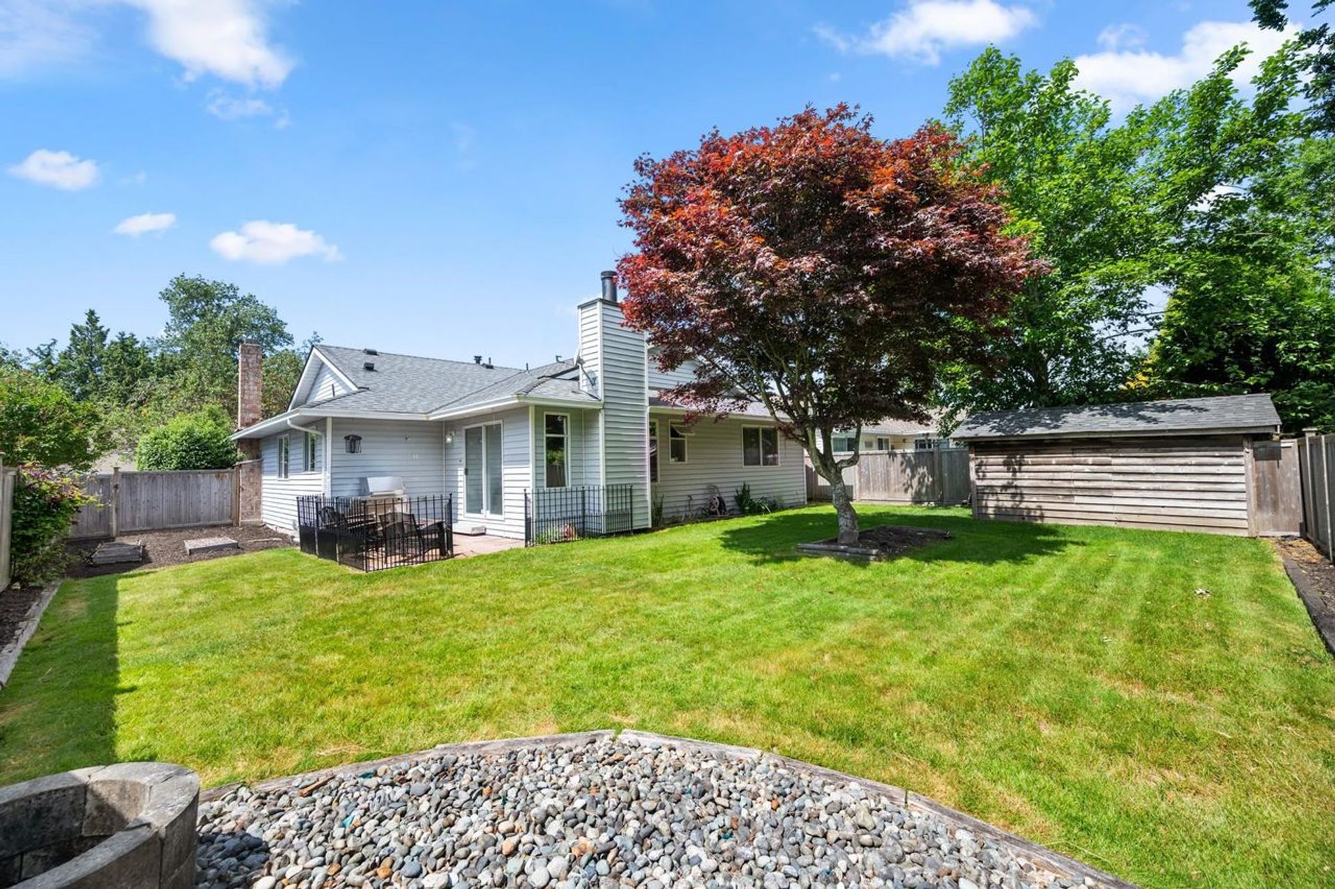 Charming Rancher situated on a beautiful tree-lined street. Well-maintained and updated throughout the years, this 1,573sqft home boasts 3 spacious bedrooms and 2 bathrooms. Excellent layout with a formal Living and Dining Room off of the foyer. Kitchen and Family Room at the back of the home complete with sliding doors leading the to the private and sun-filled backyard. The Principal Suite offers a walk-in closet and full ensuite. Located at the quiet end of King George, this 7,112sqft property offers easy access to local transit, Morgan Crossing, local golf courses, White Rock Beach and so much more. Steps away from South Meridian Elementary School and Earl Marriott Secondary School.