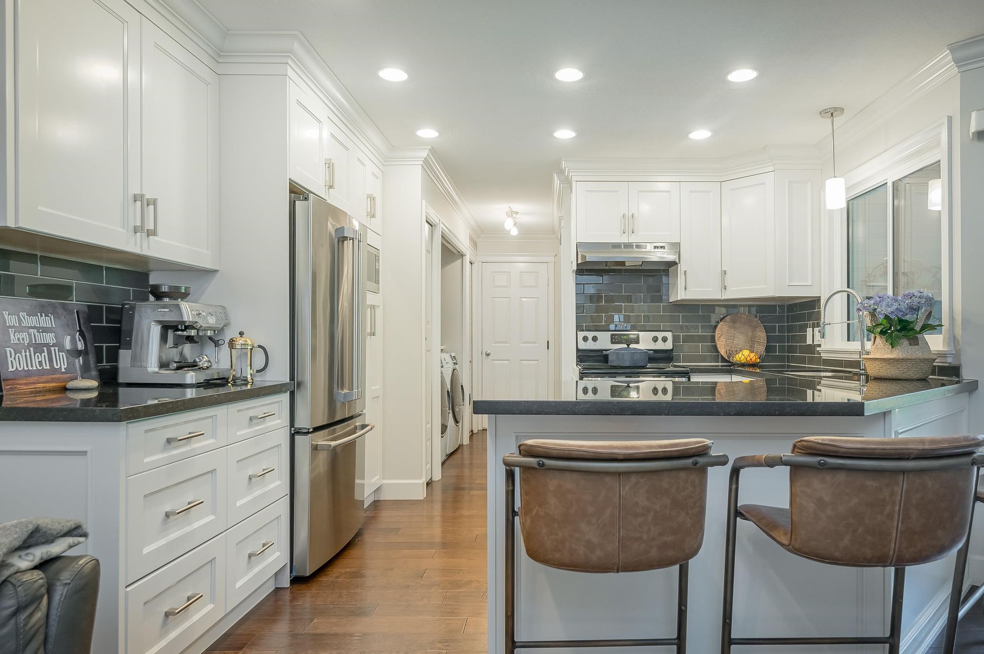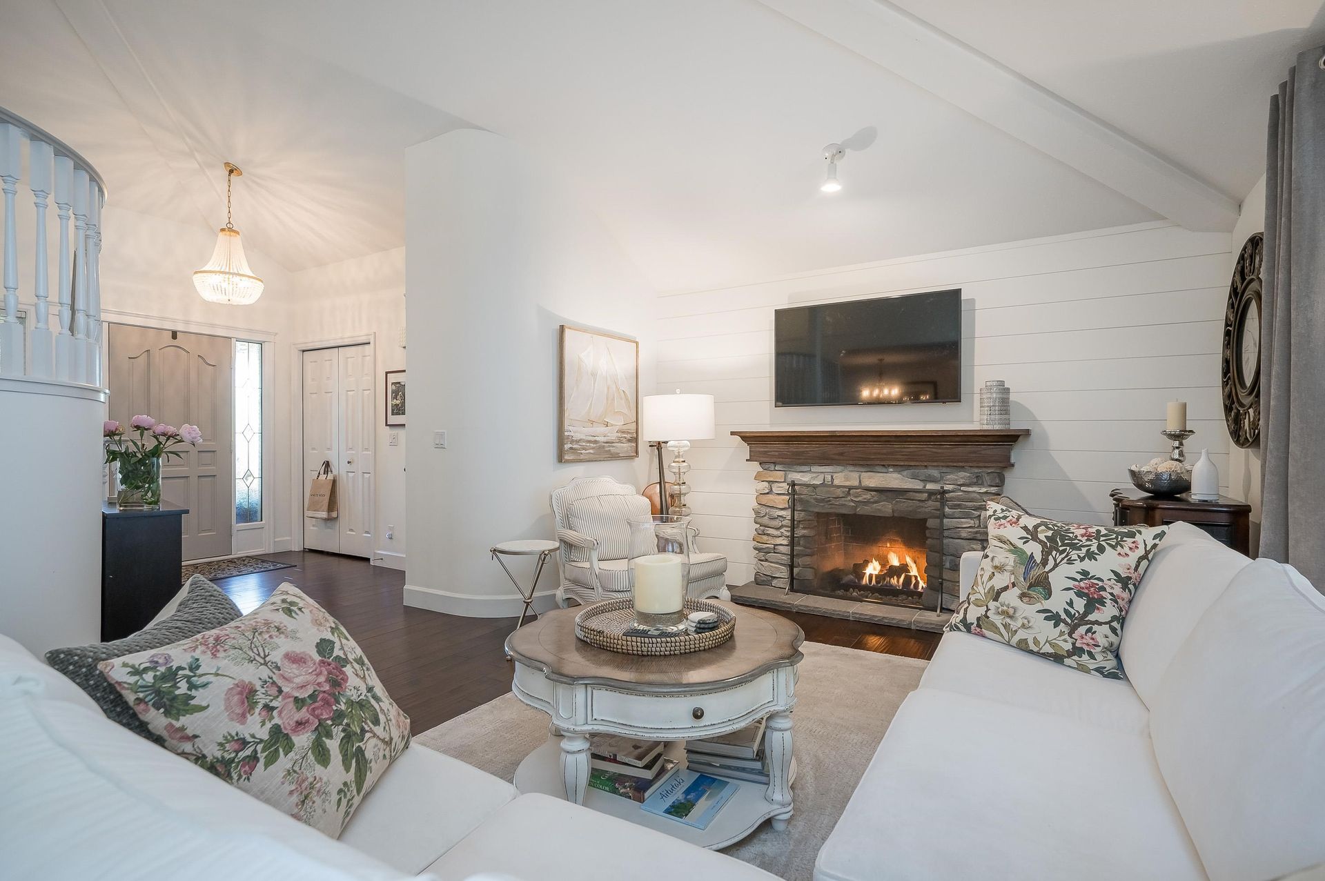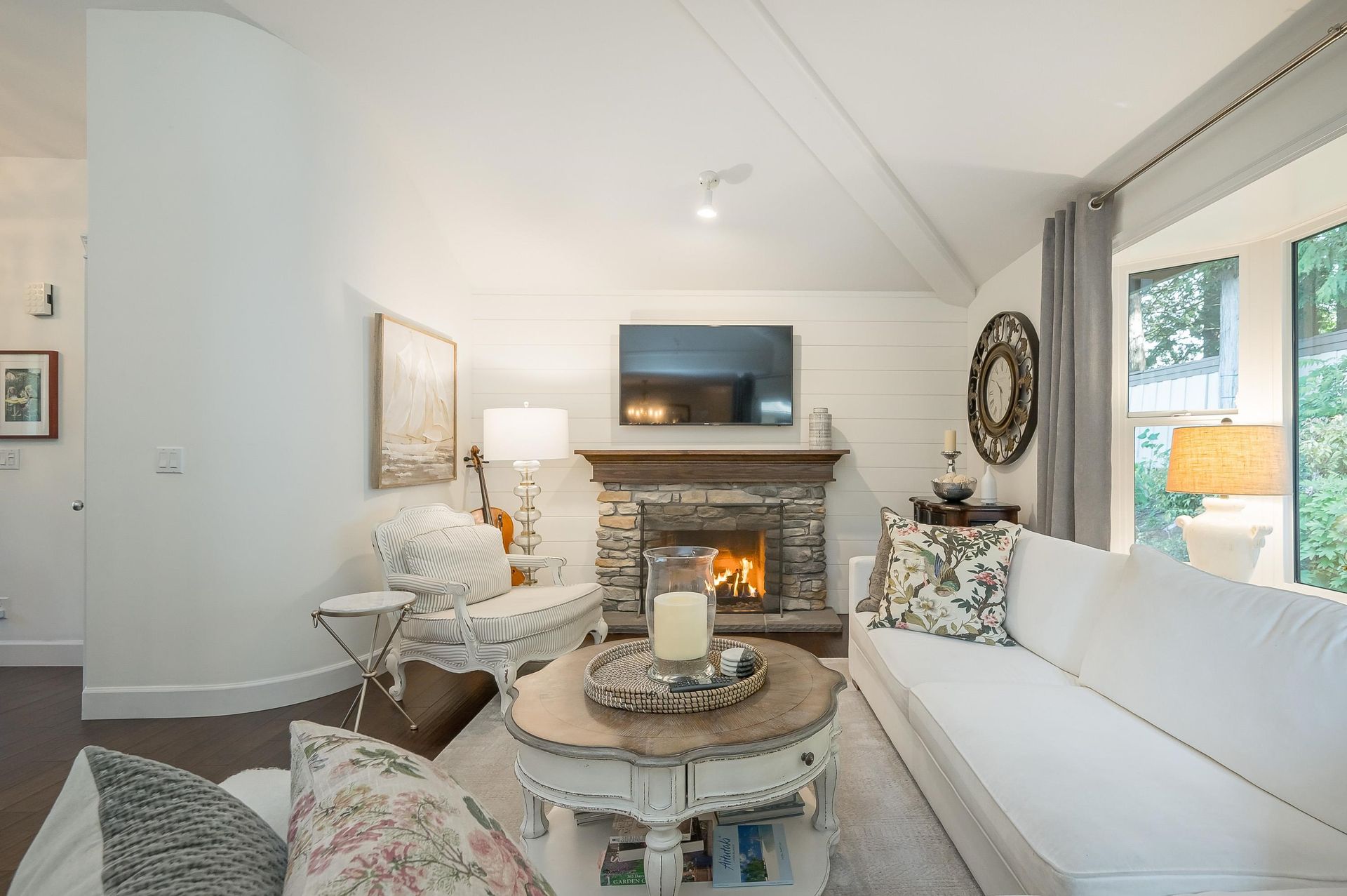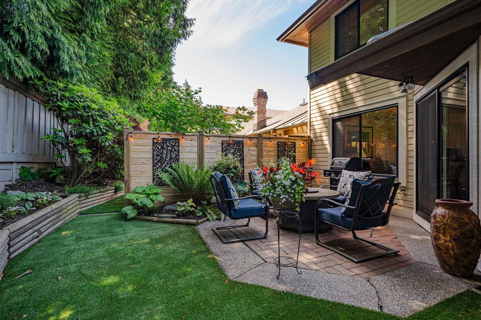 Beautifully renovated 2-Bed + Den, Duplex Style Townhome in South Pointe On The Park! This 1,736 SF home offers the perfect blend of elegance and comfort. Enjoy vaulted ceilings, a stone gas fireplace and luxurious finishings throughout. The main floor living includes the den and laundry. Dining room and kitchen overlook an expansive, private garden with front and back patios that create seamless indoor-outdoor living. The upper level features a stunning primary bedroom with ensuite and walk-in closet, plus a spacious second bedroom and bath. Proactive, well-run strata with recent updates including a newer roof and windows. Backing onto Southmere Park, you will love the walking trails and convenience of strolling to nearby shops, restaurants, the beach and all local amenities.