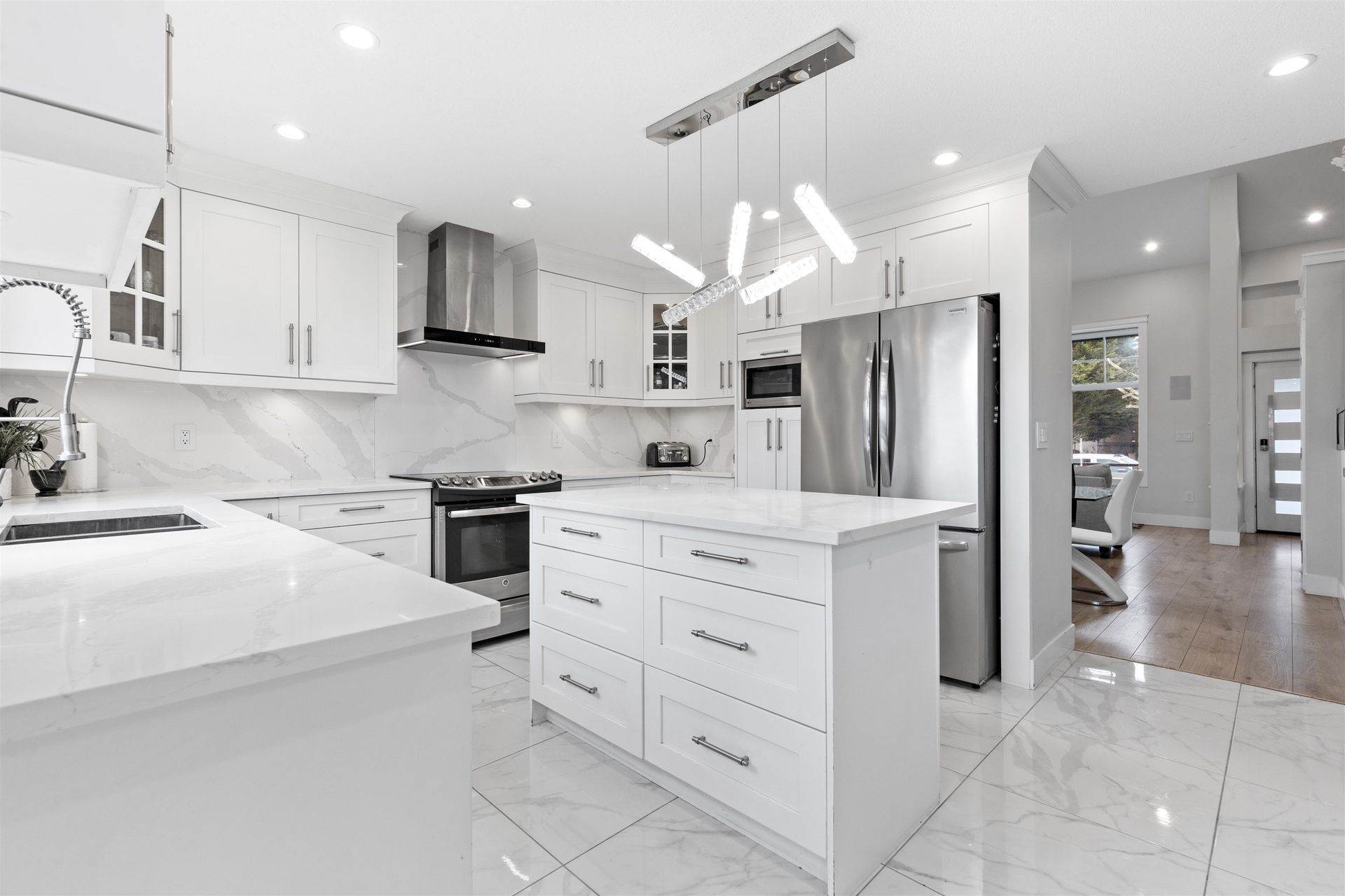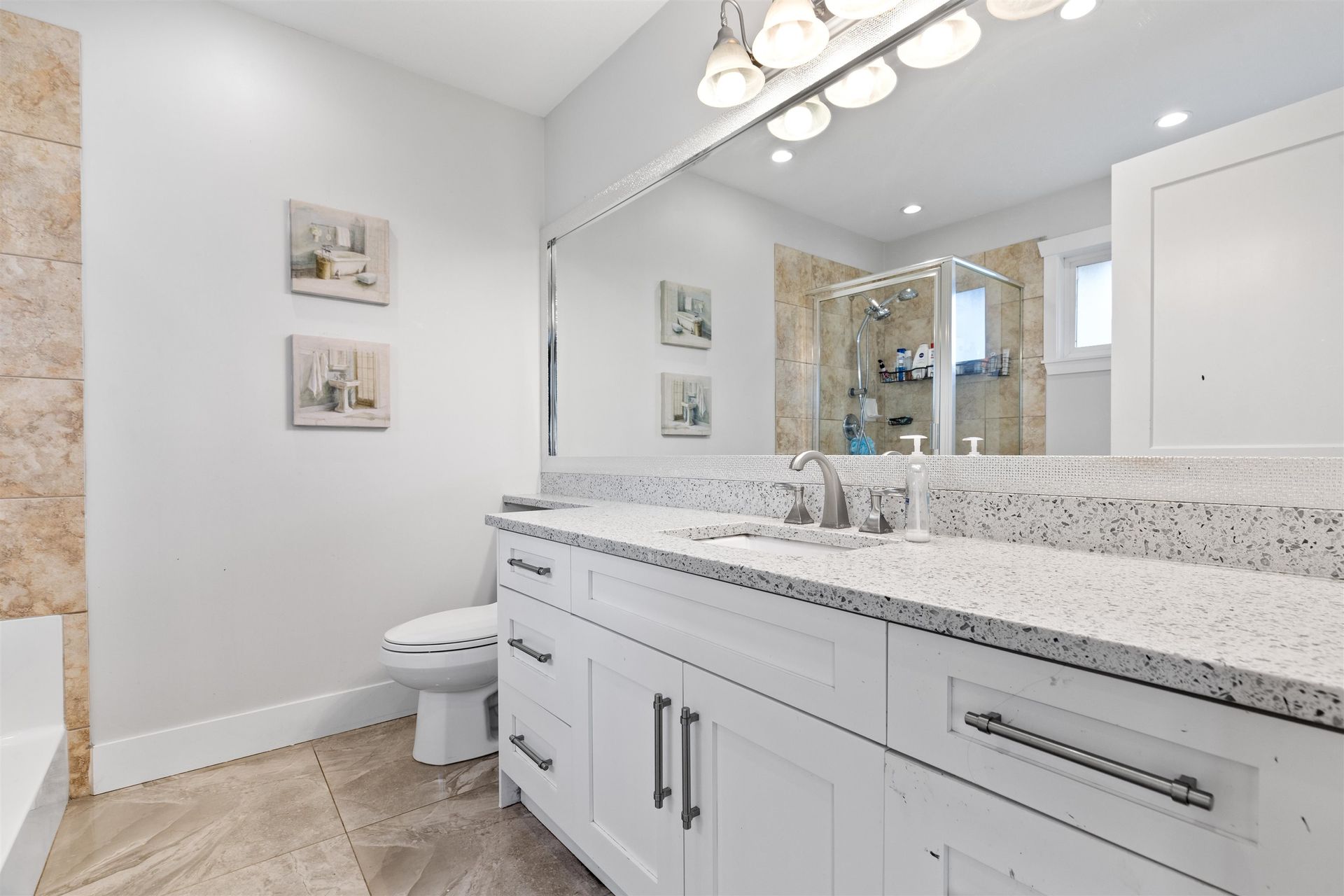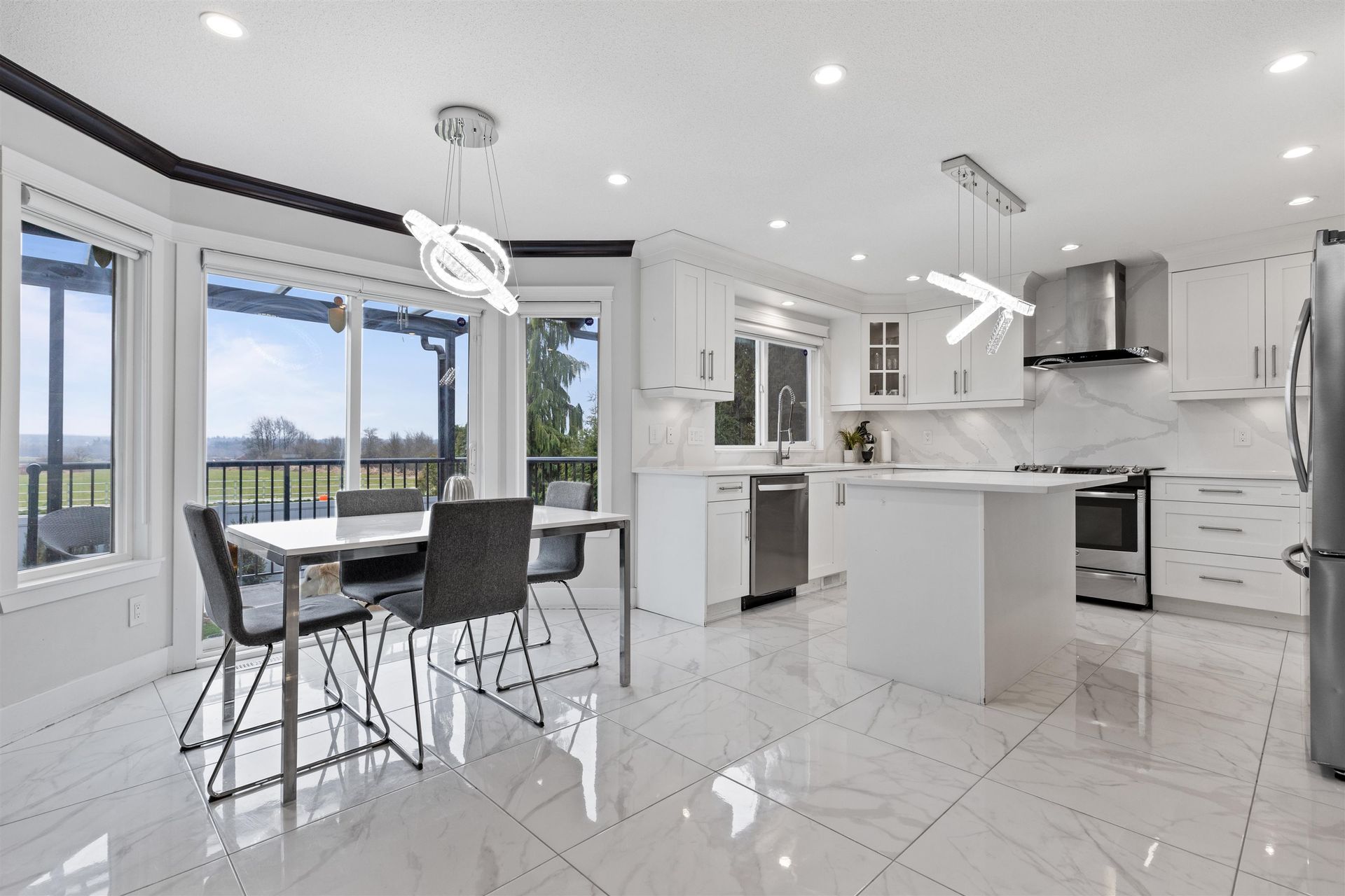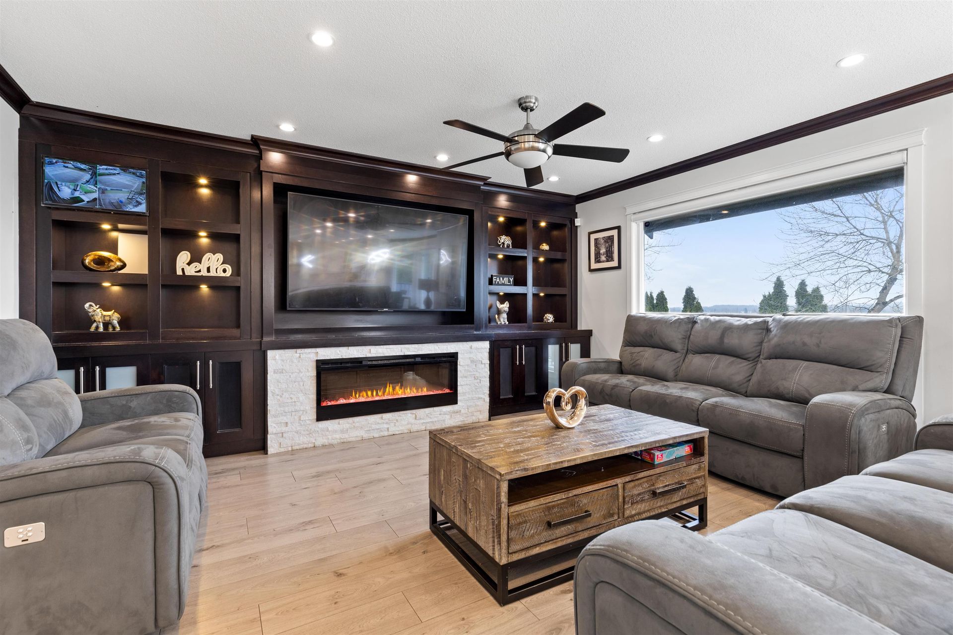 Come see this updated 4 bed/4 bath home in beautiful Berkshire, located on a quiet cul-de-sac with a fenced backyard—close to all amenities! Updates include a new roof, renovations throughout inc. kitchen and bathrooms, air conditioning, and new stone exterior, landscaping & lighting. The main floor features vaulted ceilings, big windows for natural light, a gourmet kitchen with an island/pantry, and a spacious family room with sliders to a large deck w/awning. Upstairs offers 3 bedrooms + loft/office, including a primary suite with a walk-in closet and ensuite w/ shower & tub. The fully finished basement includes a 4th bedroom, bath, new theatre room & separate entrance—perfect for extended family or rental. Enjoy views of Mt. Baker and farmland from your back deck and bedrooms!