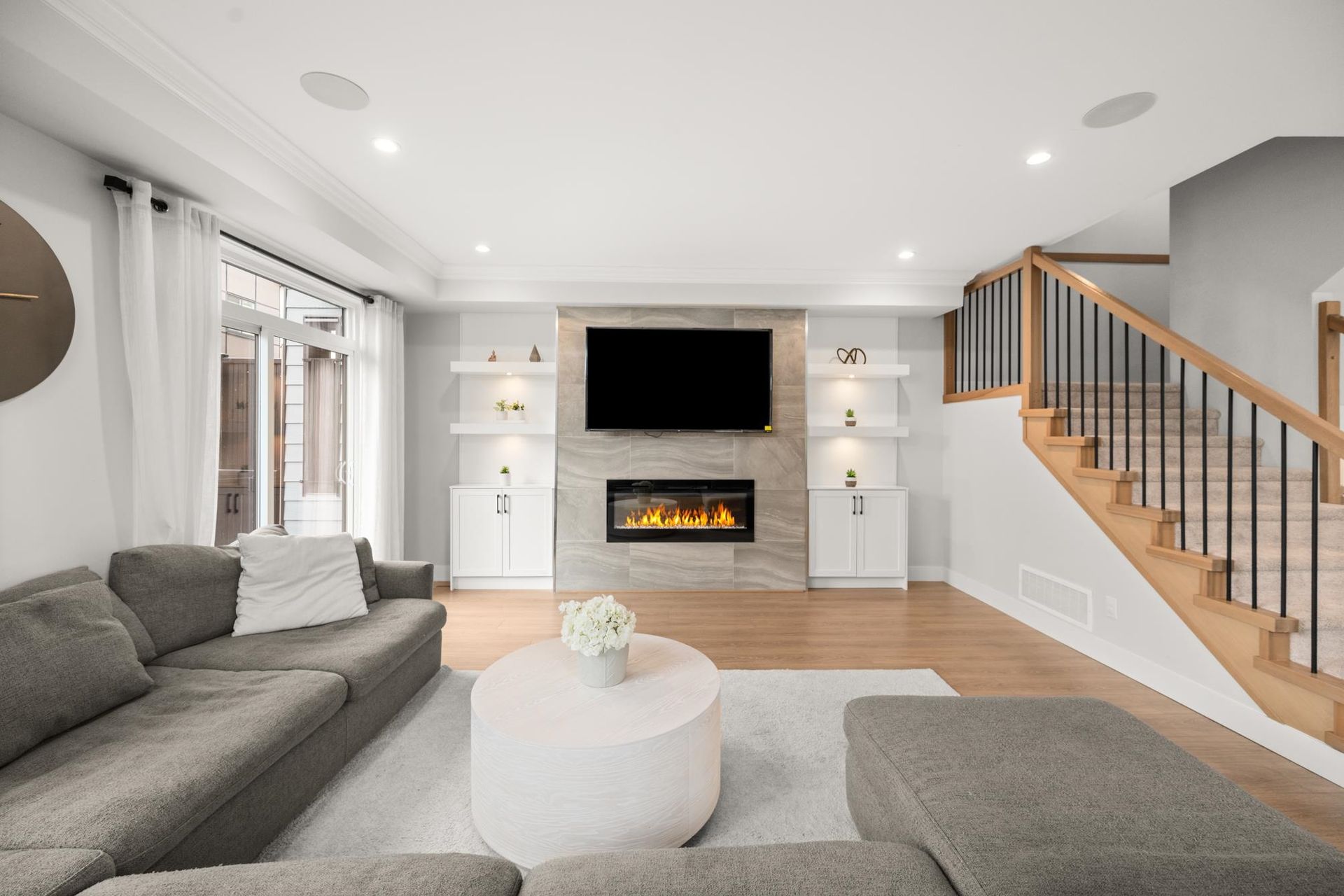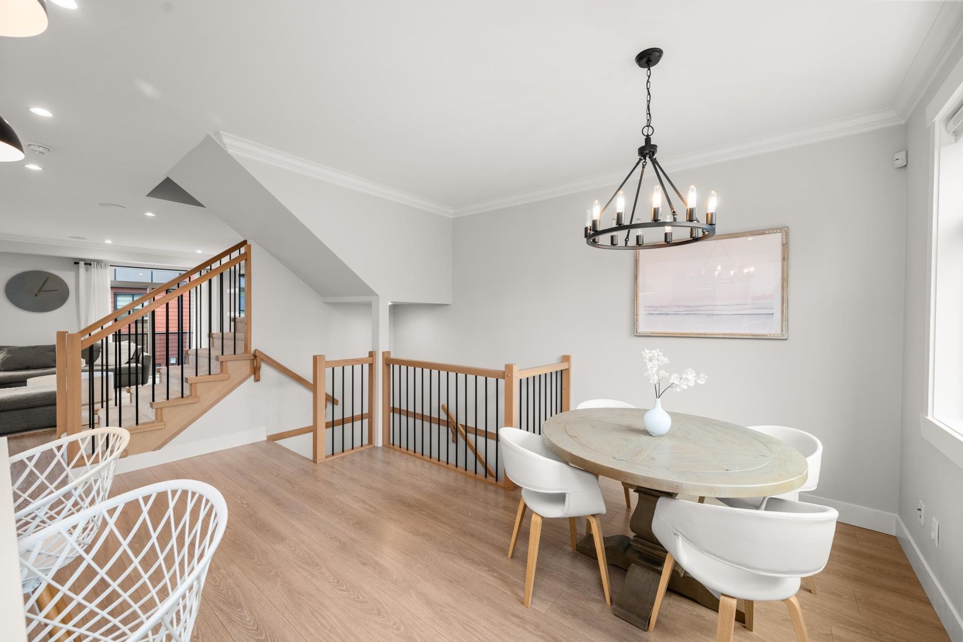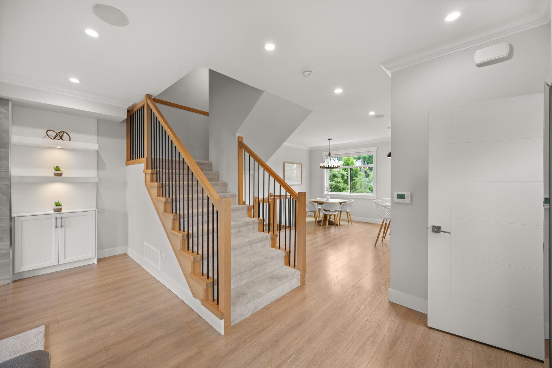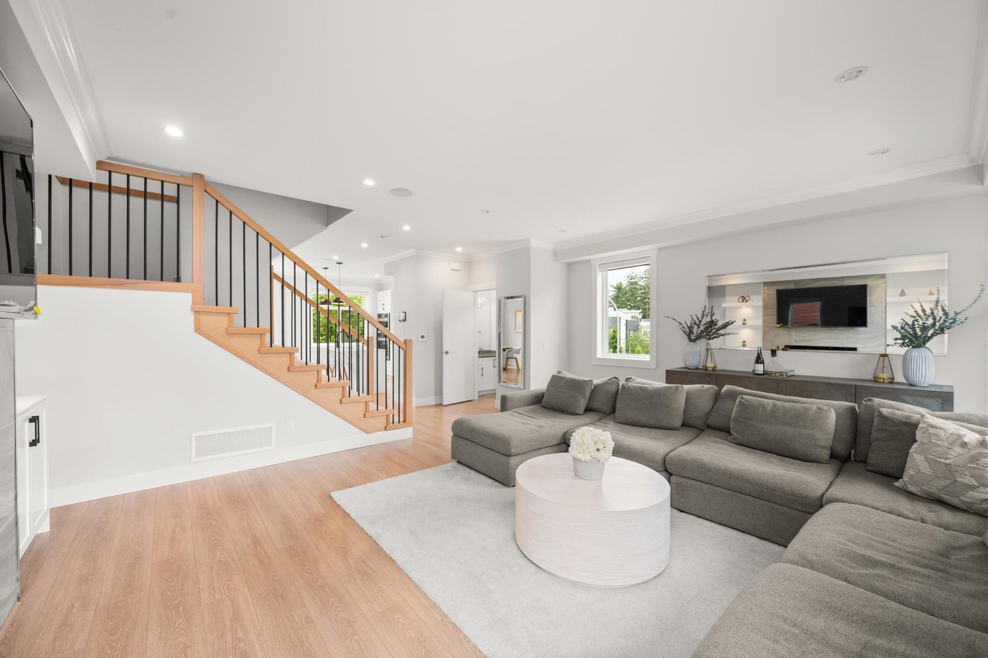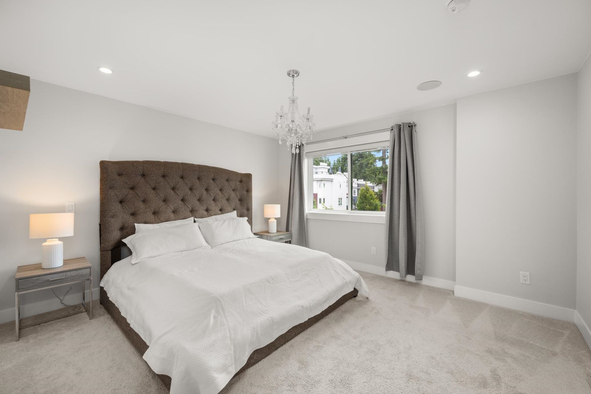 Stunning executive CORNER townhouse in the highly desirable Quinn development features quality finishes throughout with upgraded Control 4 Automation and Air Conditioning. Complete with 4 bedrooms and 3.5 bathrooms, the open concept layout is ideal for family living. Walking into the foyer, there is a full bedroom and bathroom, and a double side-by-side garage. The living floor features an eat-in Kitchen with quality appliances, a separate Dining area, and a spacious Living Room with a sundeck. 3 spacious bedrooms above including the grand primary suite and a separate laundry room. The rooftop level features almost 700sqft of patio space with a gas hook-up, hot tub, water taps, and airy views of the Northshore Mountains and peak-a-boo ocean views. Excellent location.